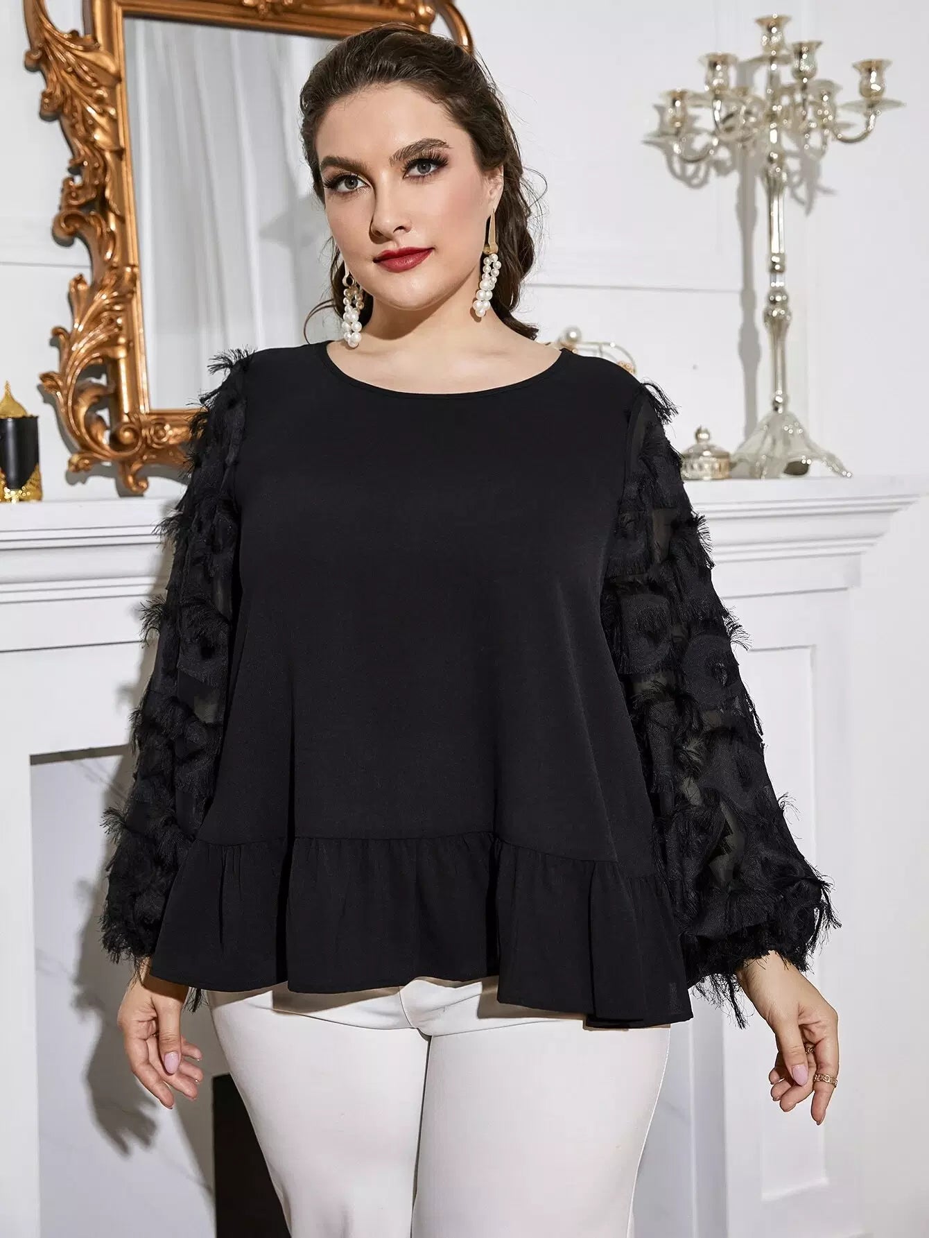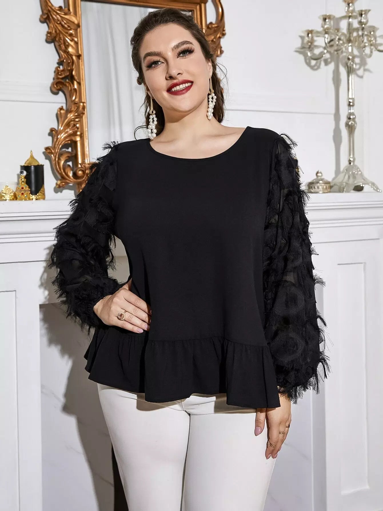 بلوزة بأكمام كشكش مكشكشة بأكمام زائد