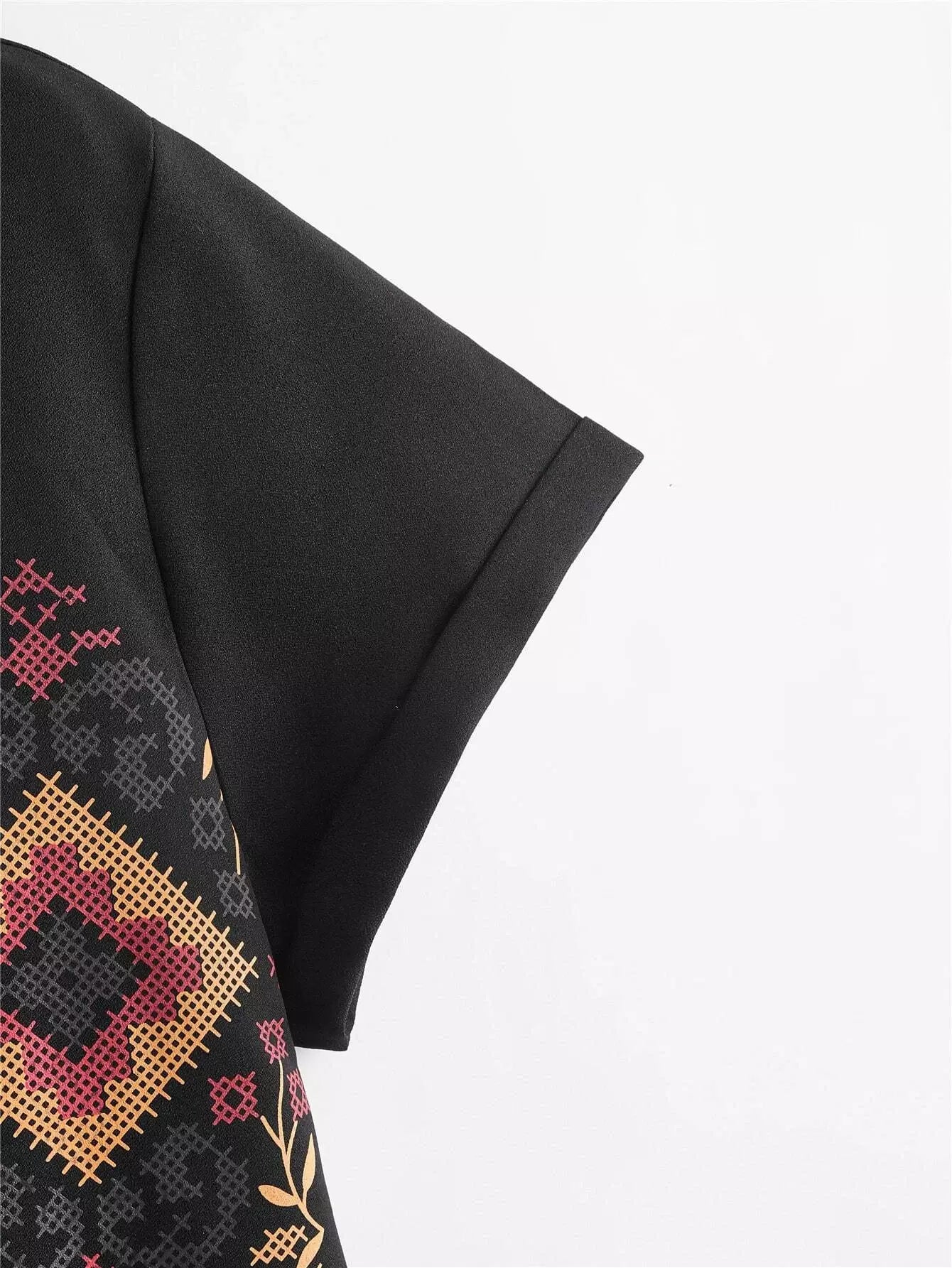 بلوزة بطبعة جيو مطبوعة على شكل شرابة وربطة عنق زائد