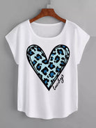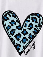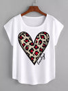 تي شيرت برقبة دائرية مطبوع عليها قلب وحرف زائد