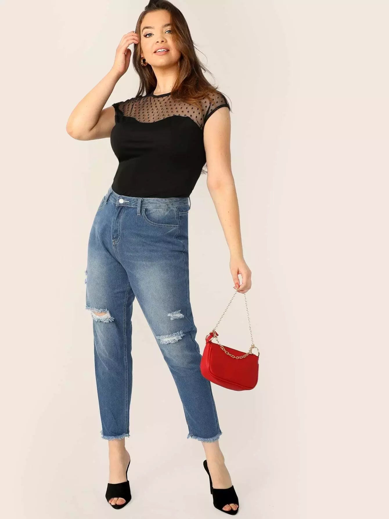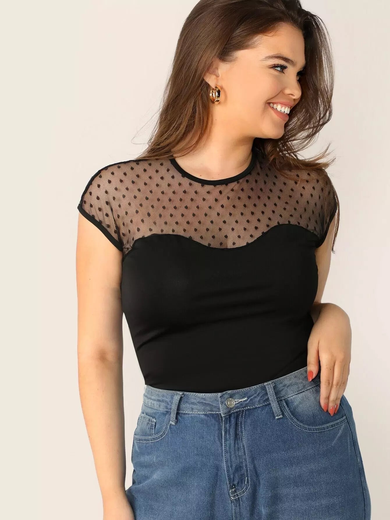 بلوزة بفتحة ظهر دوبي شبكية بفتحة ظهر زائد