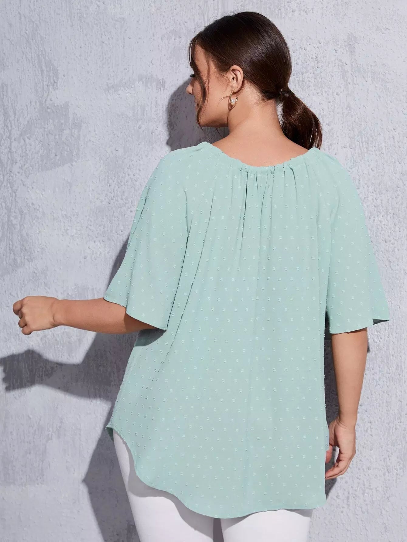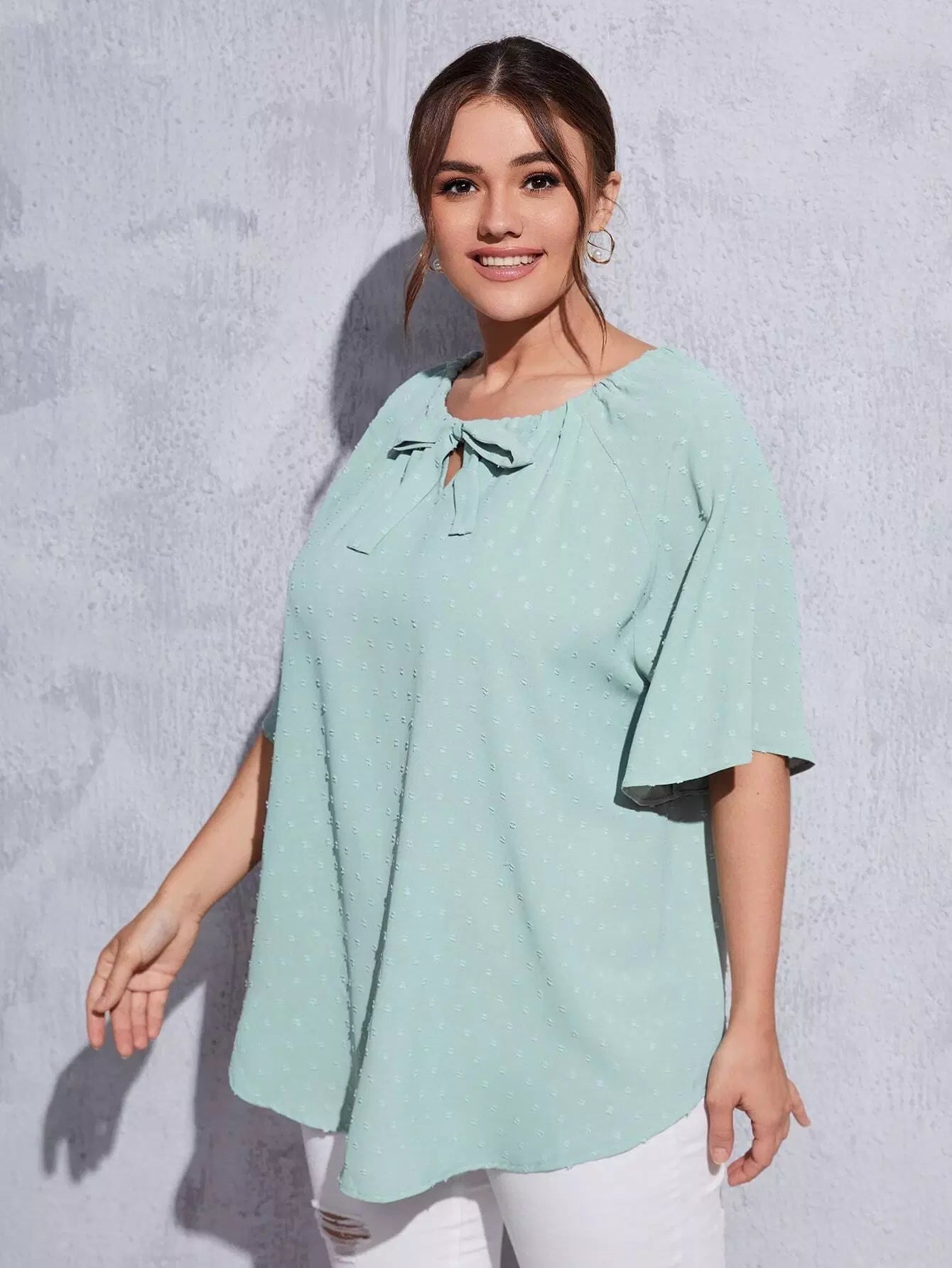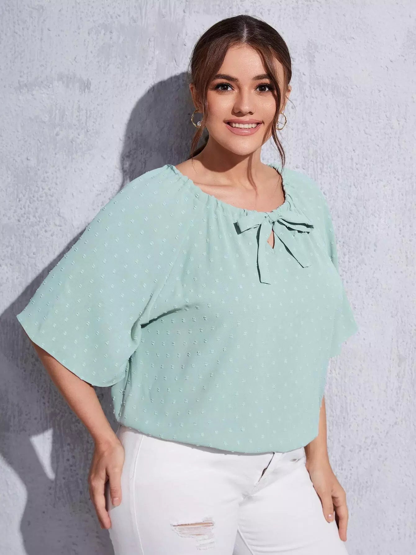 بلوزة برقبة دائرية برقبة دائرية بفتحة أمامية مع عقدة أمامية زائد