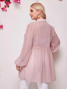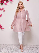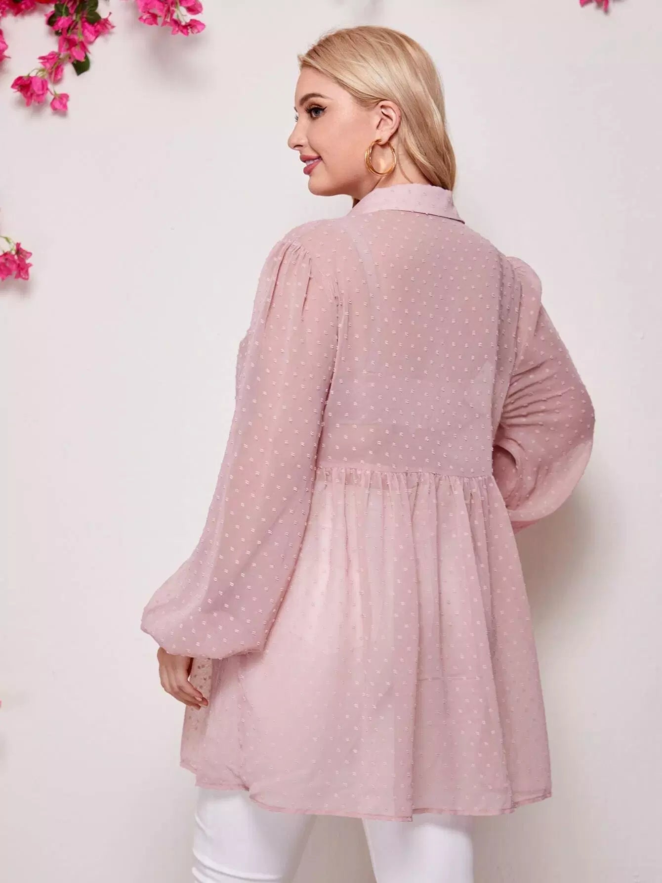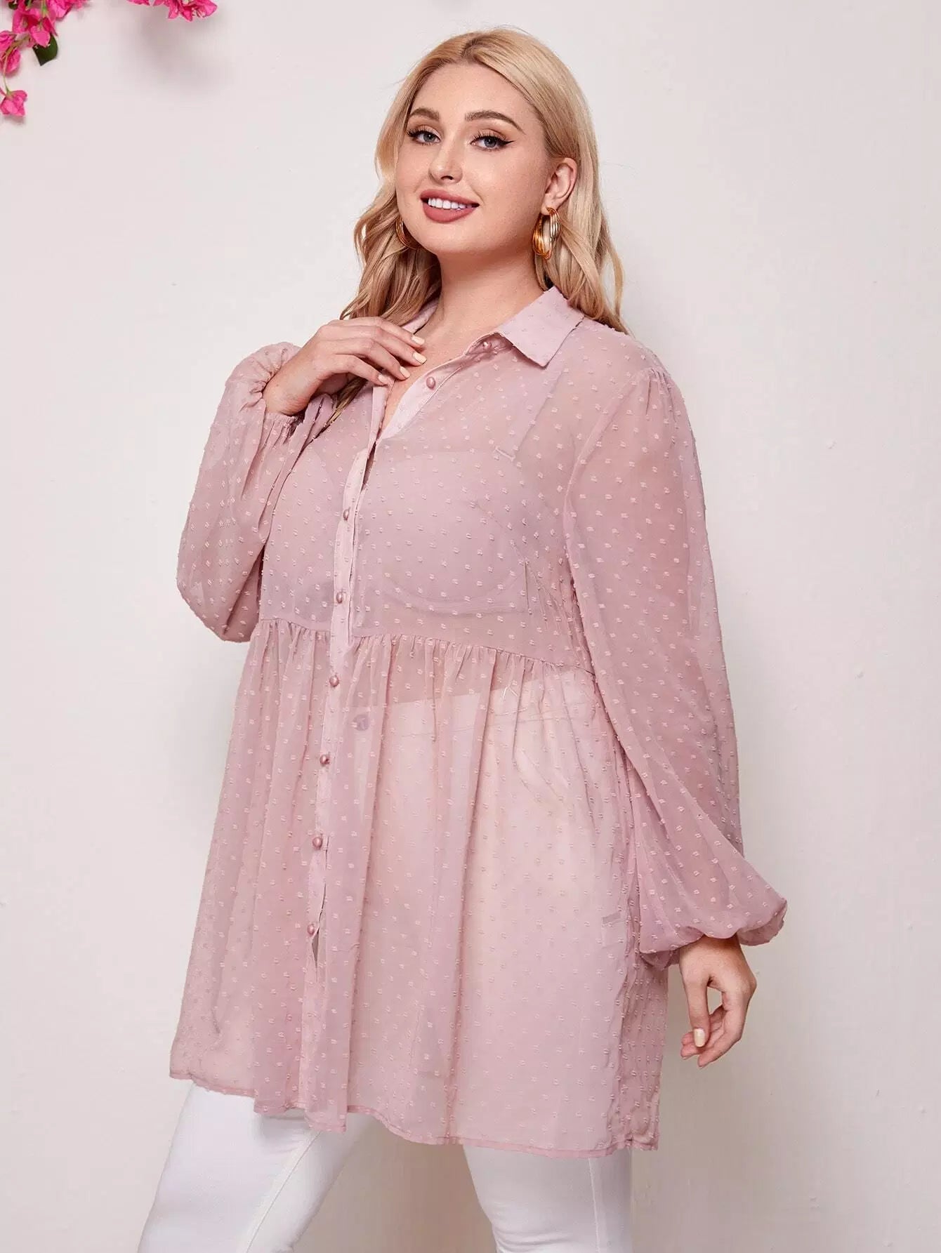 بلوزة شفافة بأزرار شفافة بأكمام فانوس بأزرار زائد