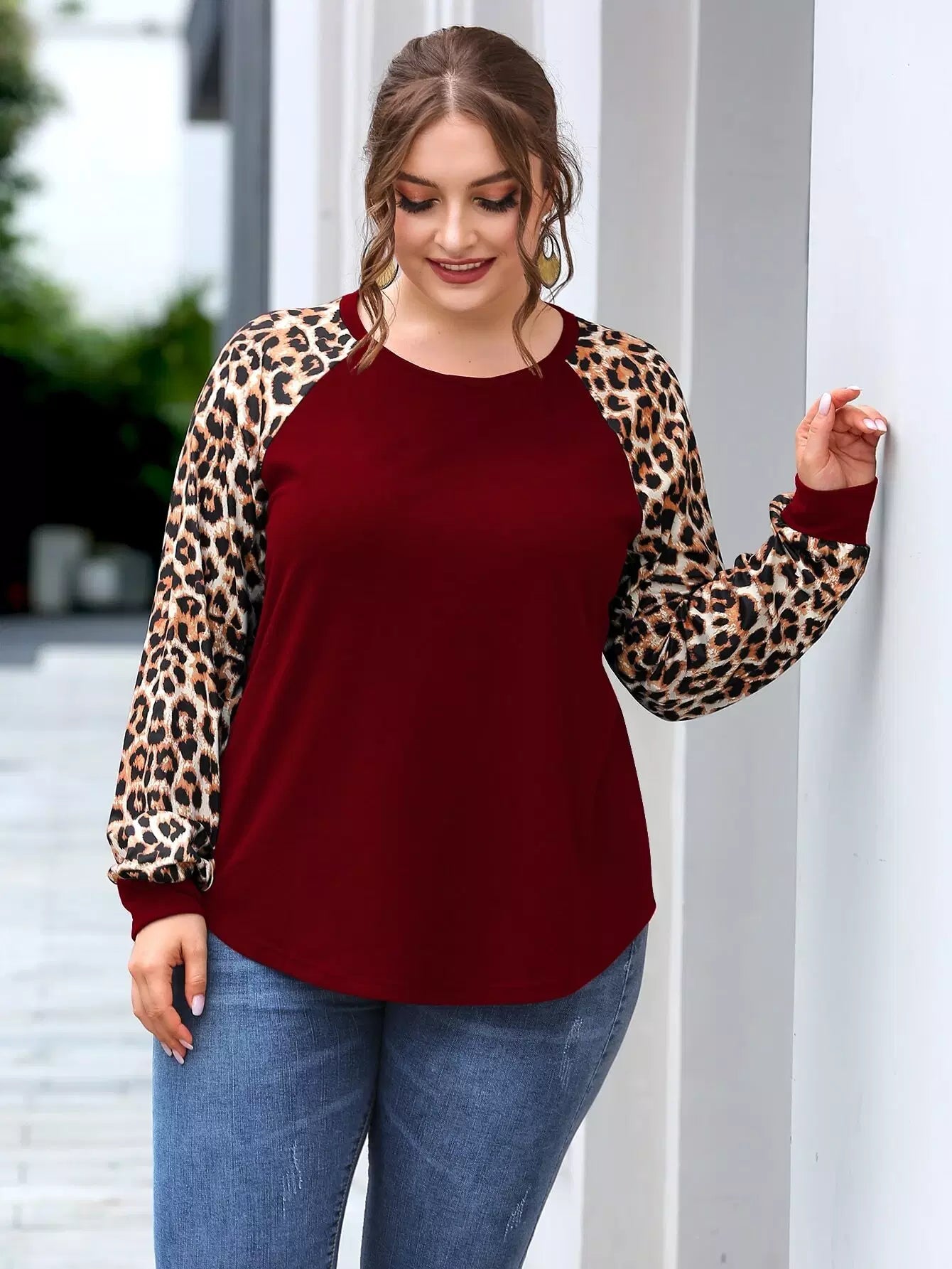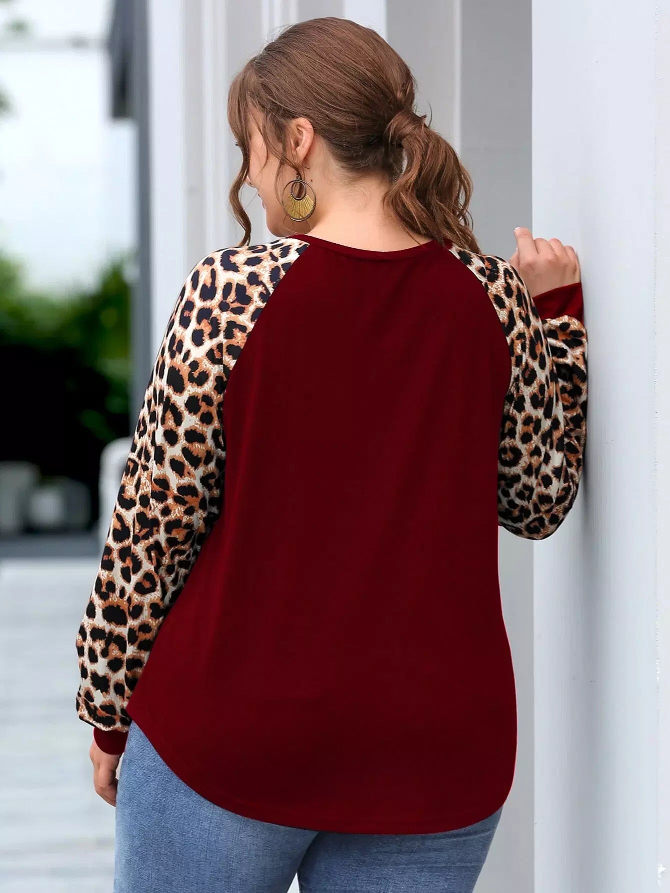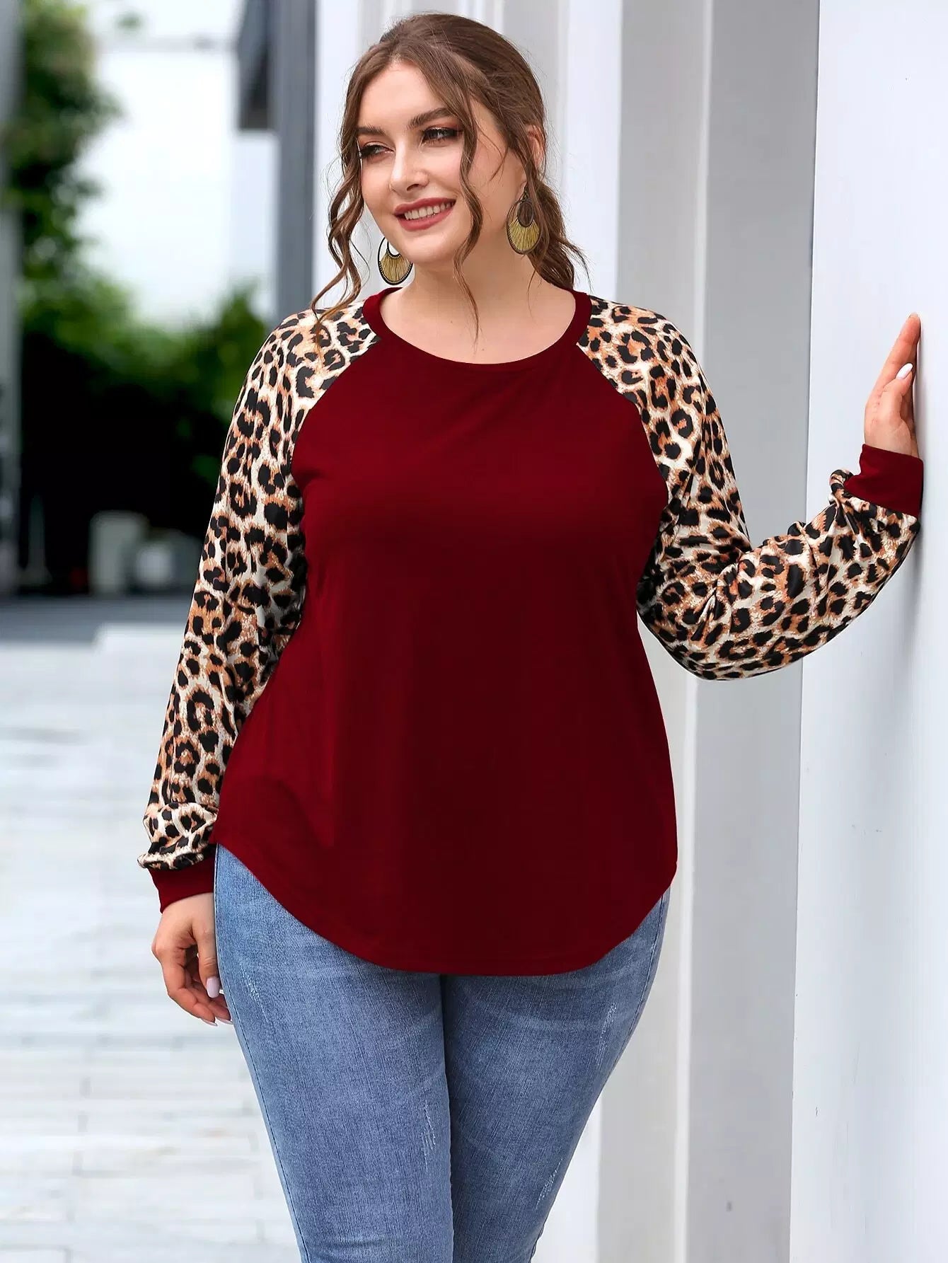 تي شيرت بأكمام راجلان بأطراف منحنية بنقشة جلد الفهد