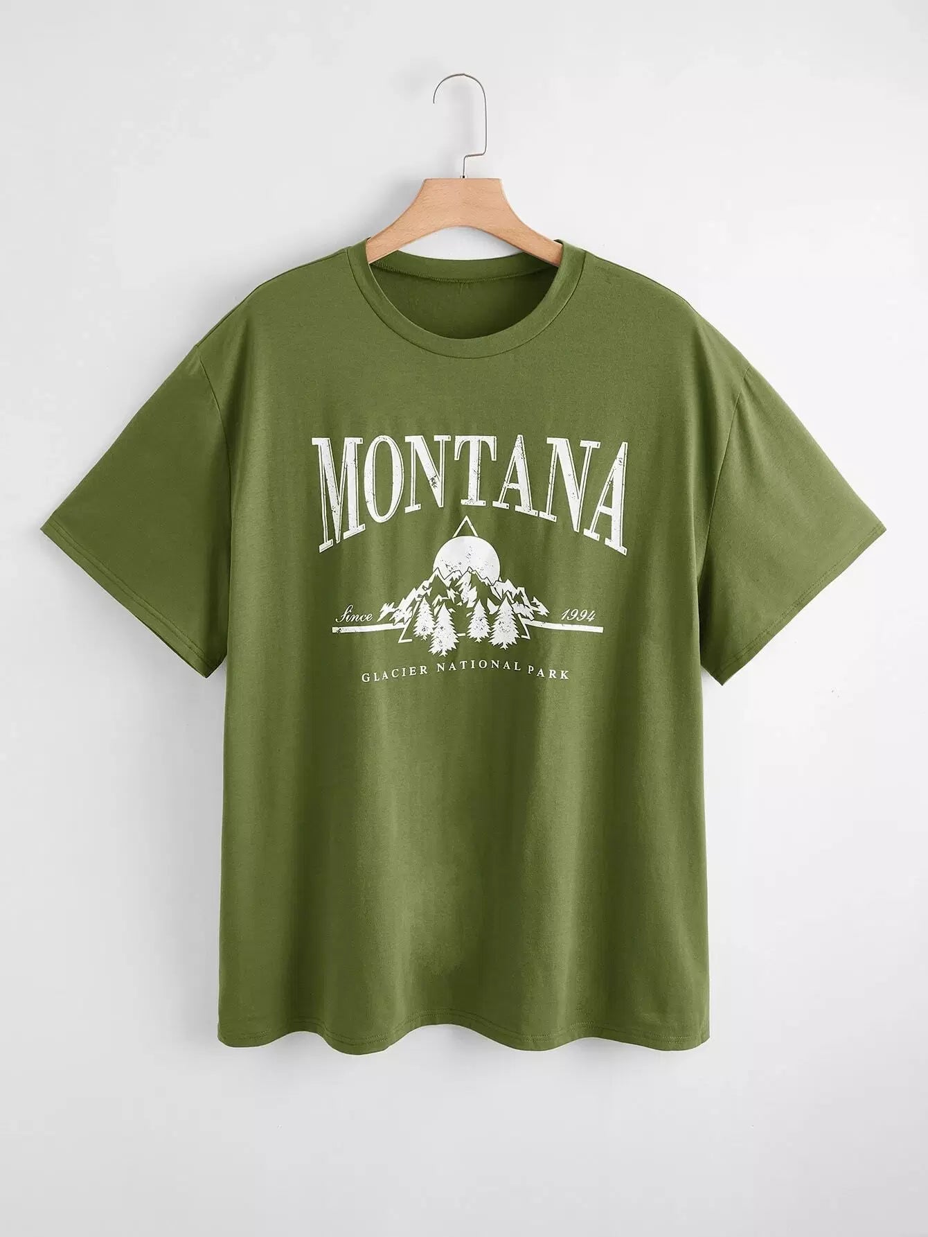 تي شيرت قصير الأكمام برسومات على شكل حرف زائد