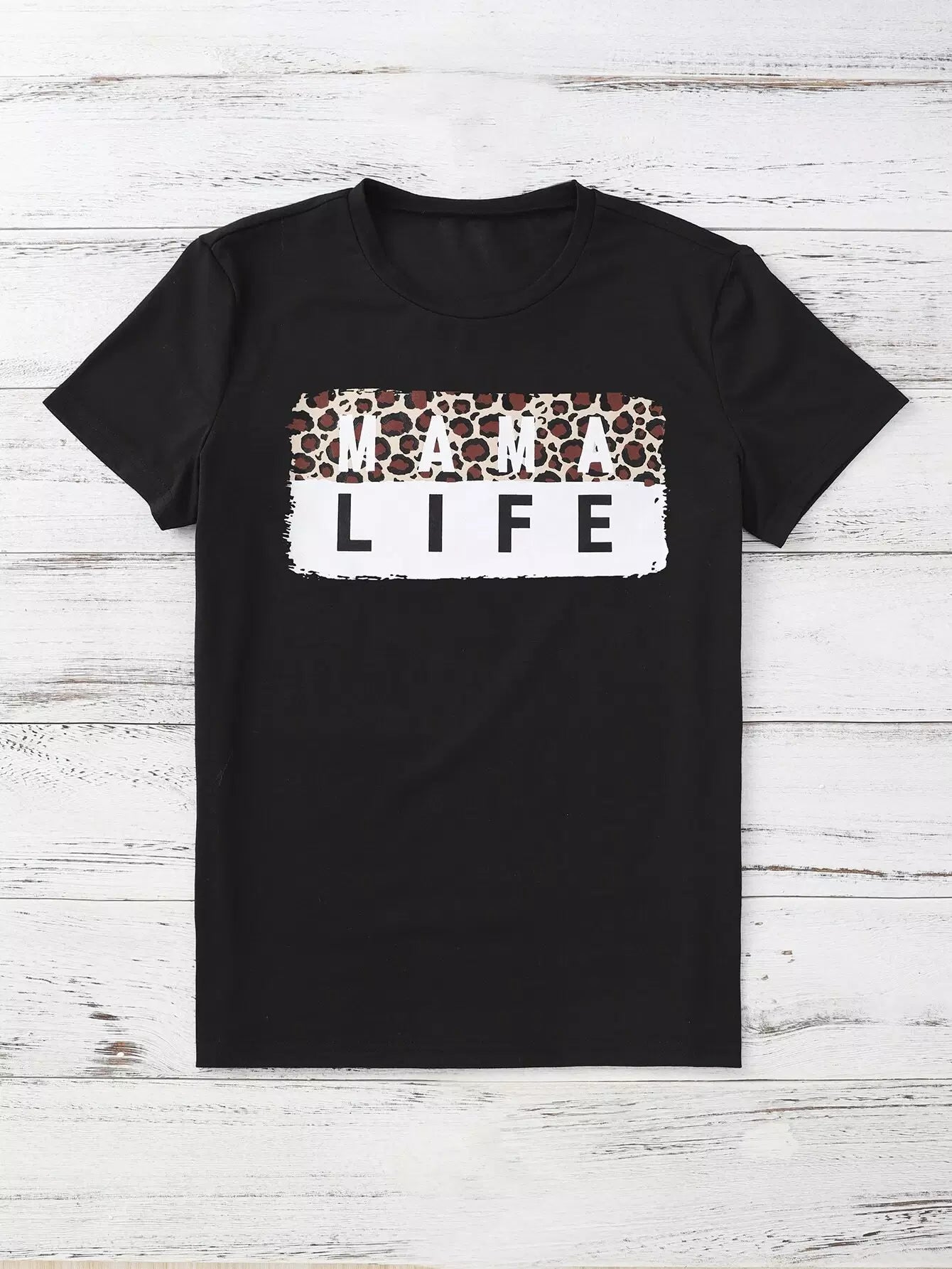 تي شيرت برقبة مستديرة مطبوع عليها حروف ونمر
