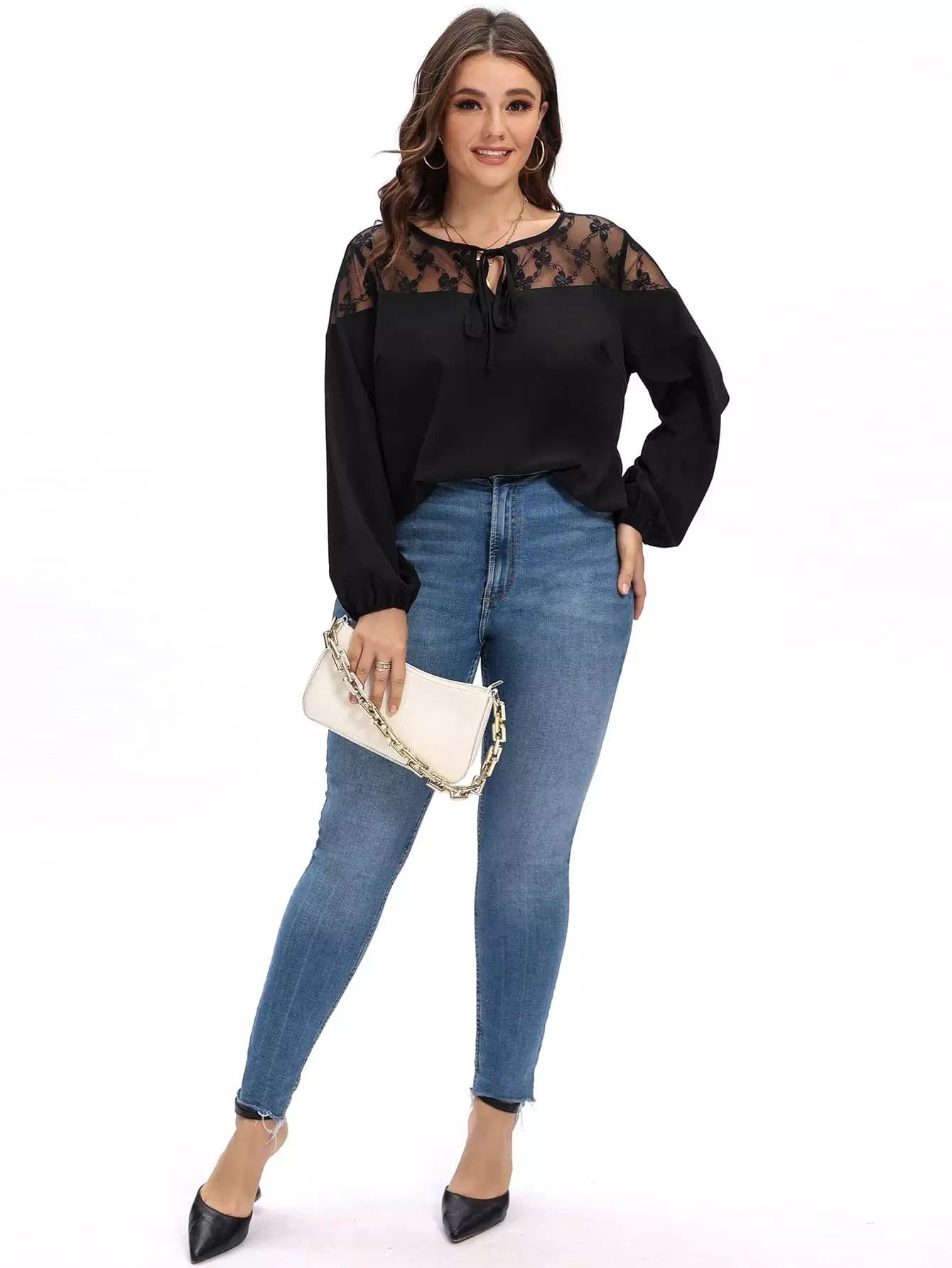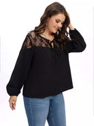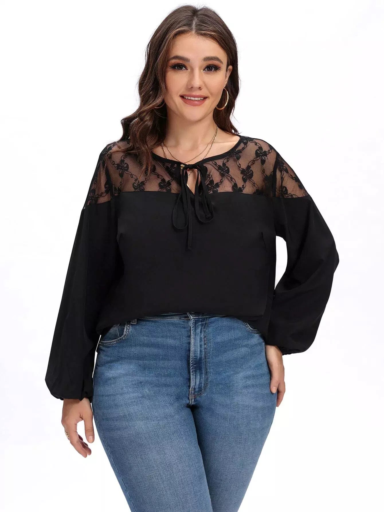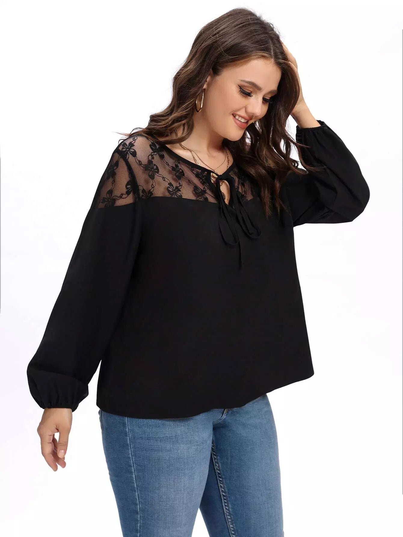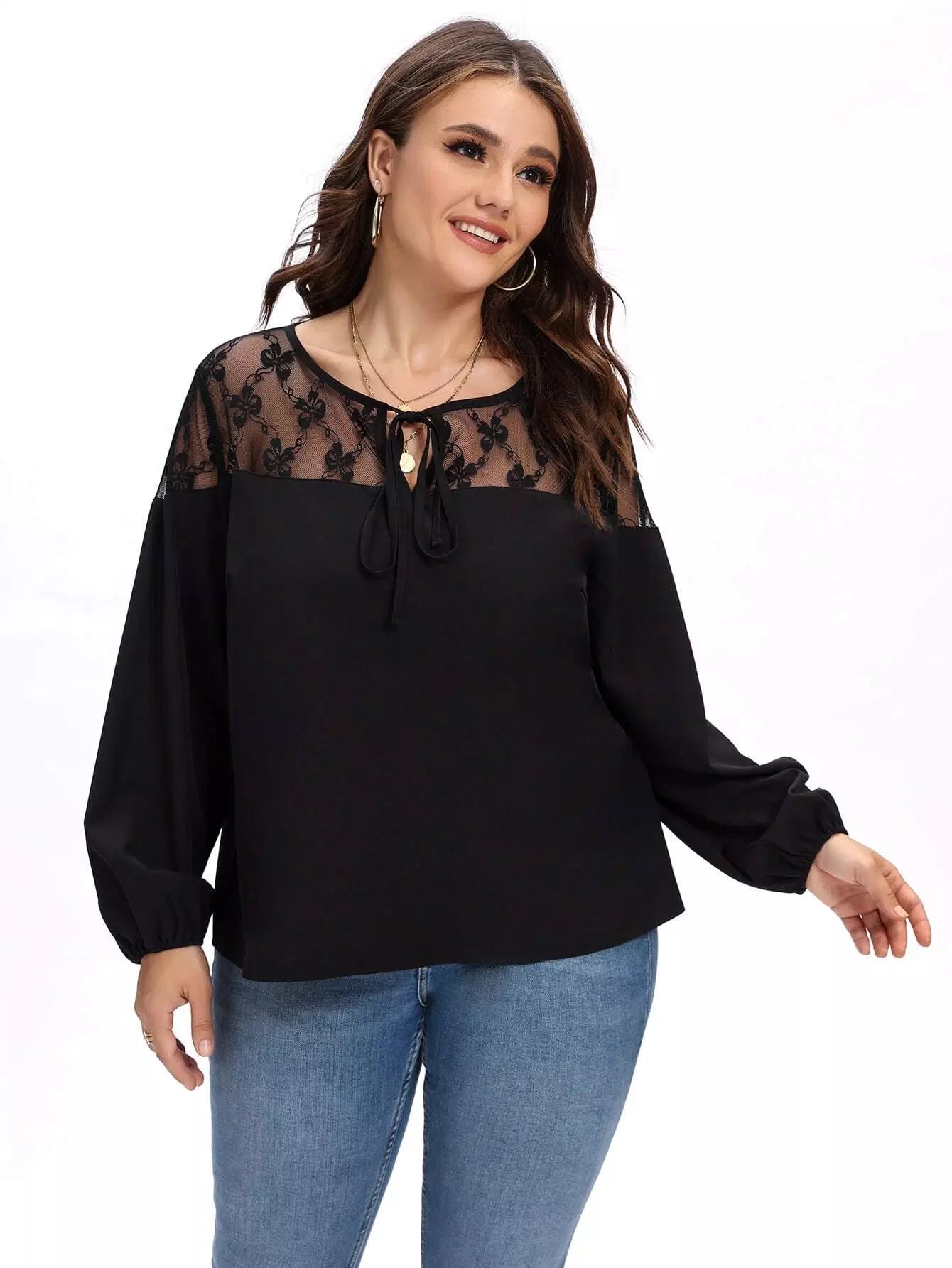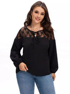 نحيف - مقاس كبير شبكة إدراج التعادل الرقبة بلوزة
