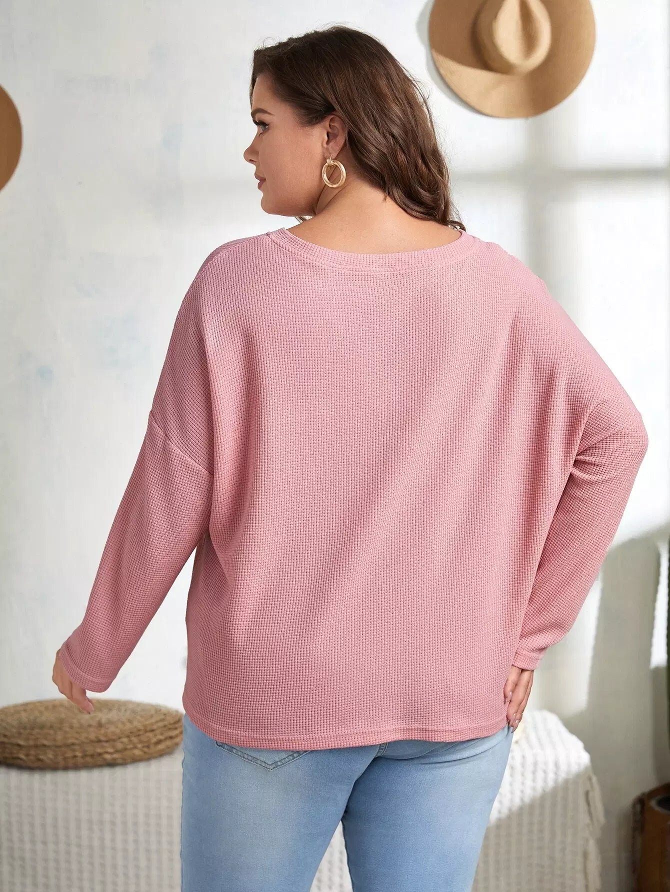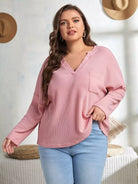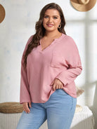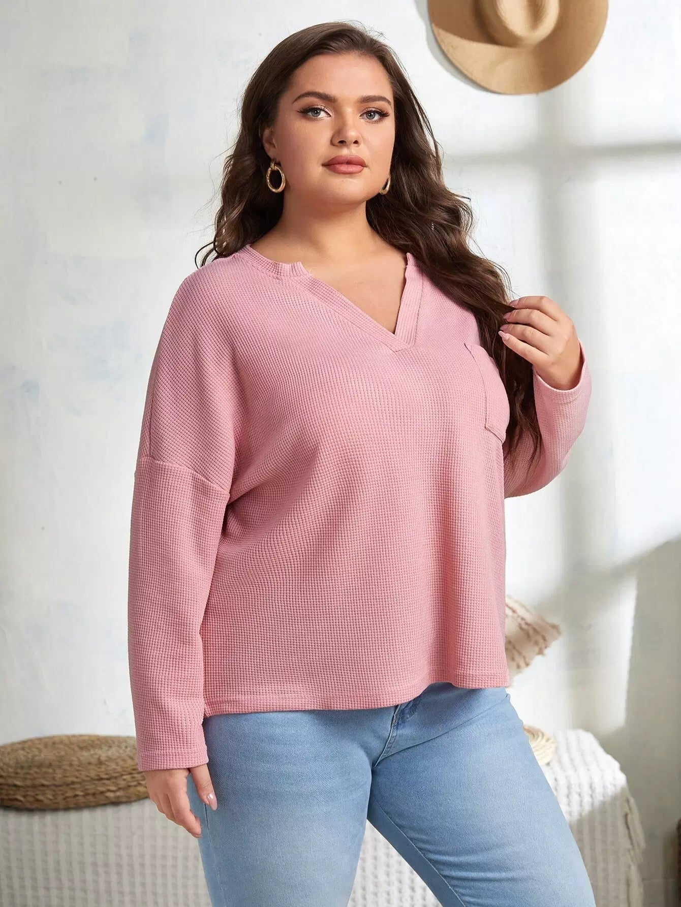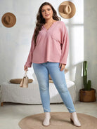 تي شيرت برقبة زائد برقبة مفتوحة من الأمام وجيب أمامي سادة