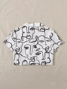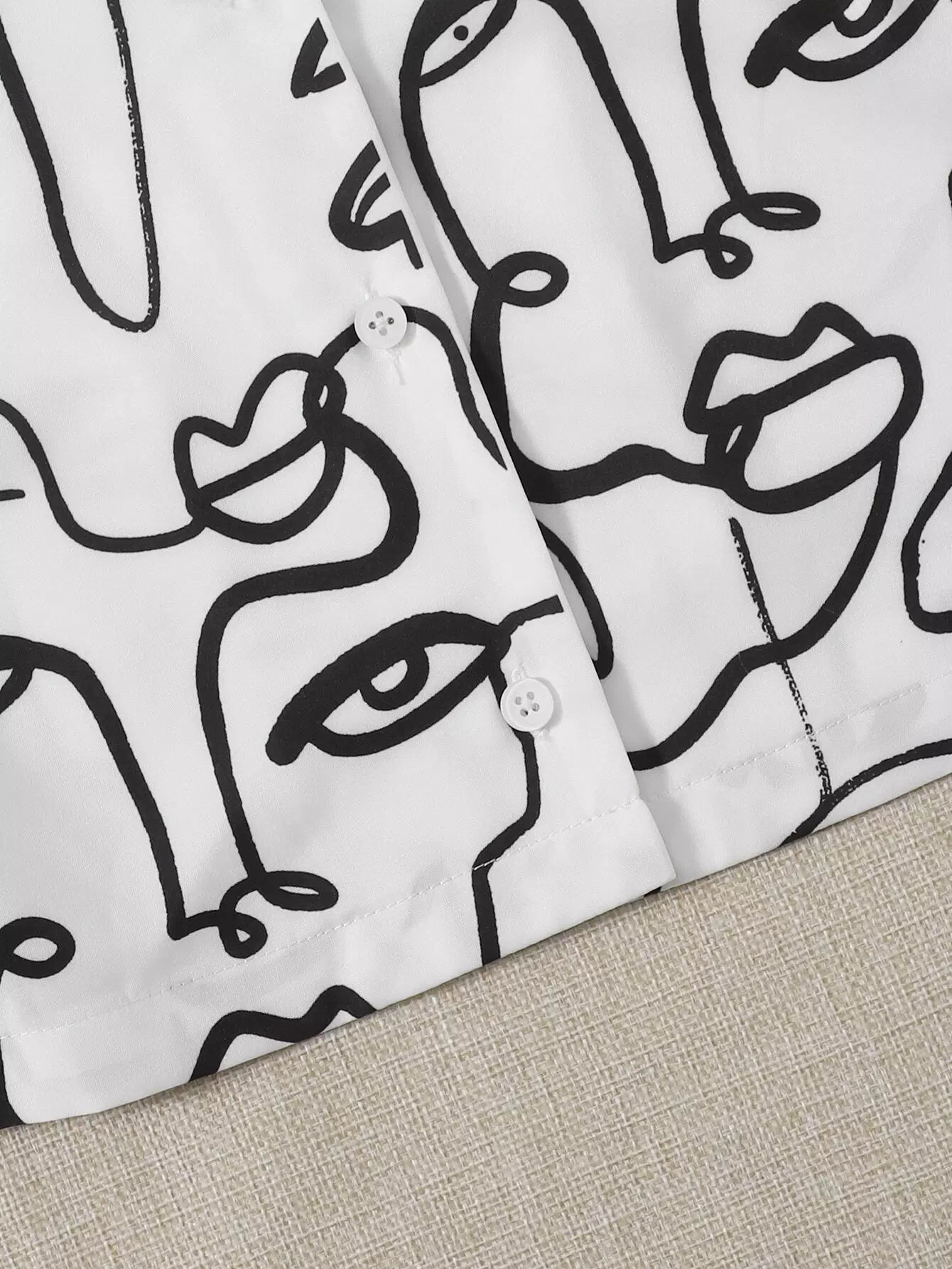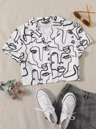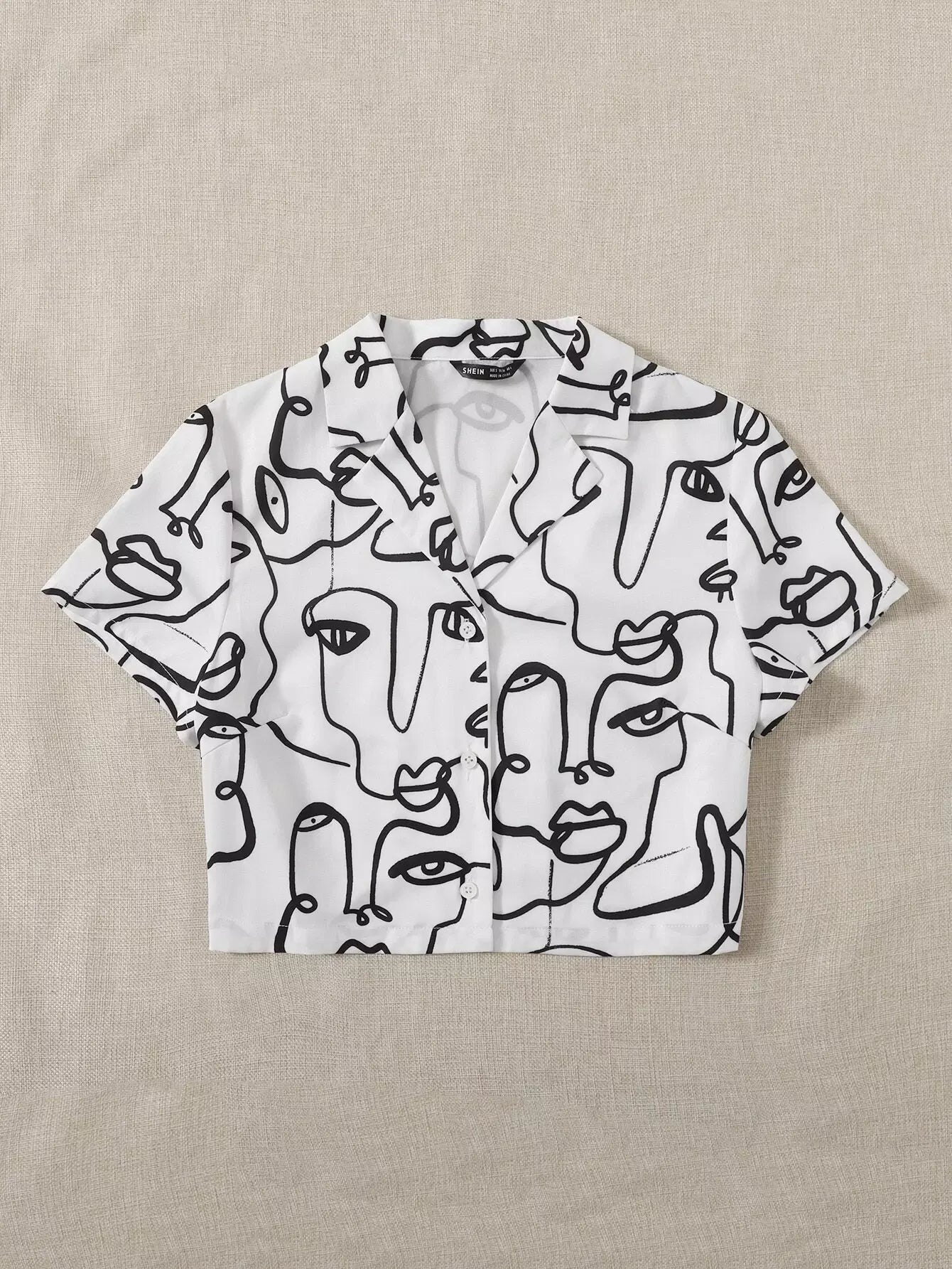 بلوزة بياقة بفتحة زائد بياقة ذات رسومات على شكل حرف (بلاس)