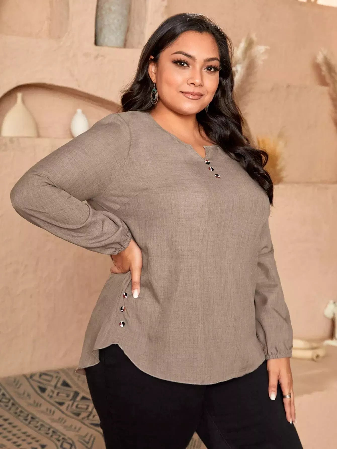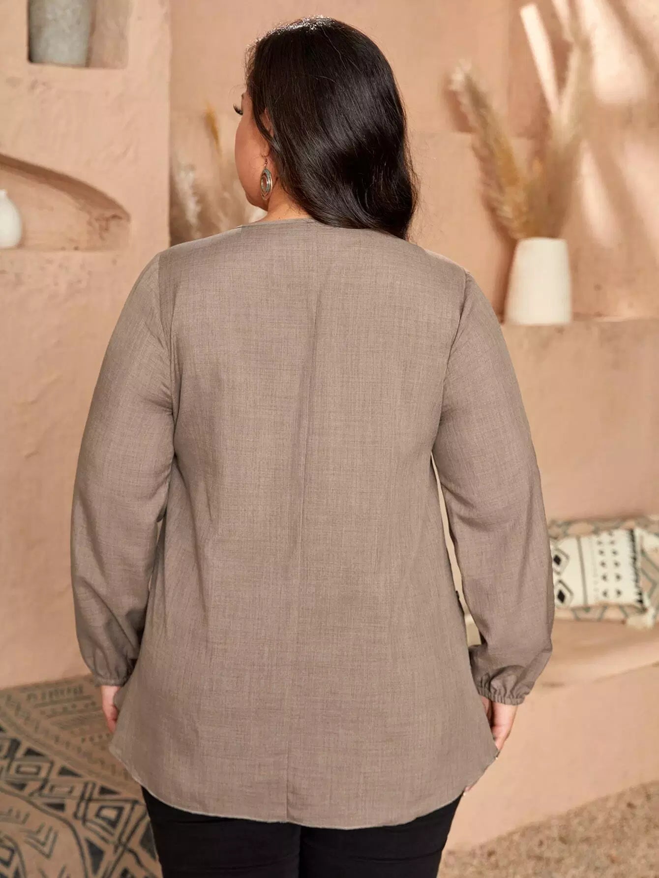 بلوزة برقبة زائد برقبة منحنية الحاشية