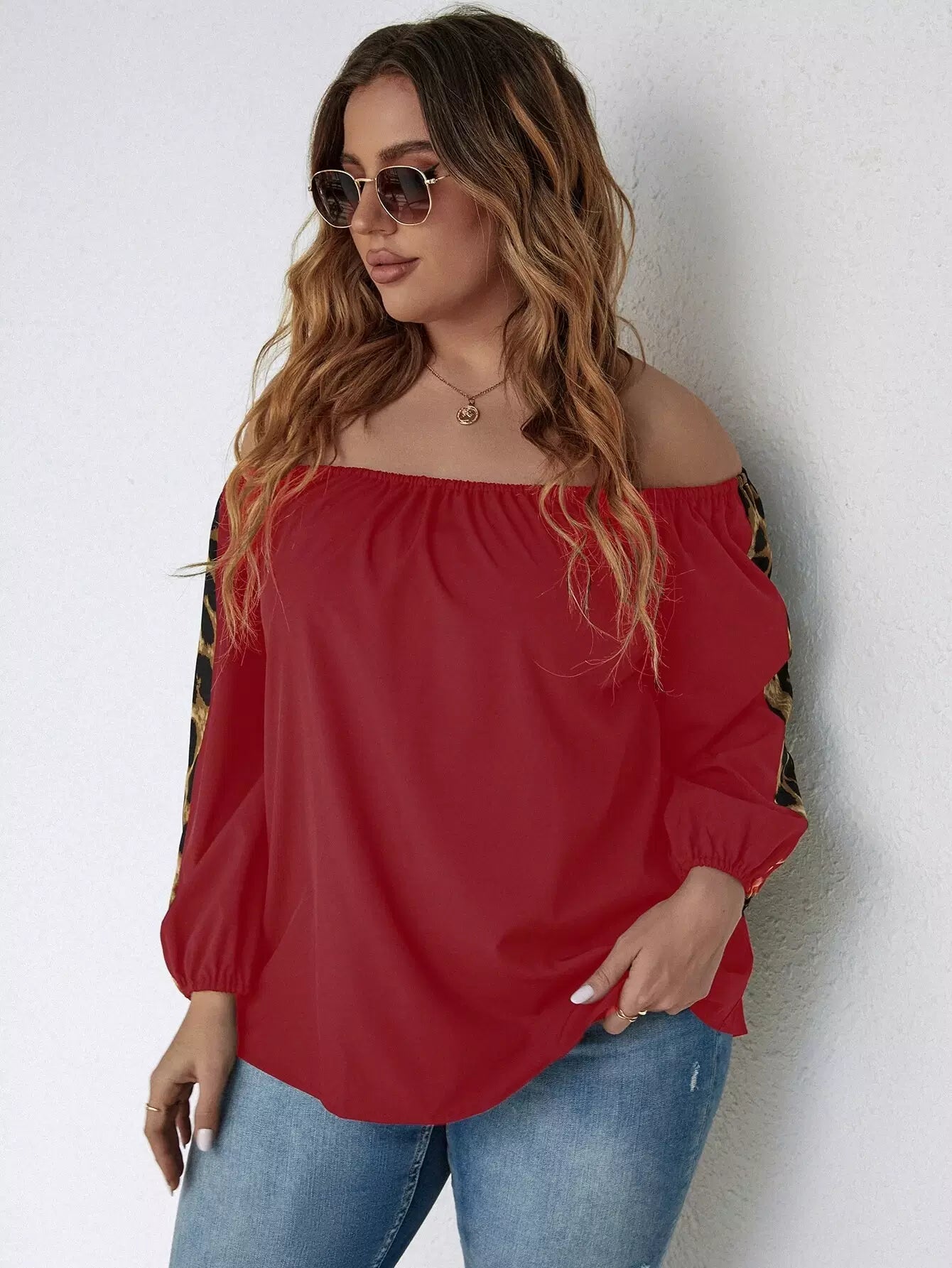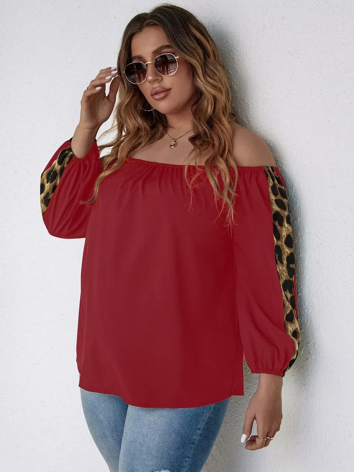 بلوزة بدون أكتاف مطبوعة بنقشة جلد النمر