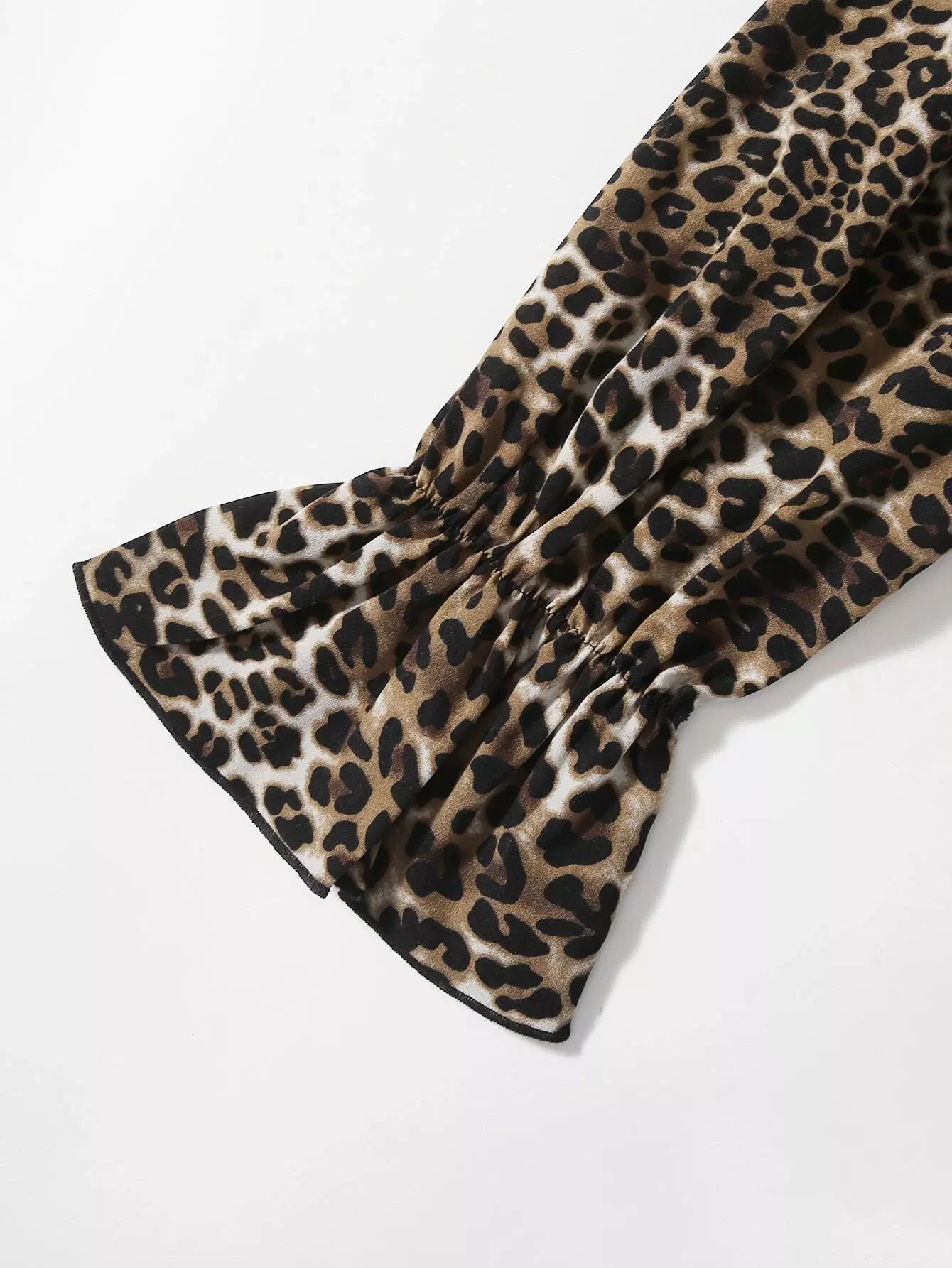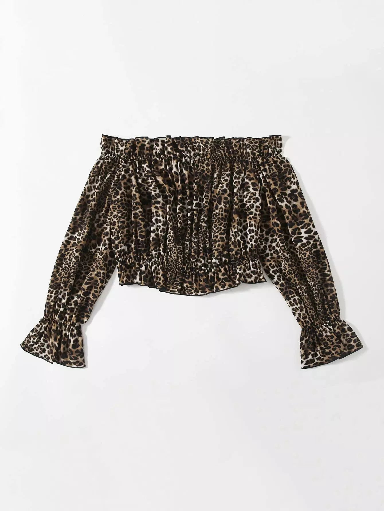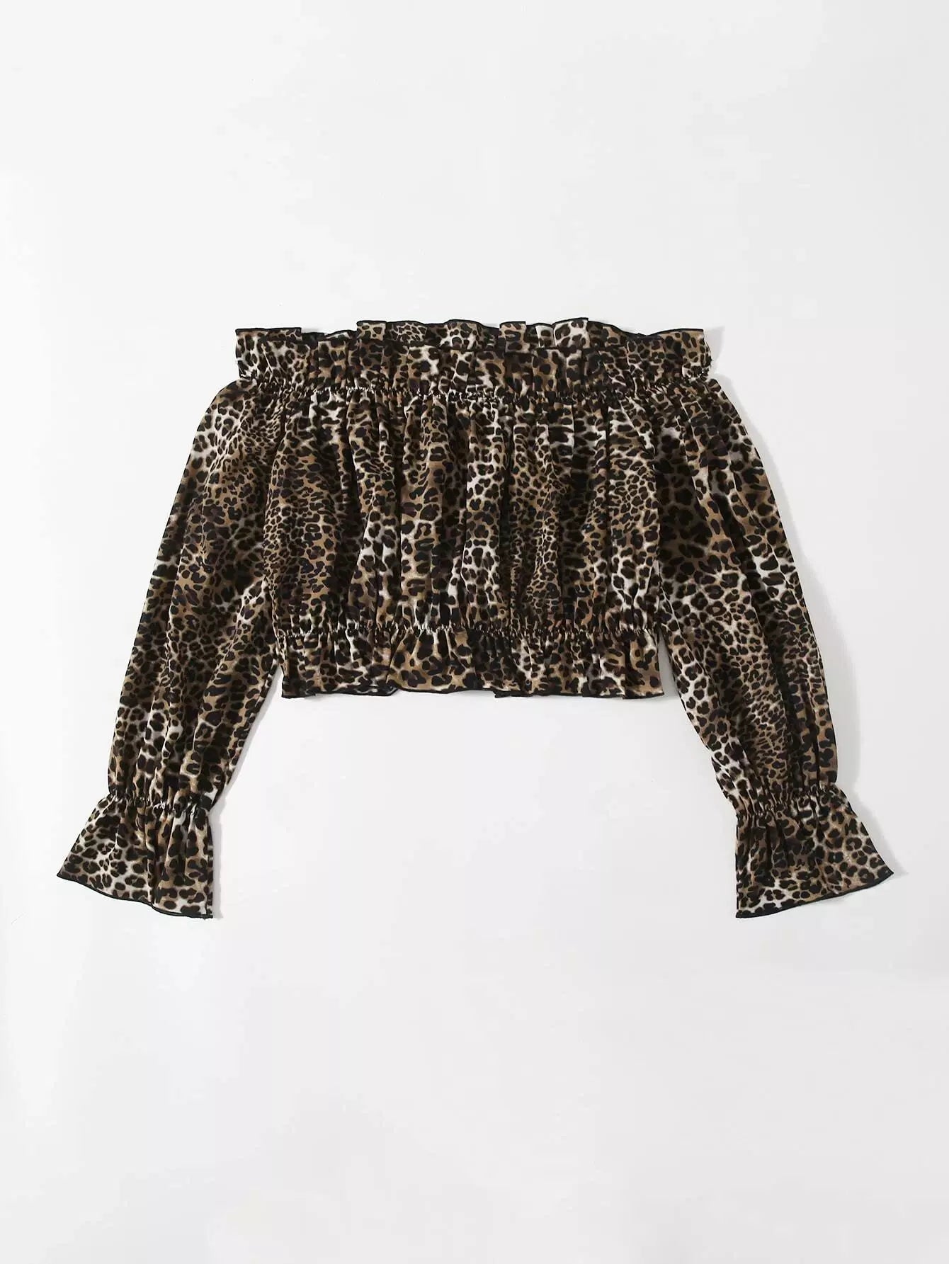 بلوزة بحاشية كشكش مطبوع عليها كشكش بنقشة جلد النمر