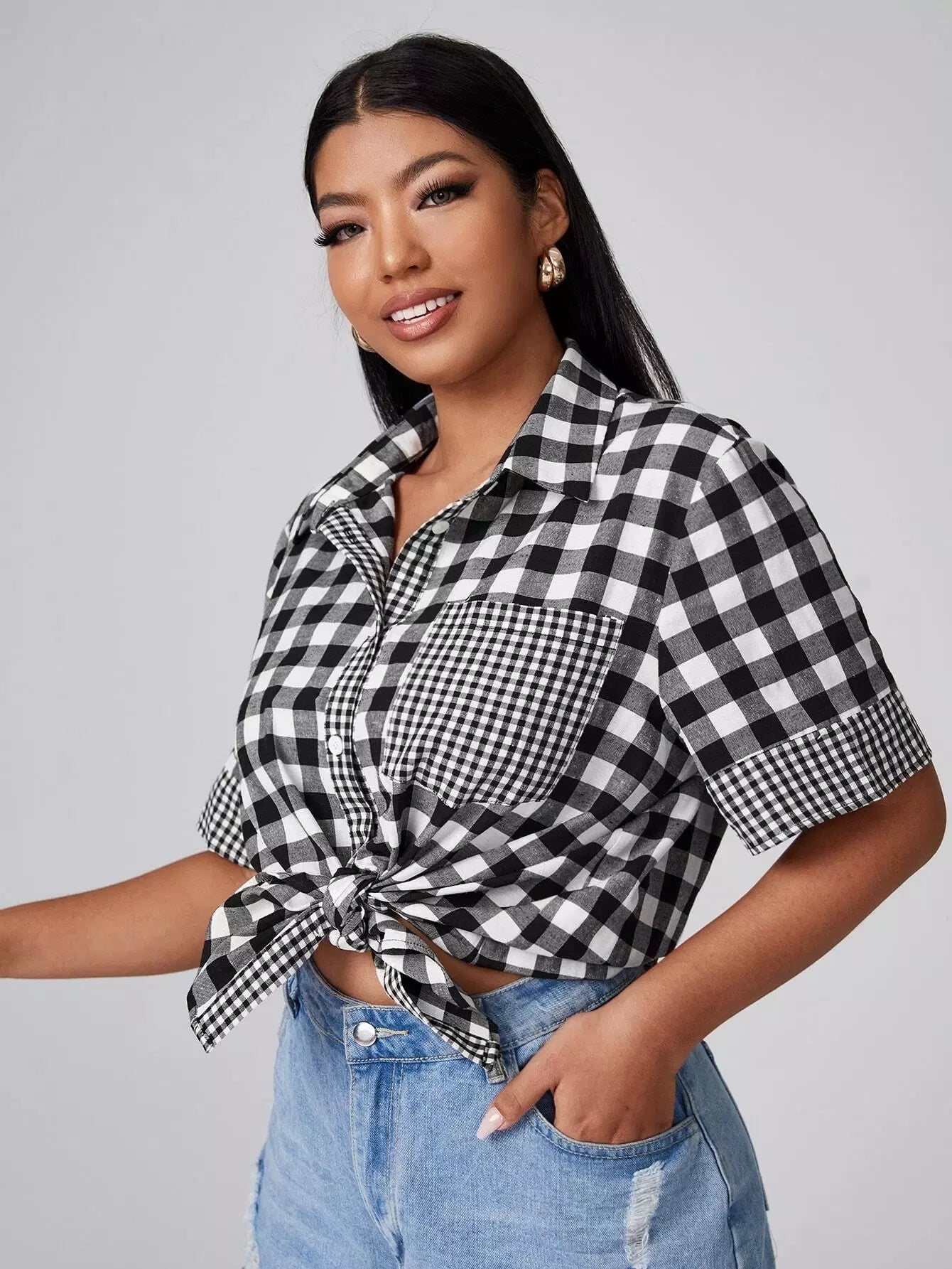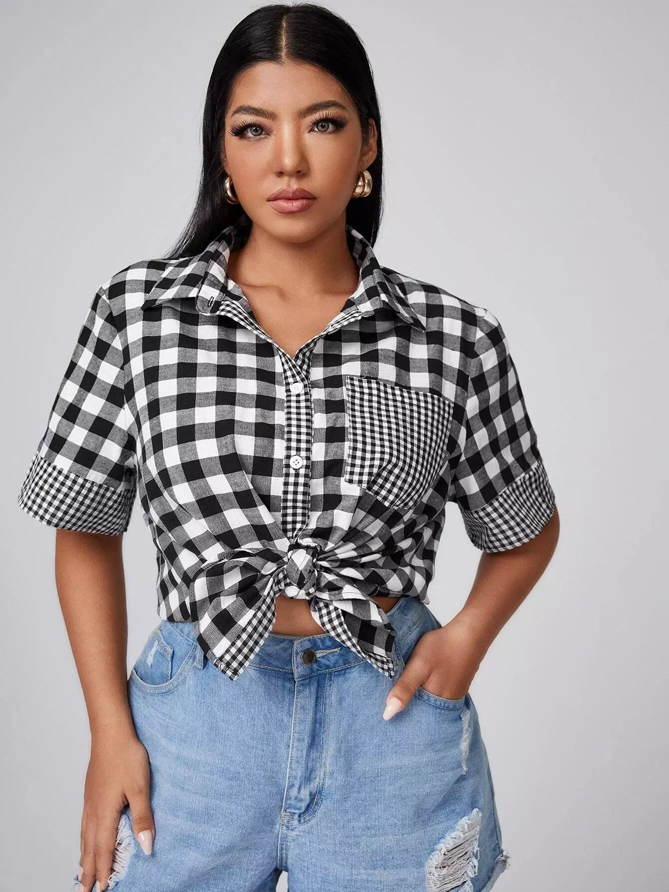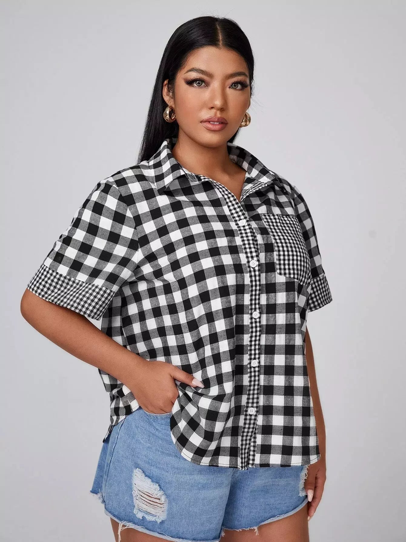 قميص من القماش القطني برقعة جيب زائد
