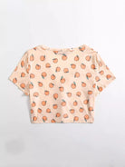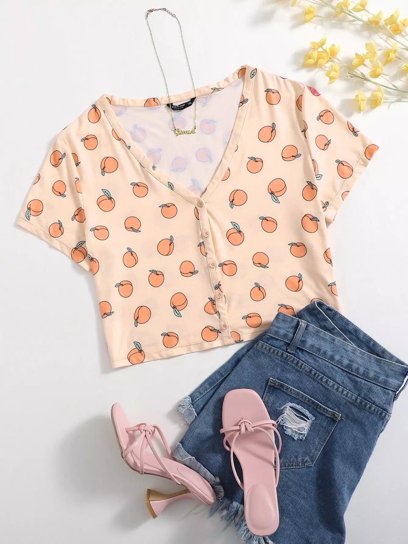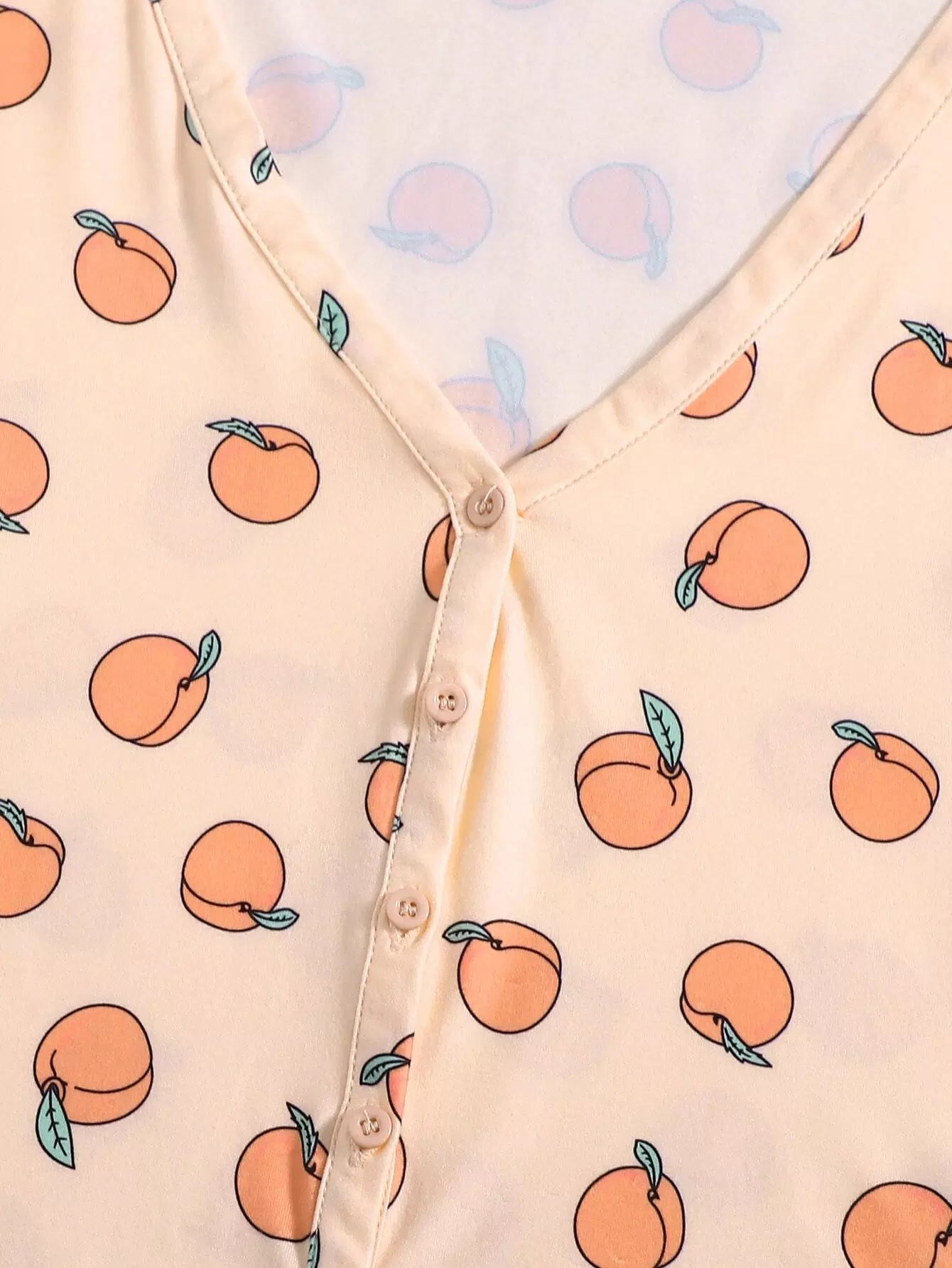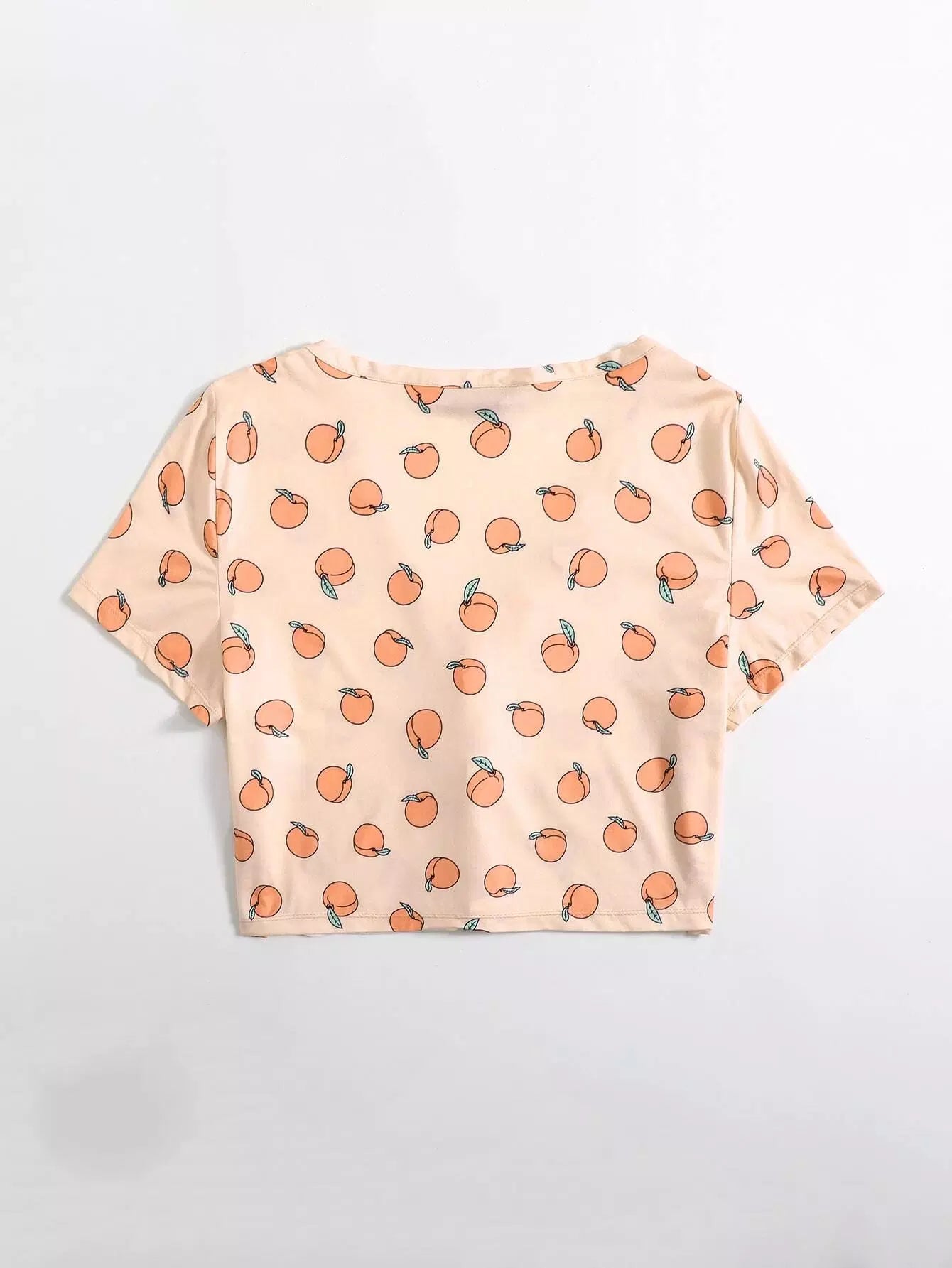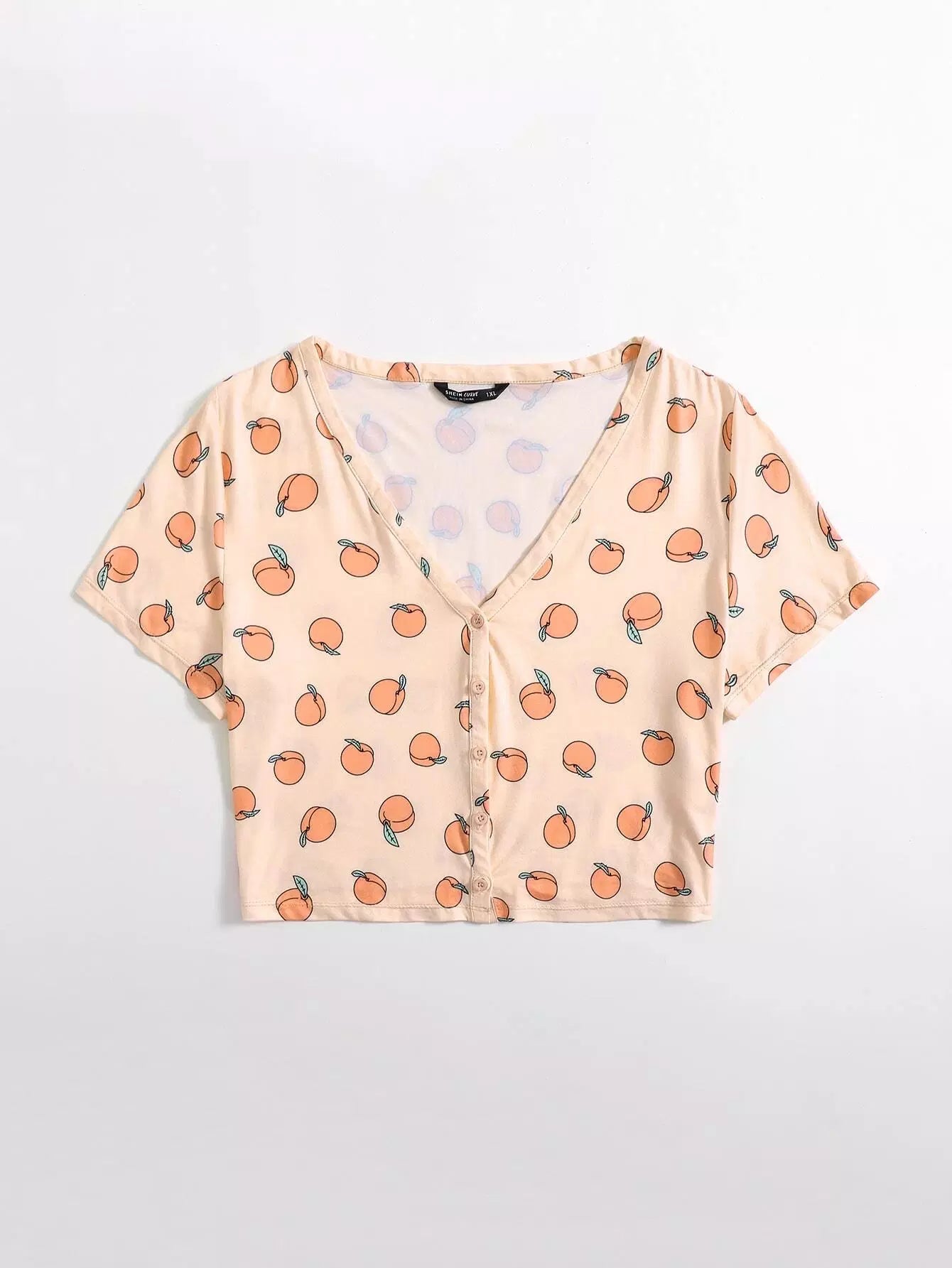 تي شيرت بطبعة خوخ مطبوع بأزرار أمامية بلس
