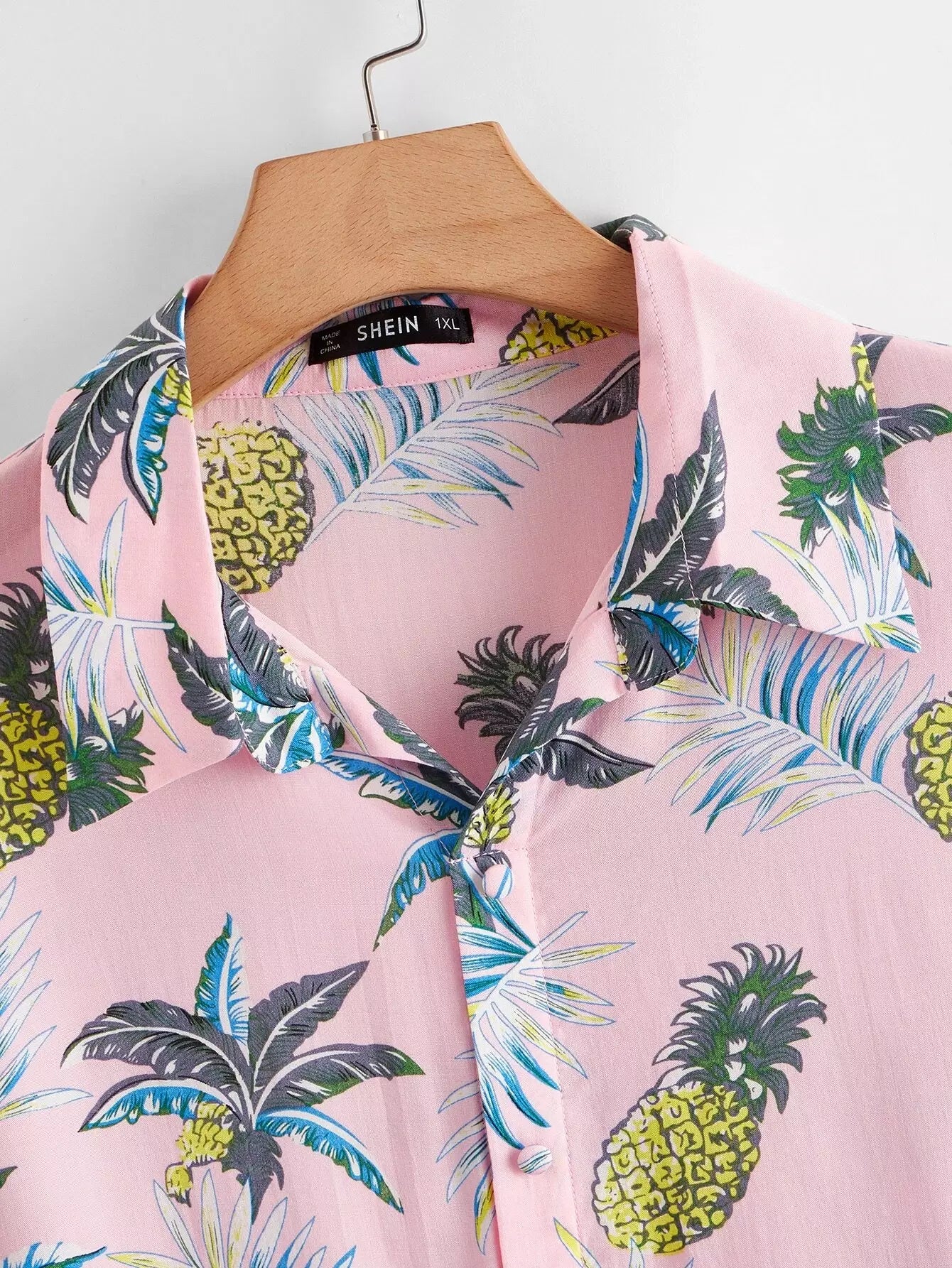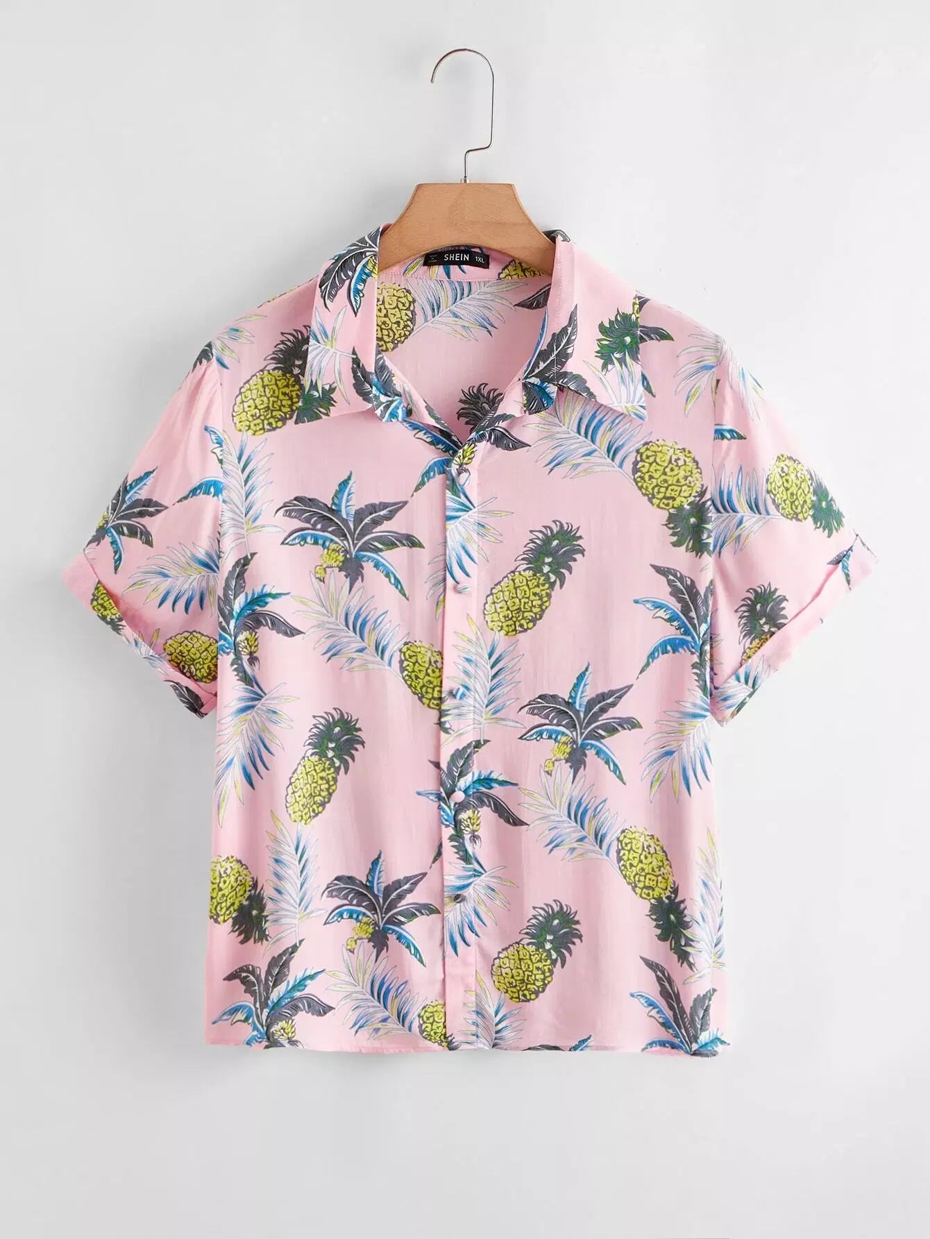 قميص بطبعة أناناس مطبوع عليه أزرار زائد