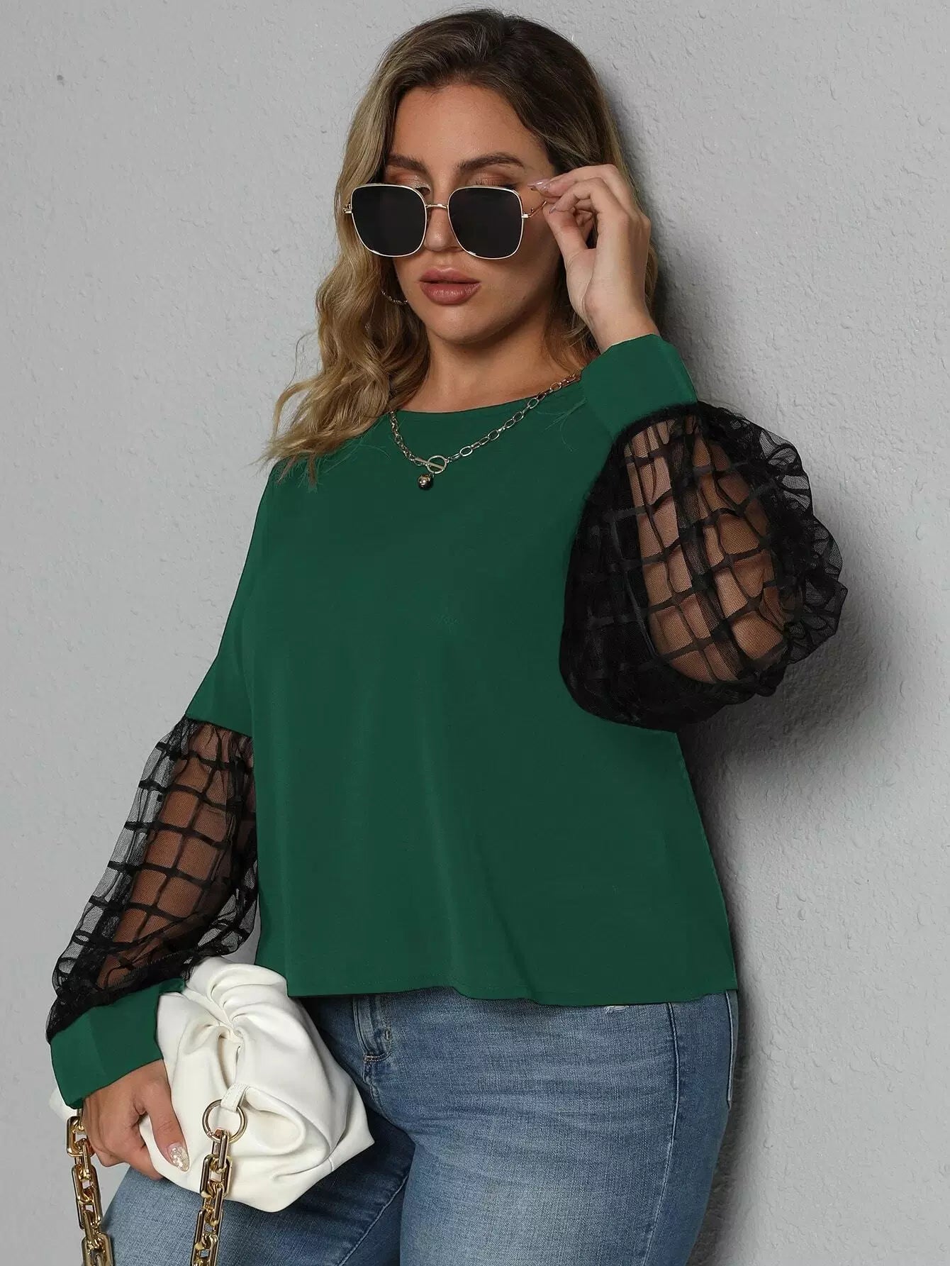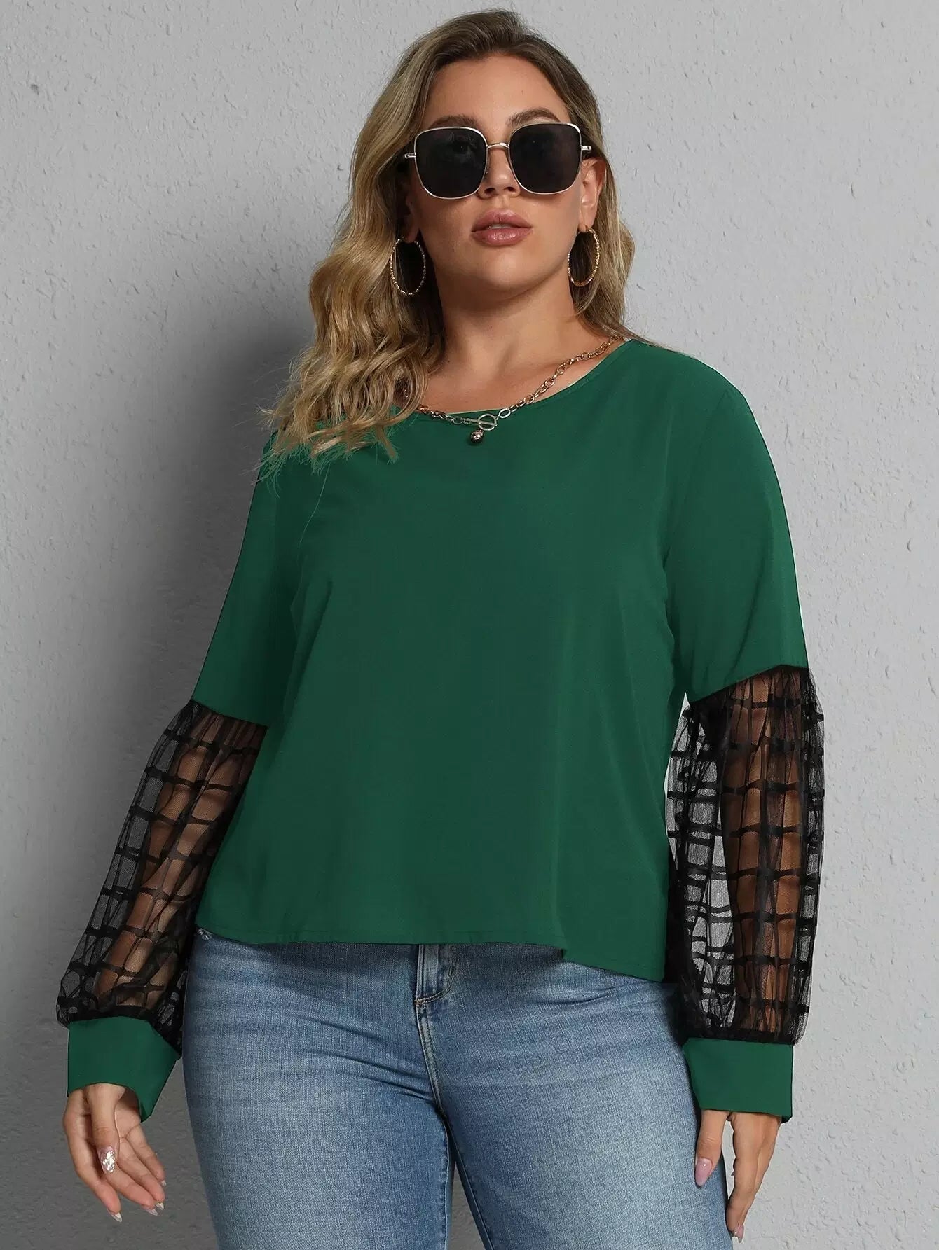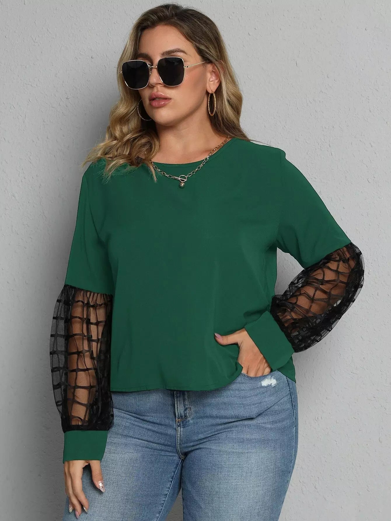 بلوزة منقوشة منقوشة بشبكة بلاس
