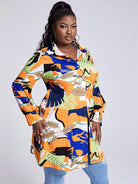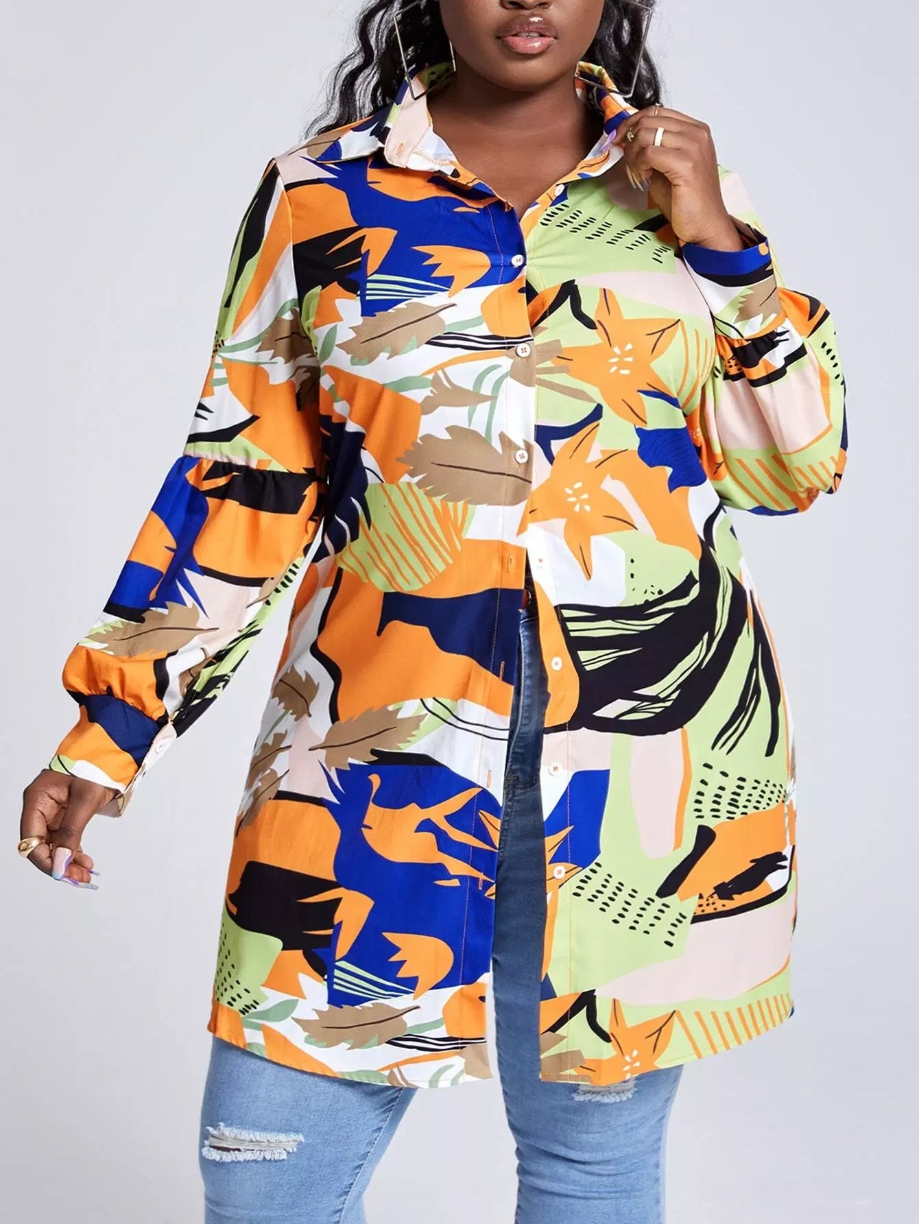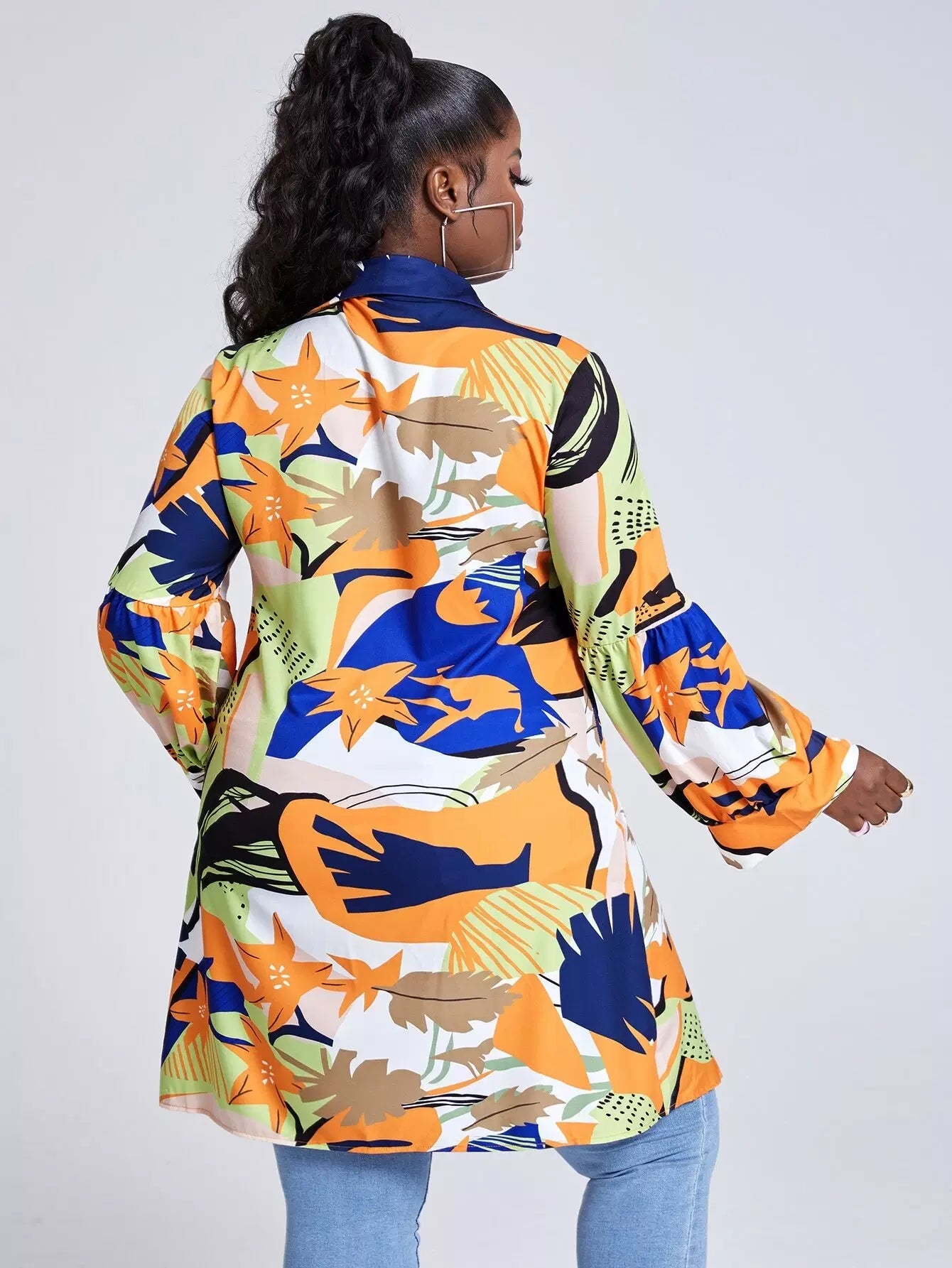 قميص بطبعة بلاس بلانتس مطبوع عليه أزرار فوق البنطلون