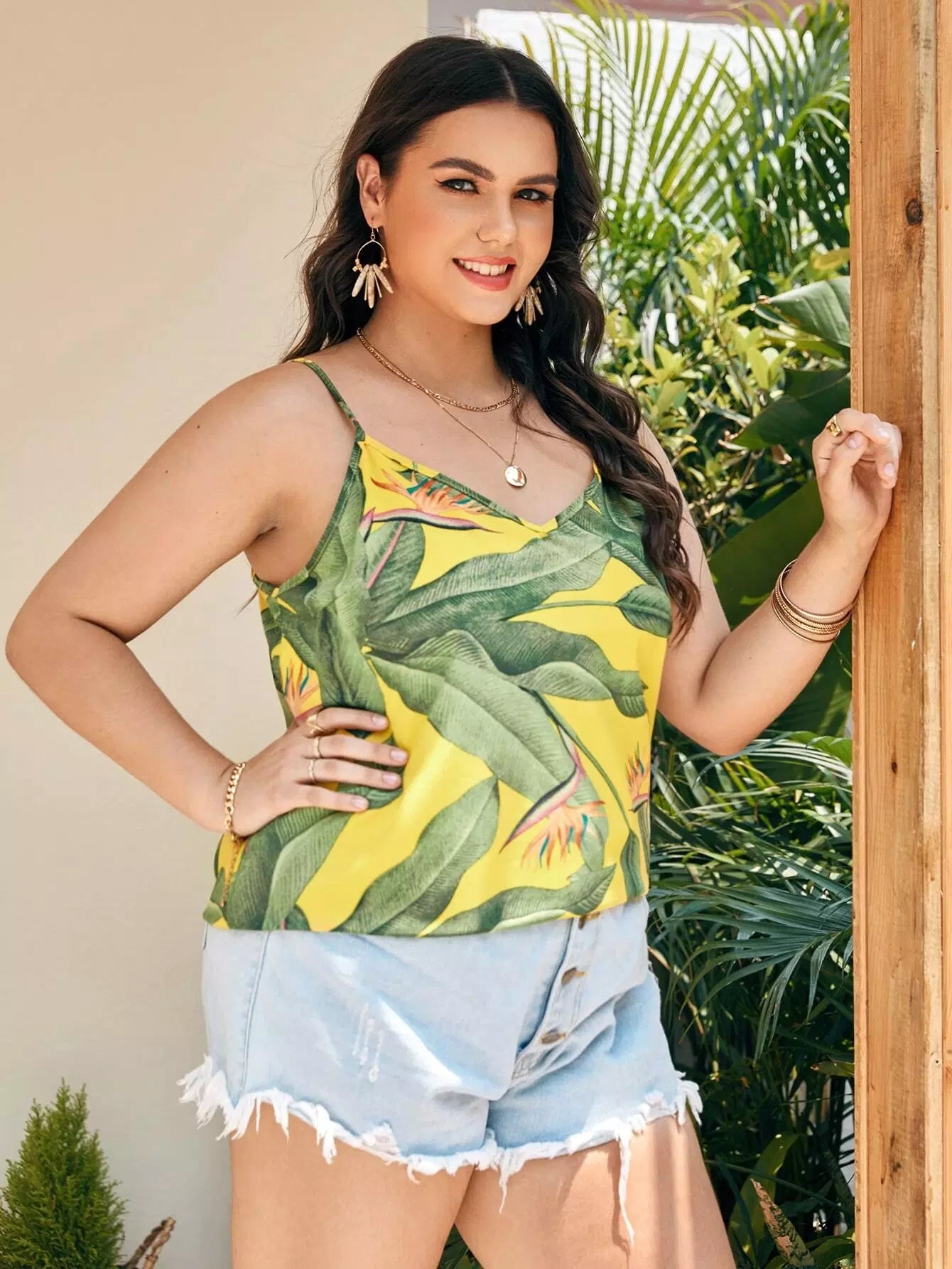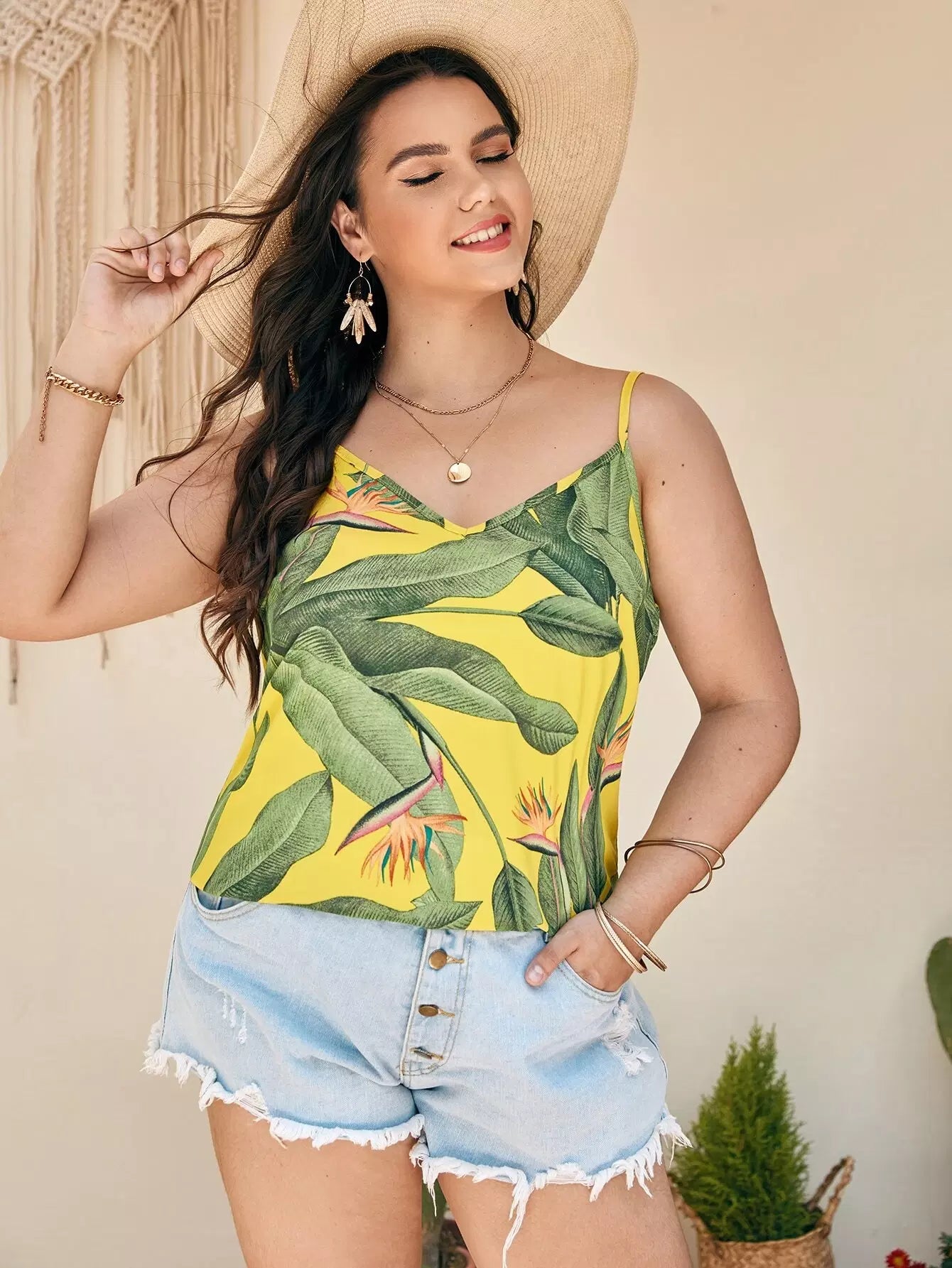 بلوزة كامي بطبعة نباتات زائد