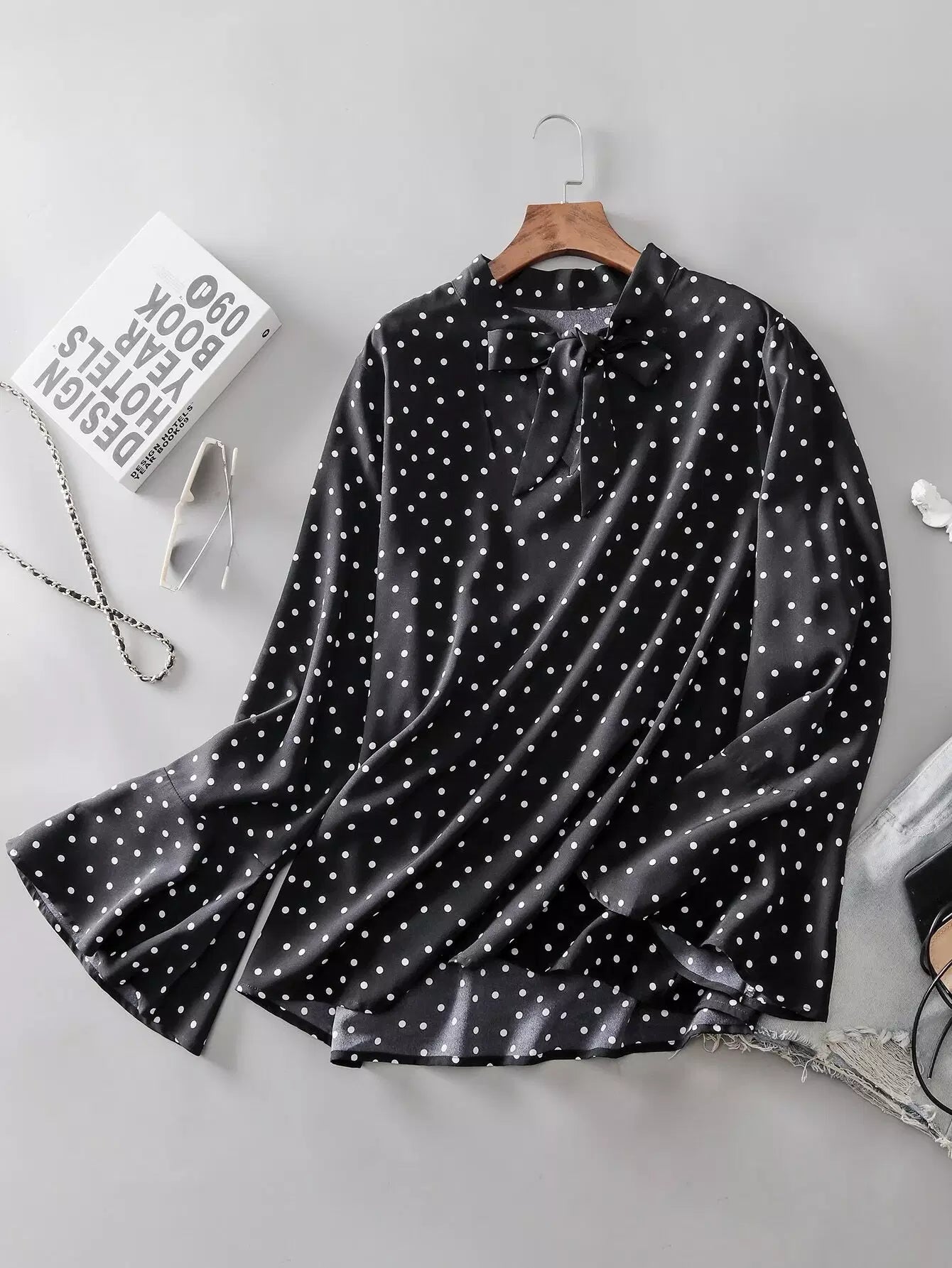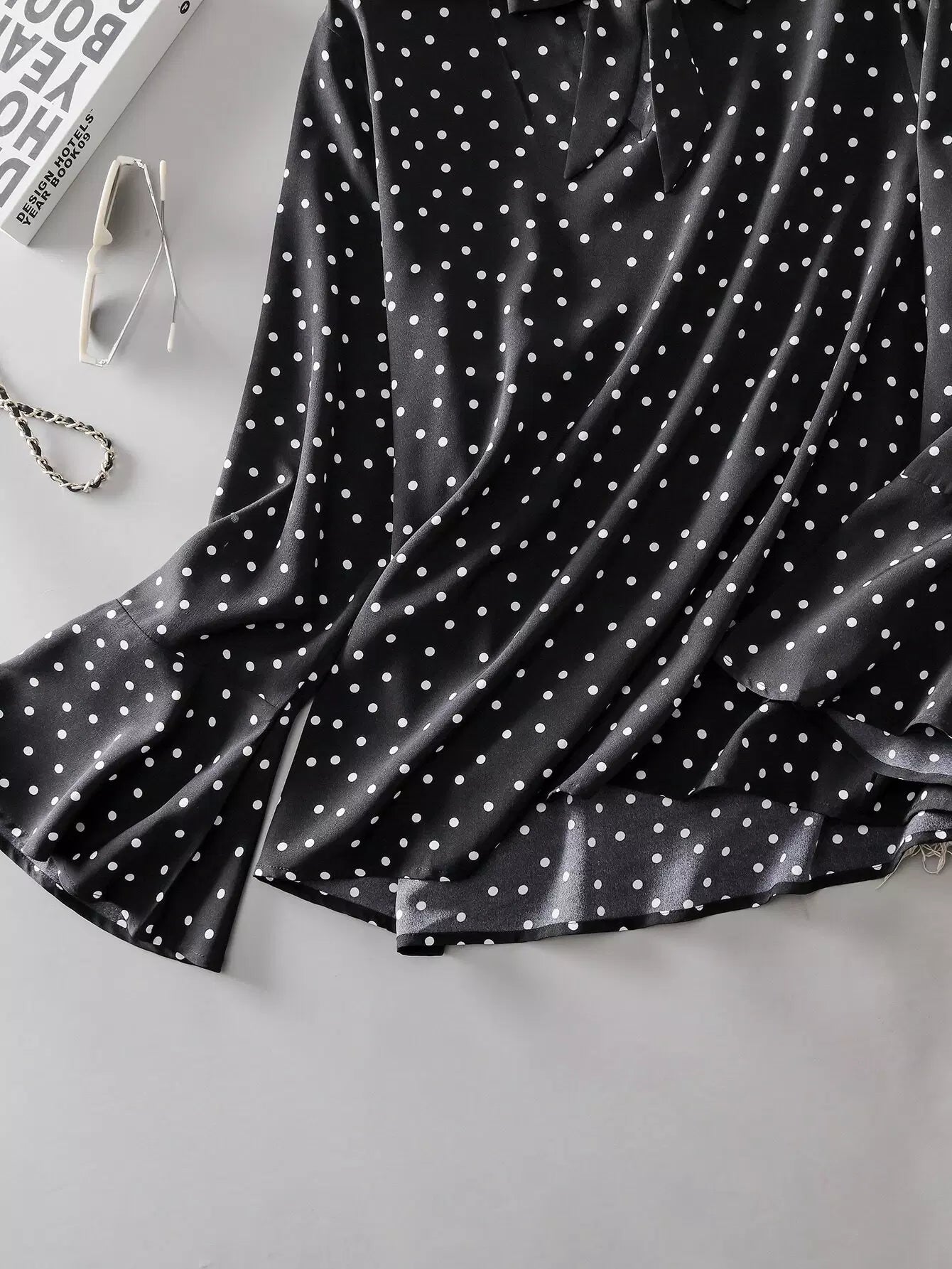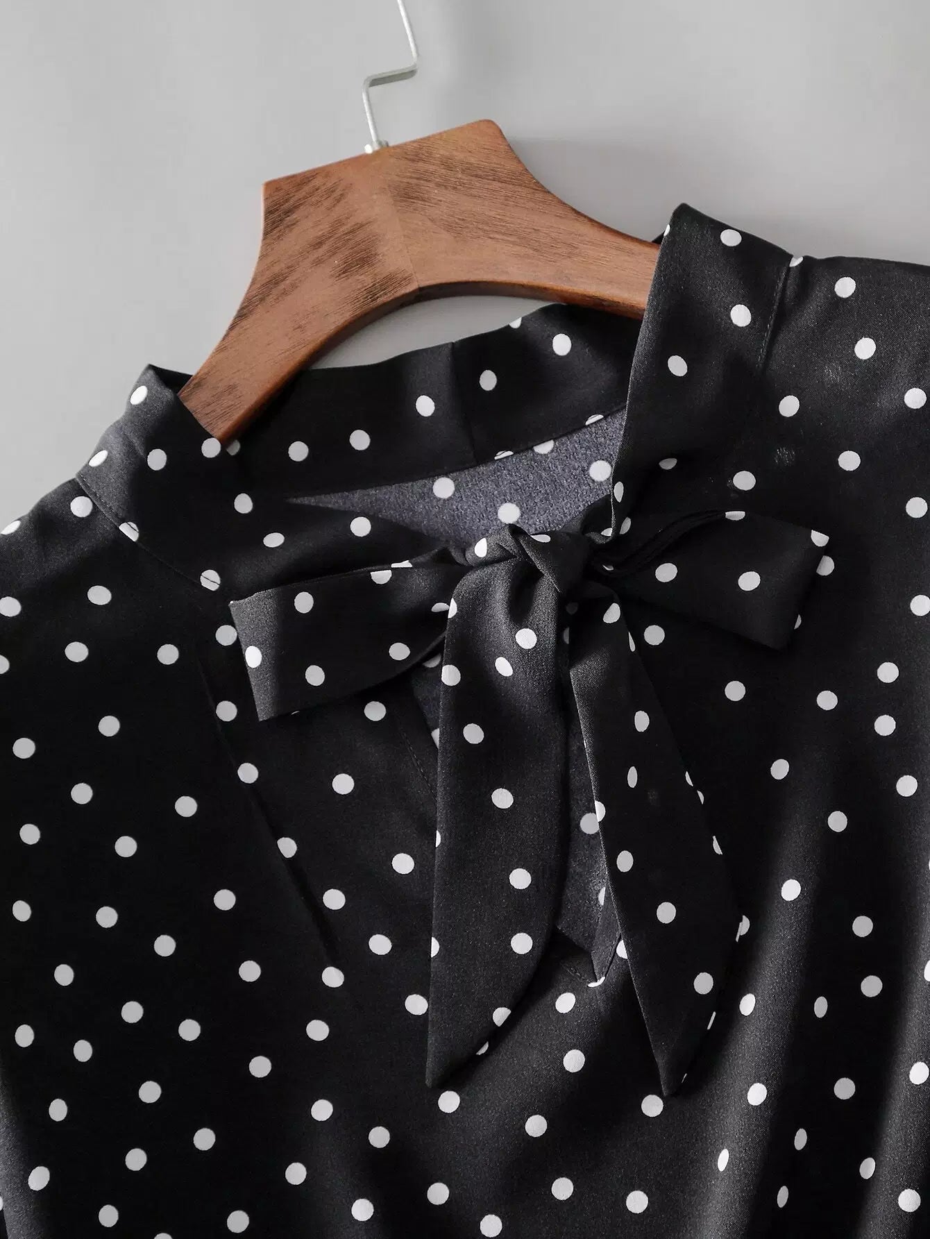 بلوزة بأكمام منقطة بربطة عنق منفوشة بربطة عنق منفوشة