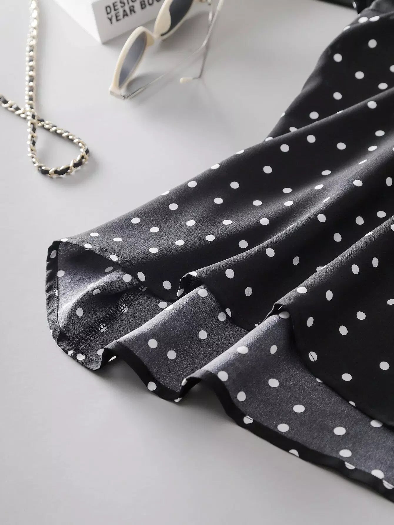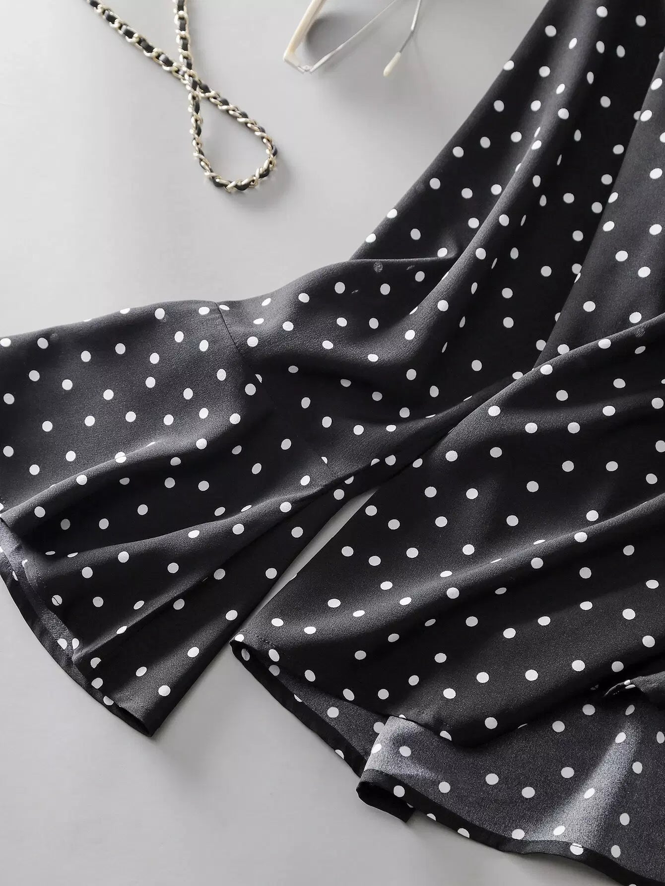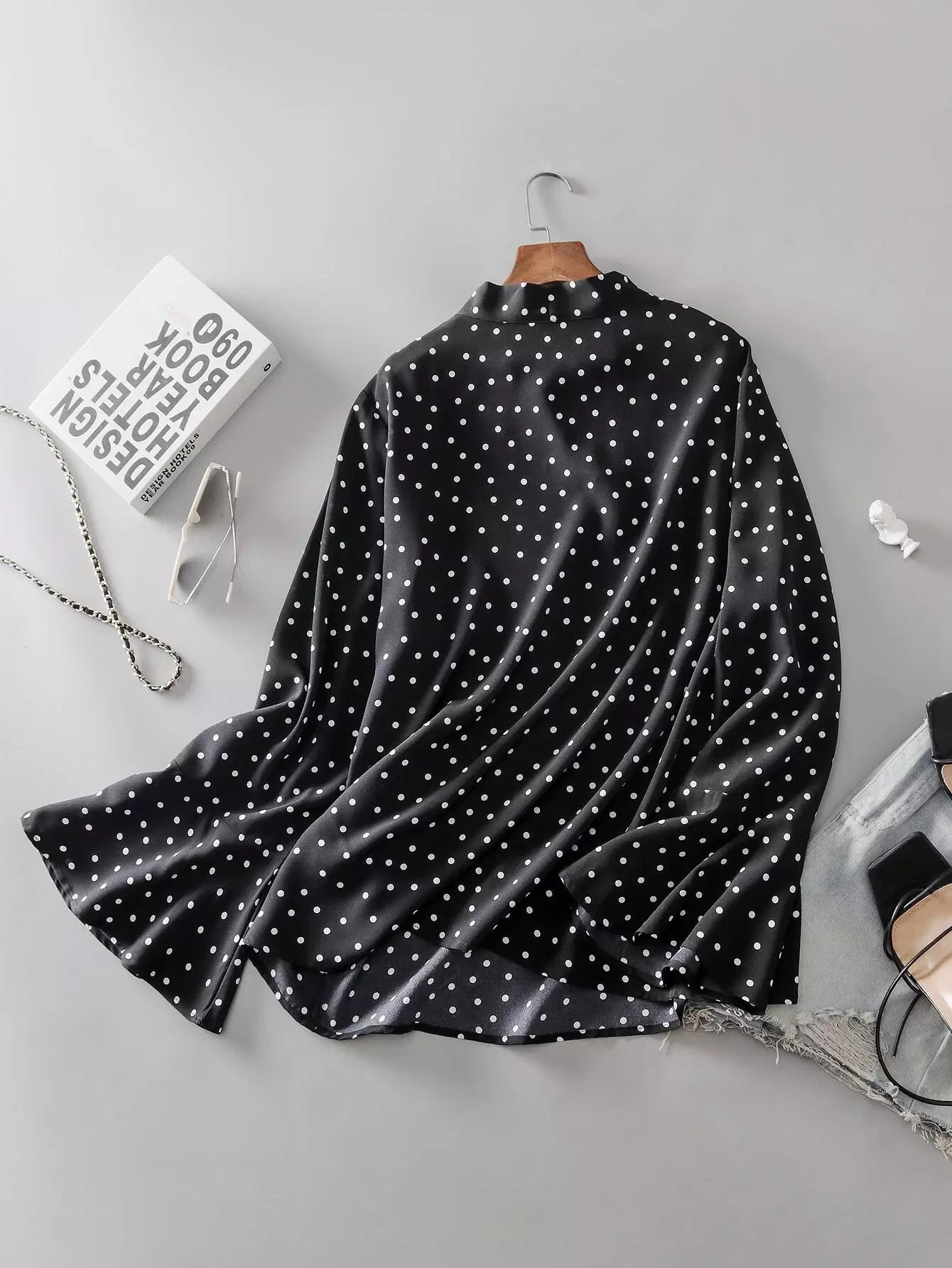 بلوزة بأكمام منقطة بربطة عنق منفوشة بربطة عنق منفوشة