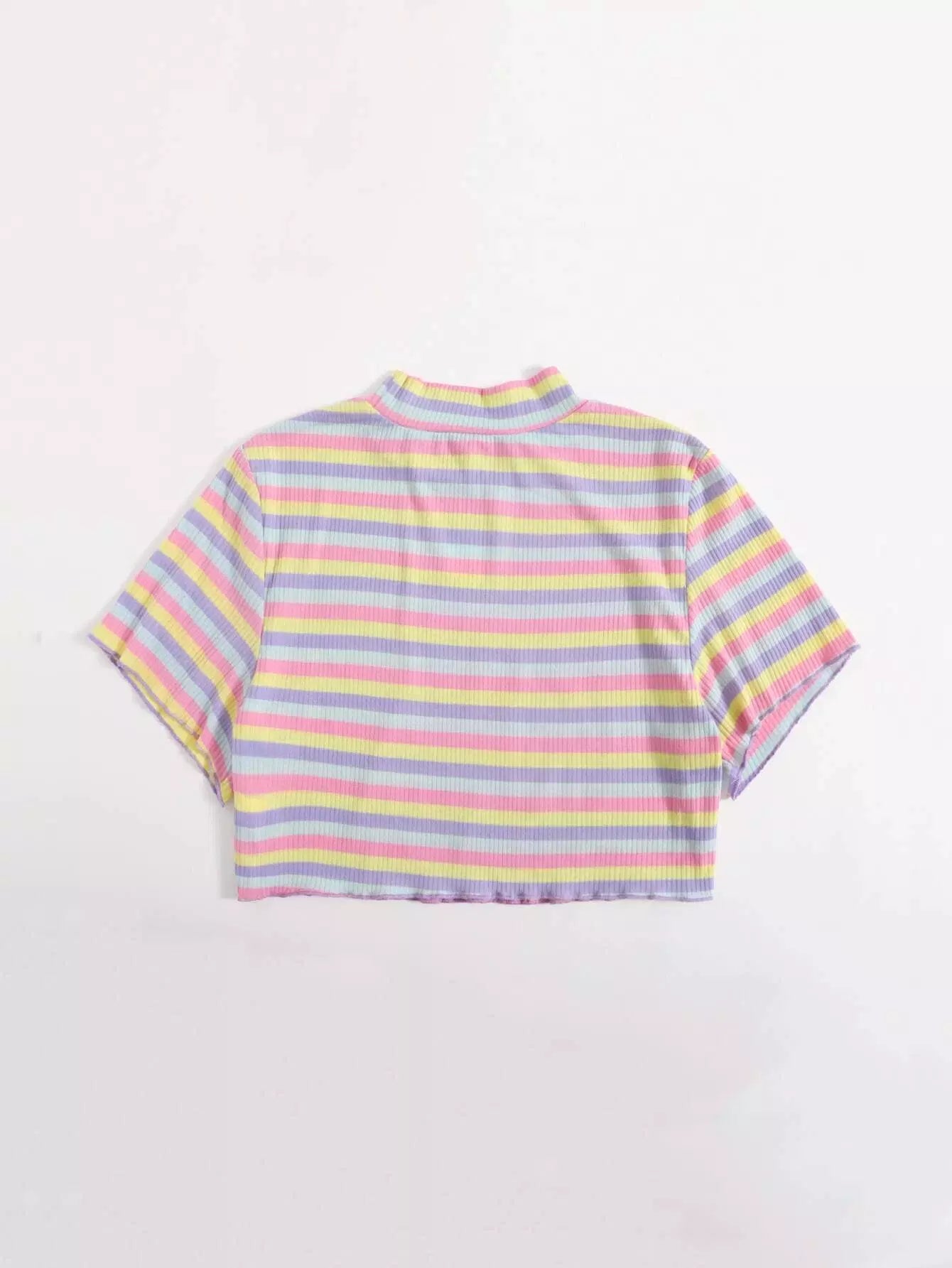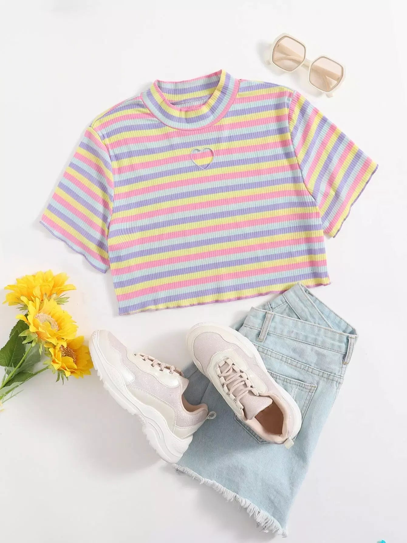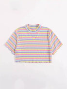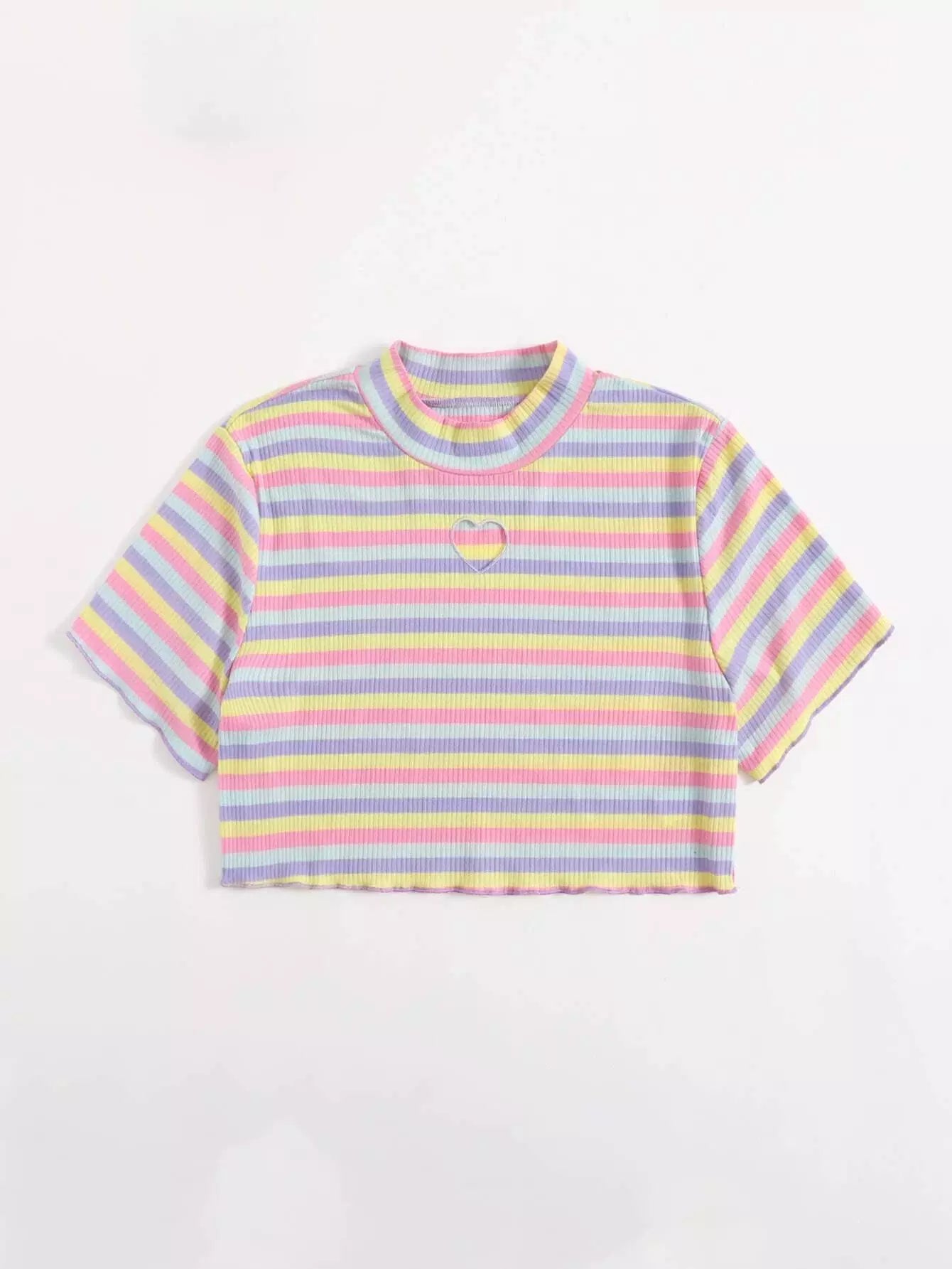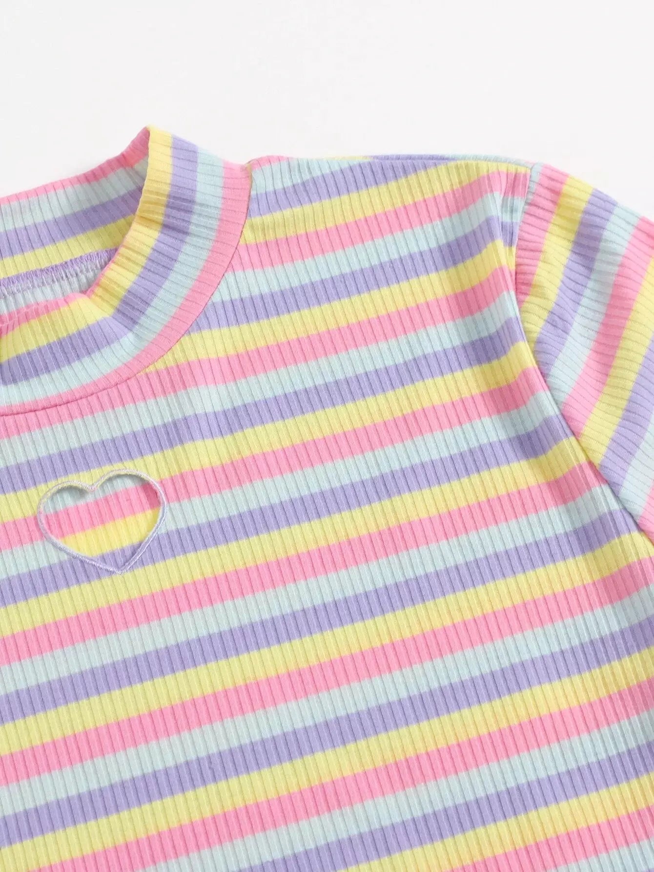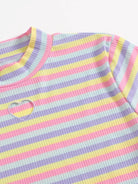 تي شيرت مخطط على شكل قلب مطرز بألوان قوس قزح زائد