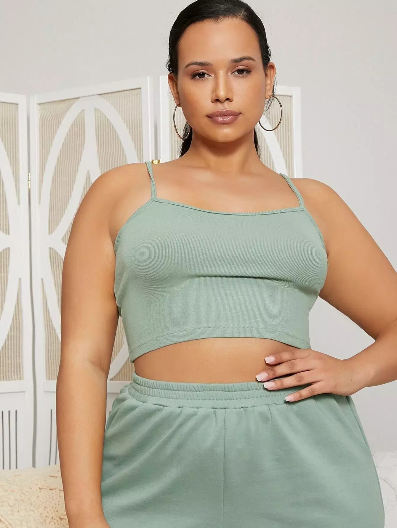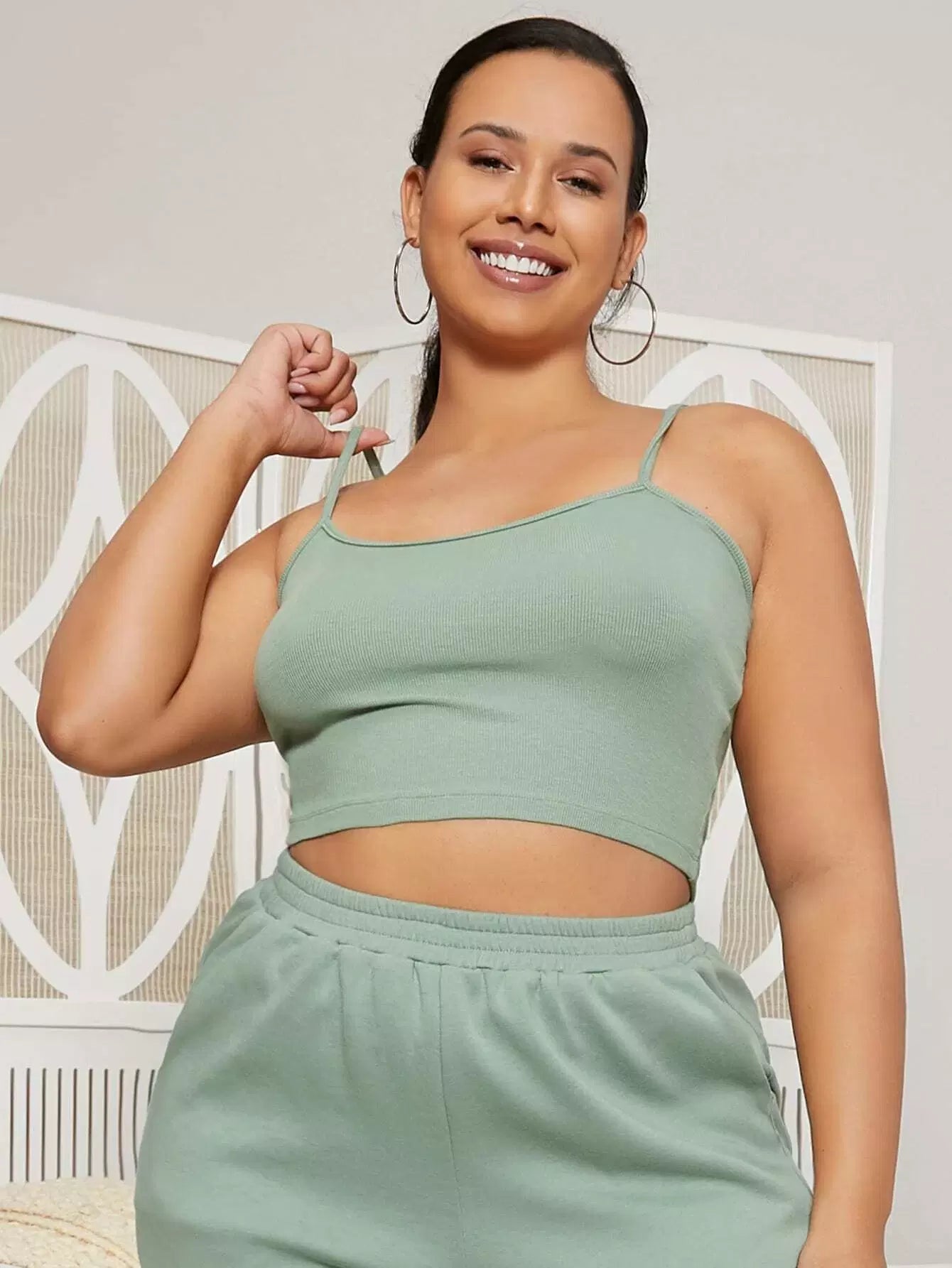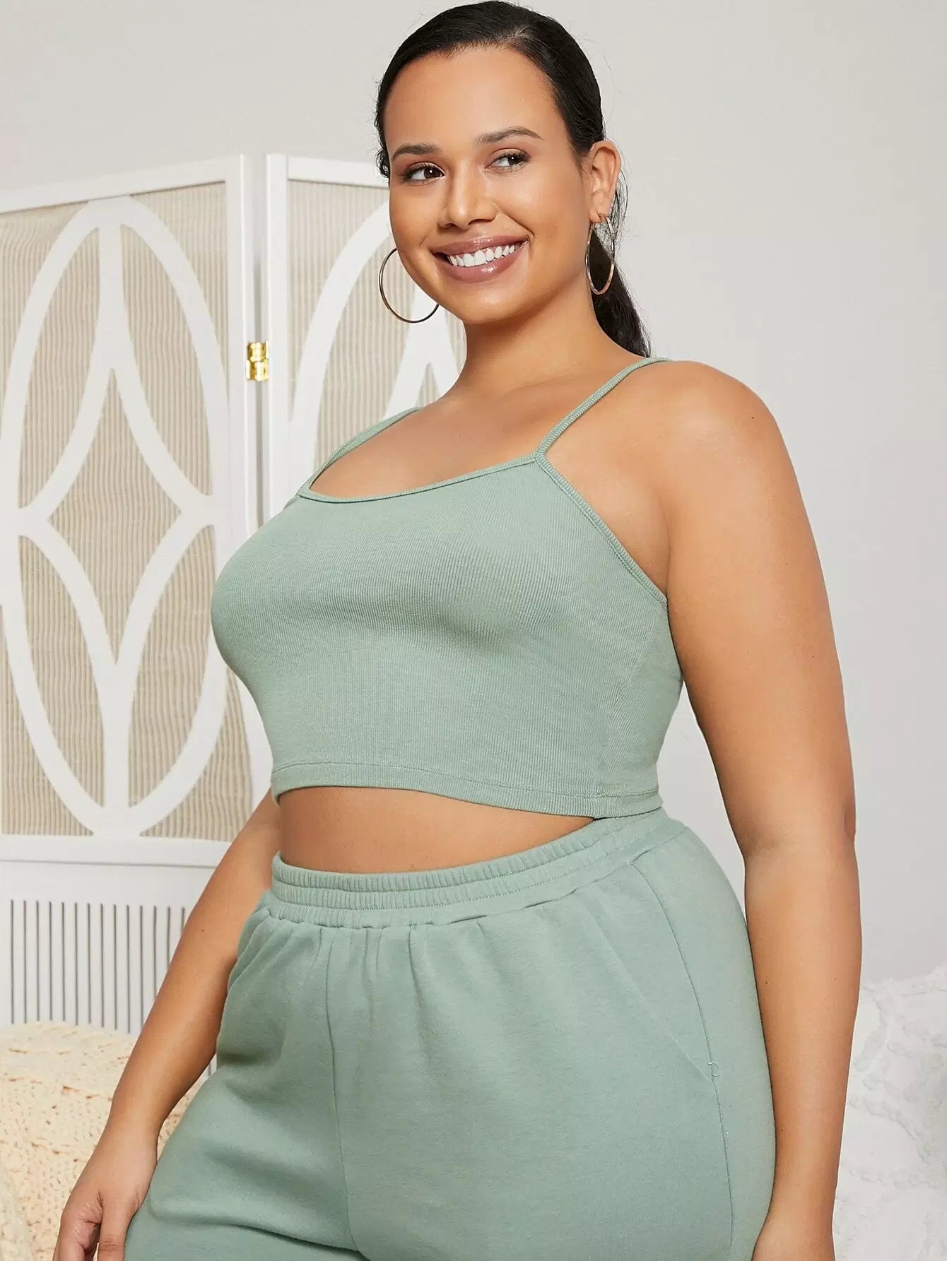 بلوزة قصيرة محبوكة على شكل ضلع محبوكة بلاس