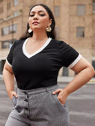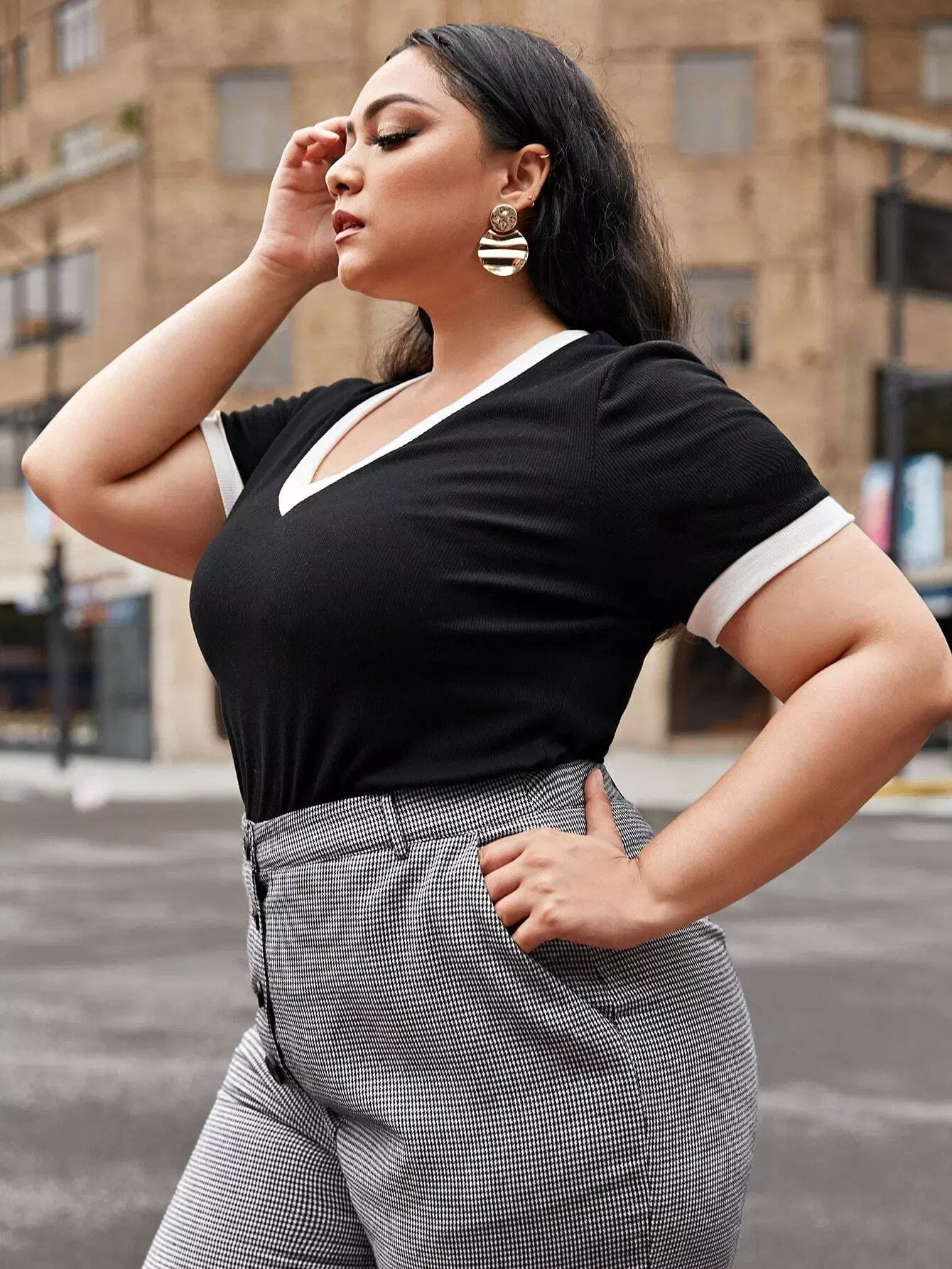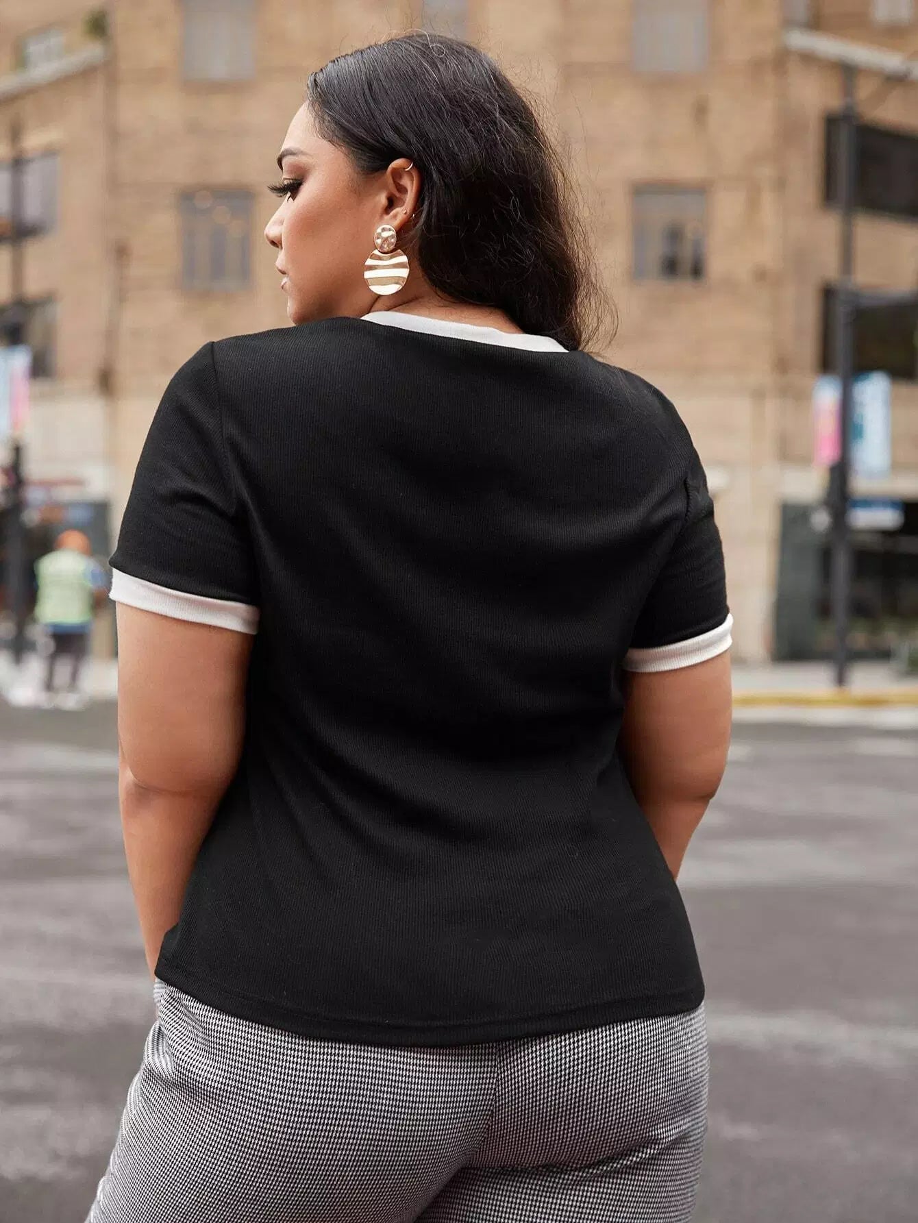 تي شيرت رينجر محبوك على شكل ضلع محبوك زائد