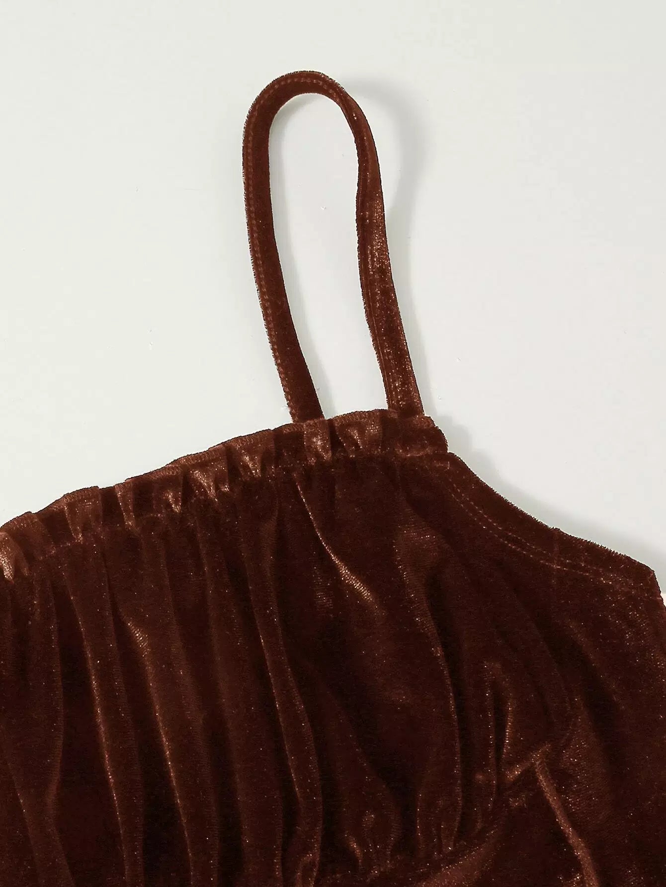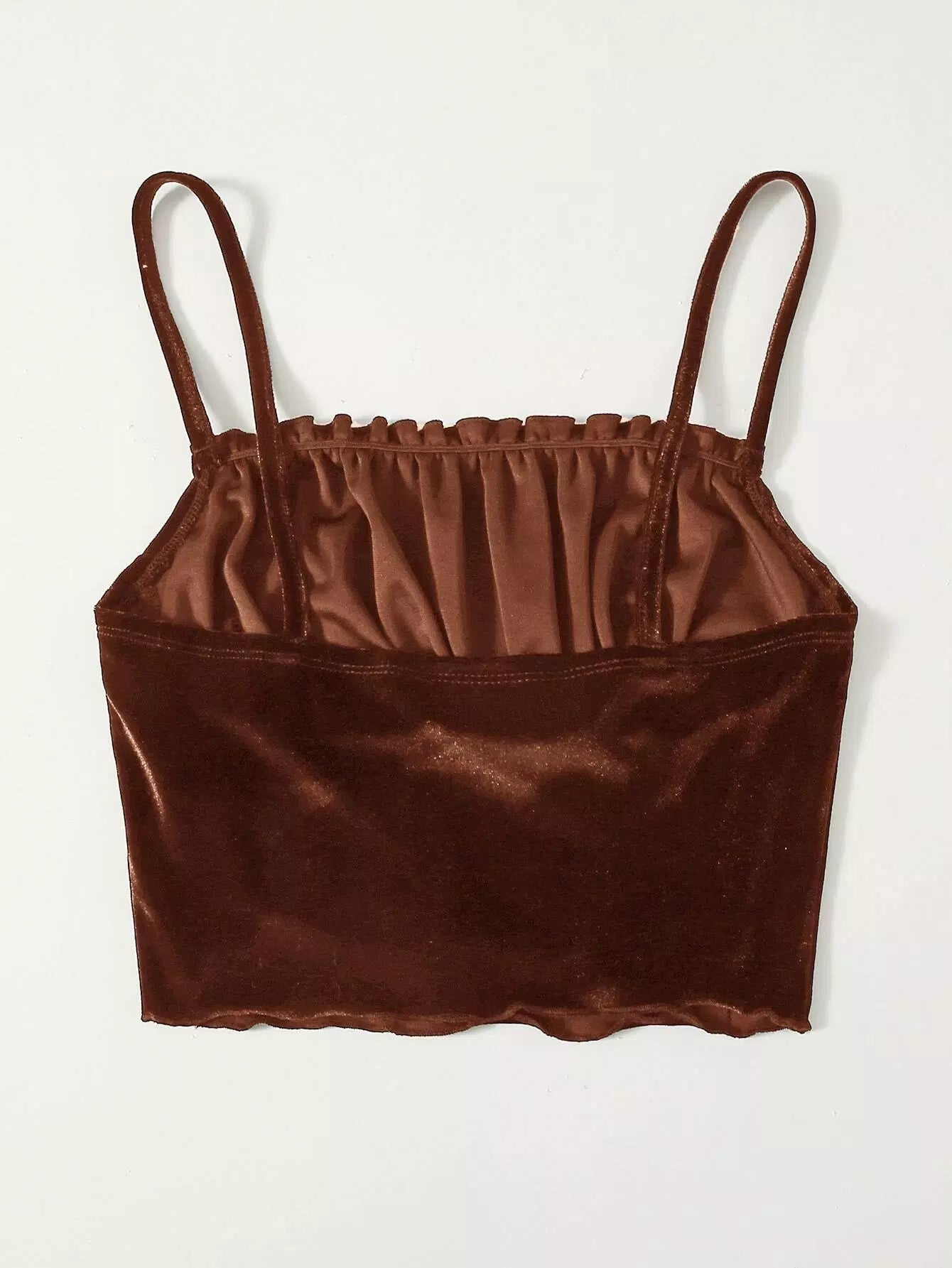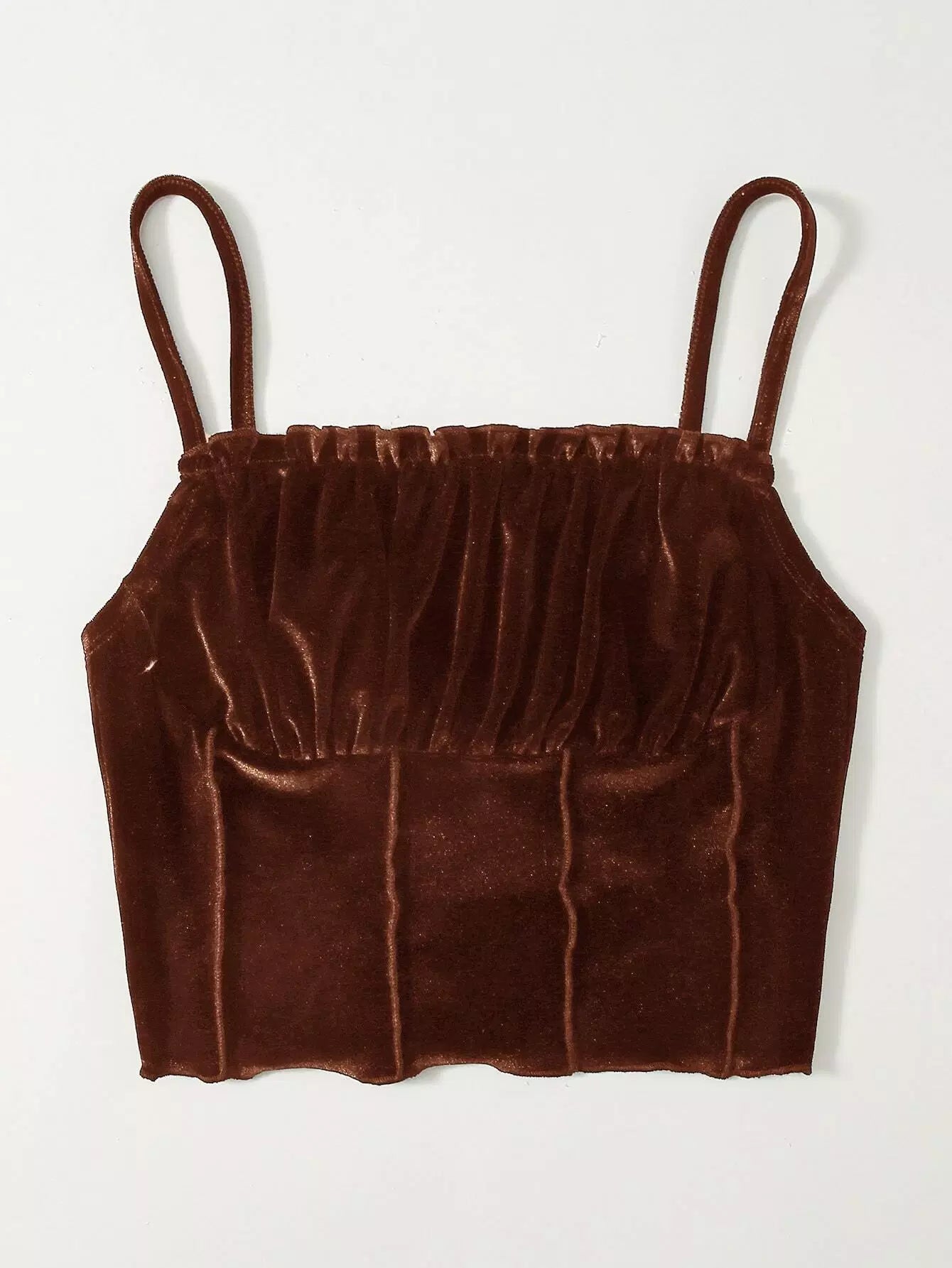 توب قصير قصير مخملي قصير مخملي مكشكش على الصدر زائد