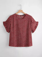 بلوزة زائد كشكش بأكمام مكشكشة مزينة بالورود