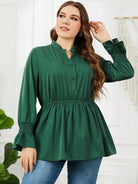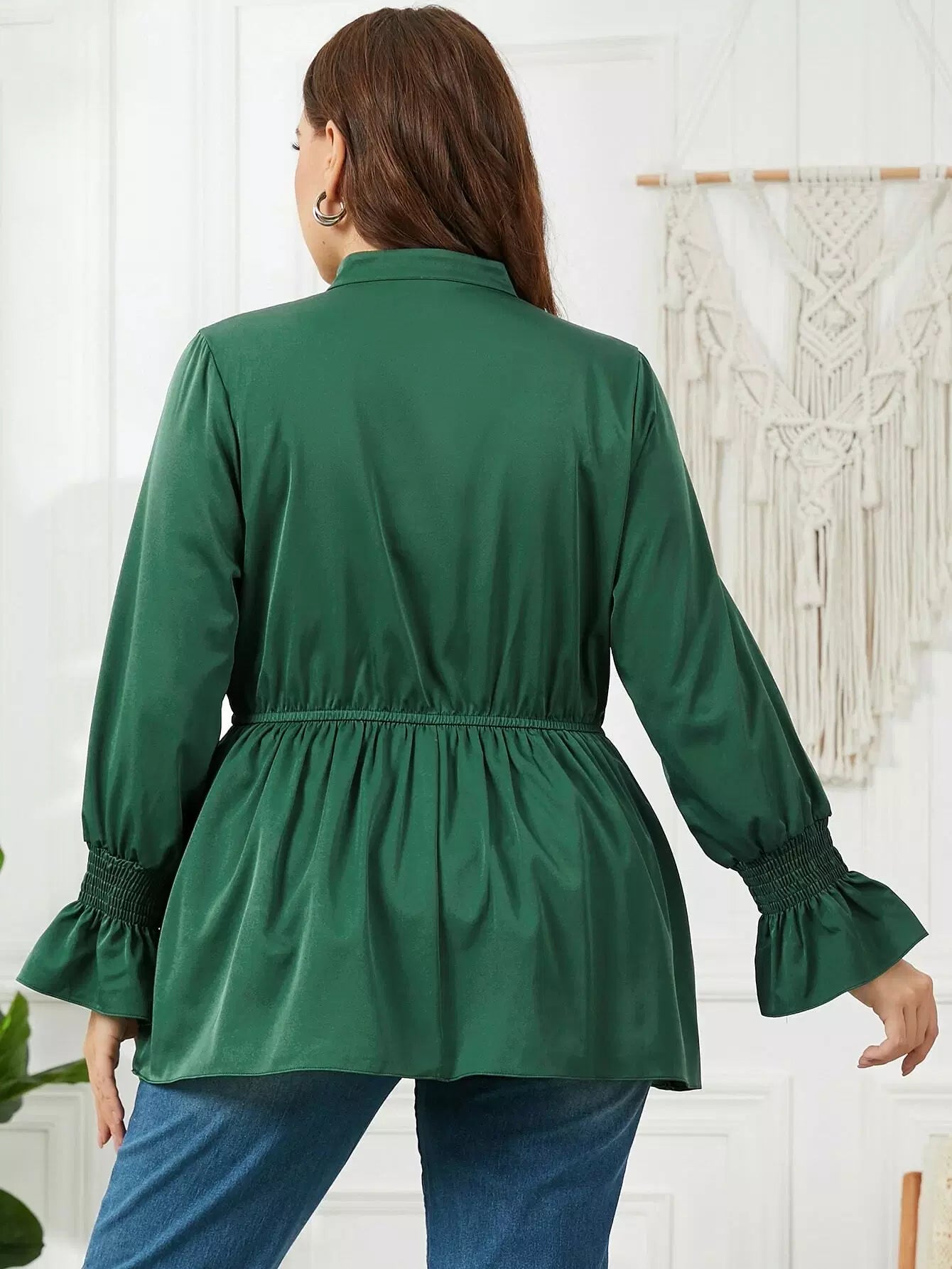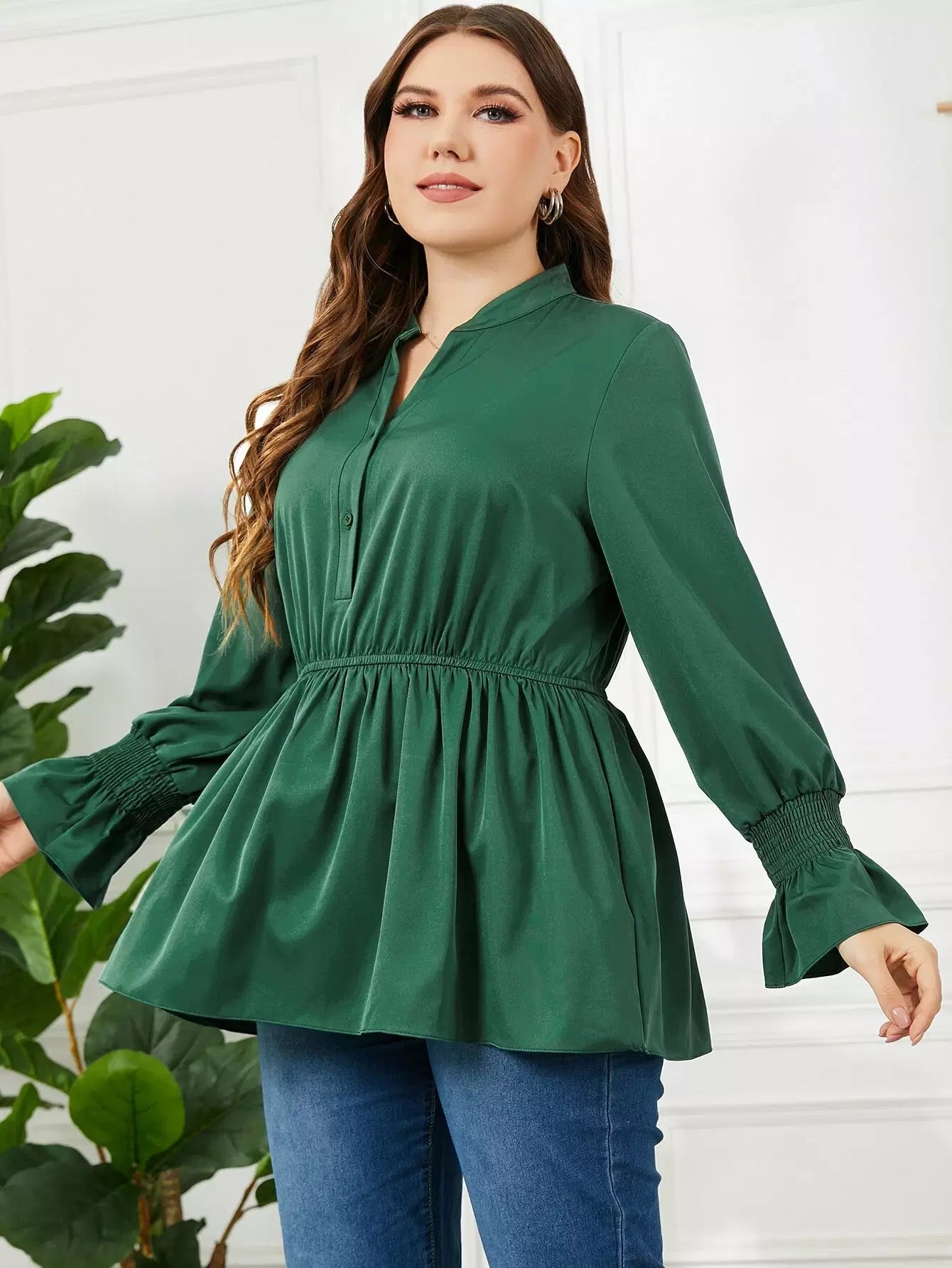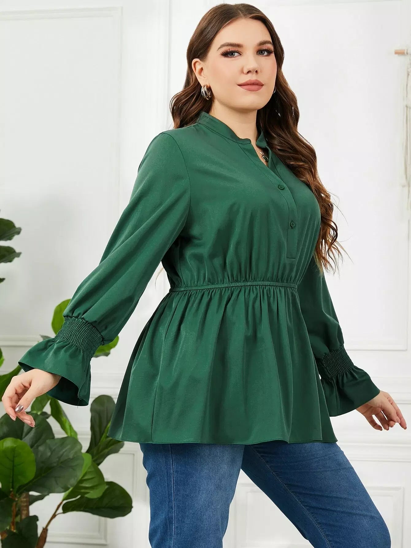 بلوزة بدون أكمام بنصف زر بأكمام منفوشة بنصف أزرار
