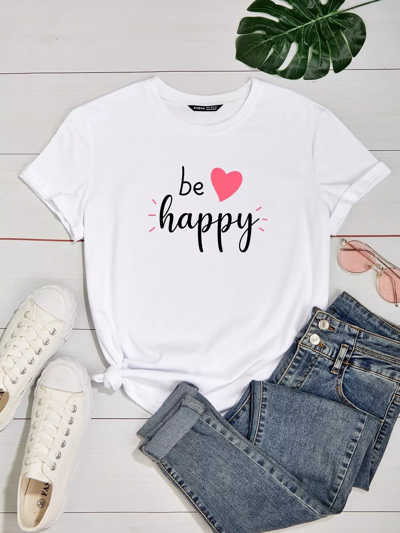 تي شيرت مطبوع عليه شعار وقلب زائد