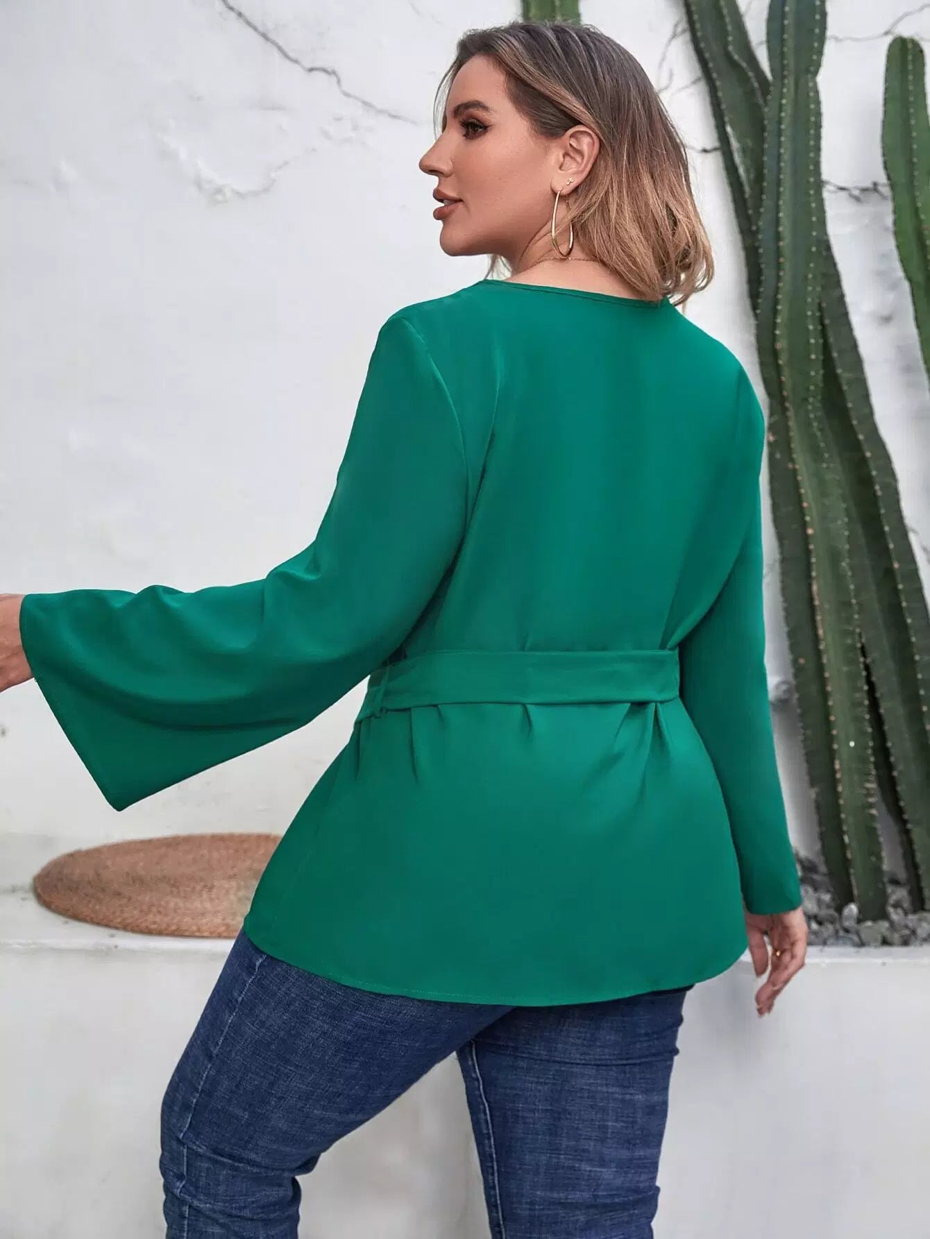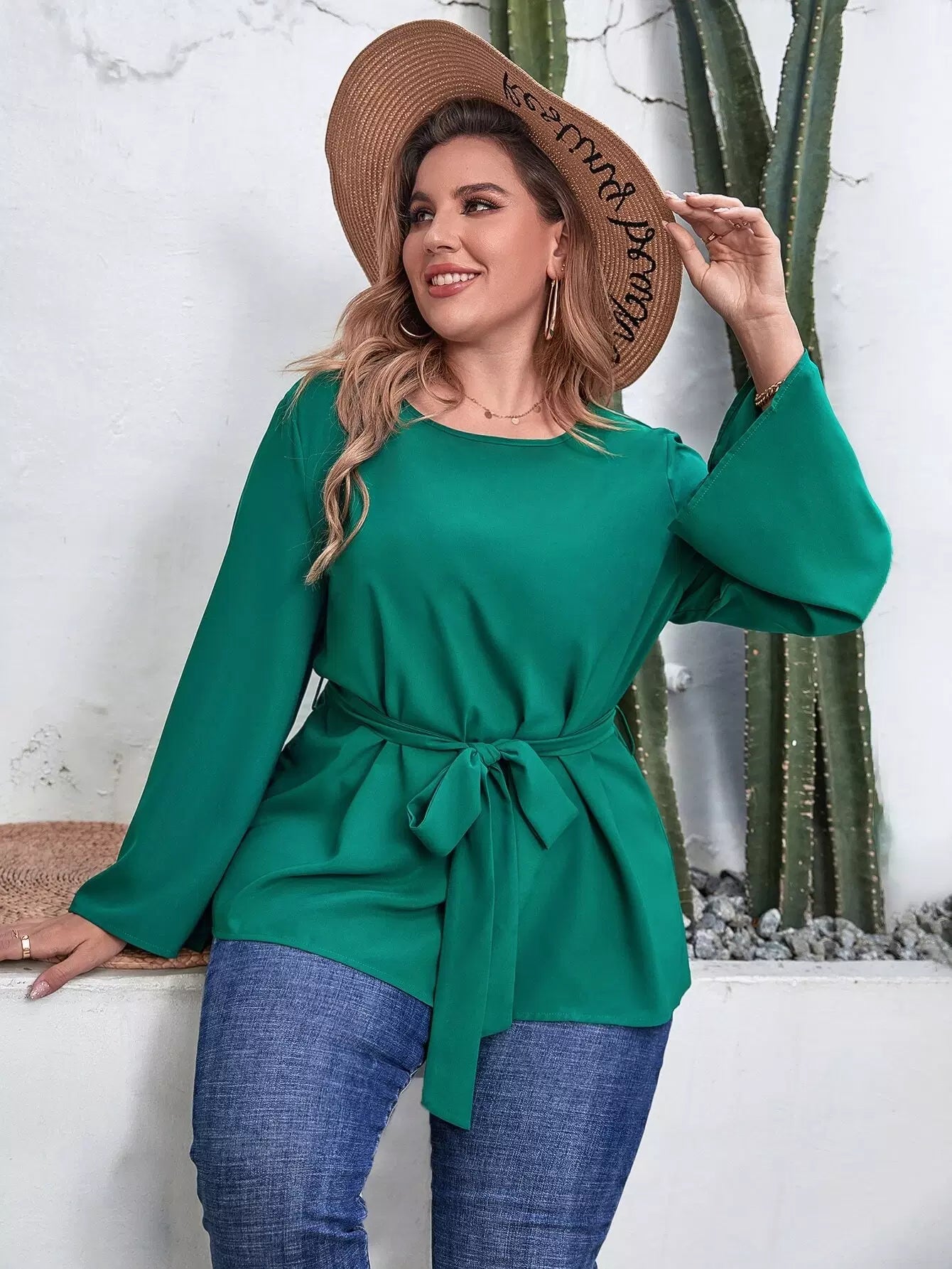 بالإضافة إلى بلوزة صلبة بدون حزام