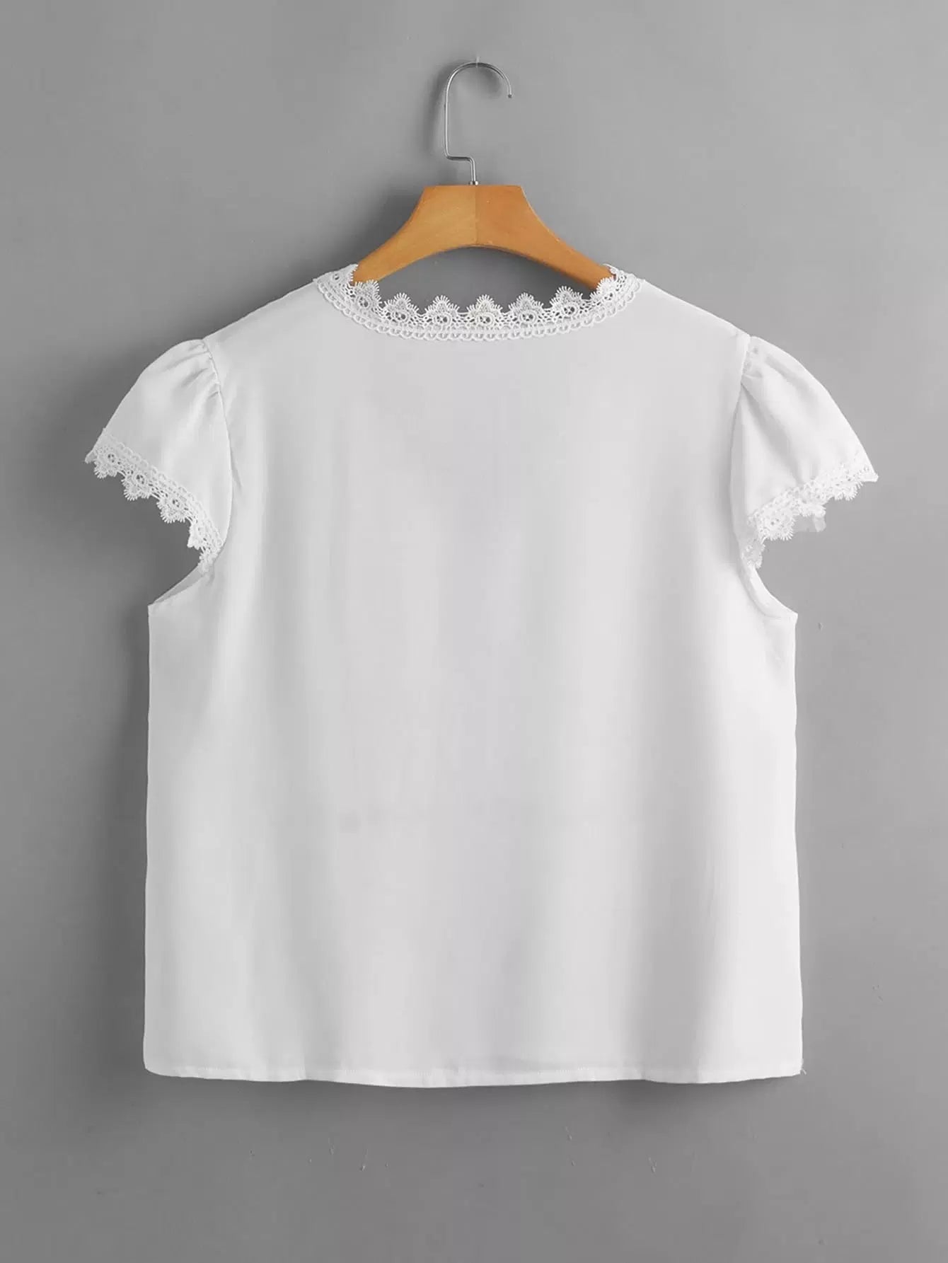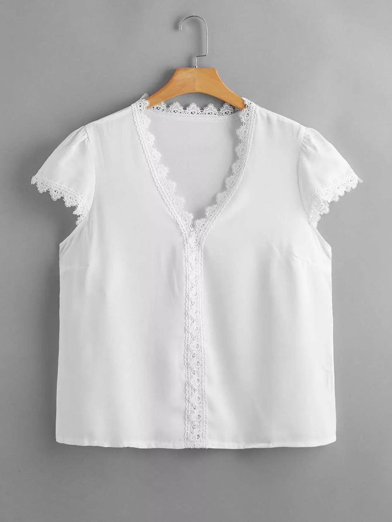 بلوزة دانتيل دانتيل سادة بلون مغاير بلون مغاير