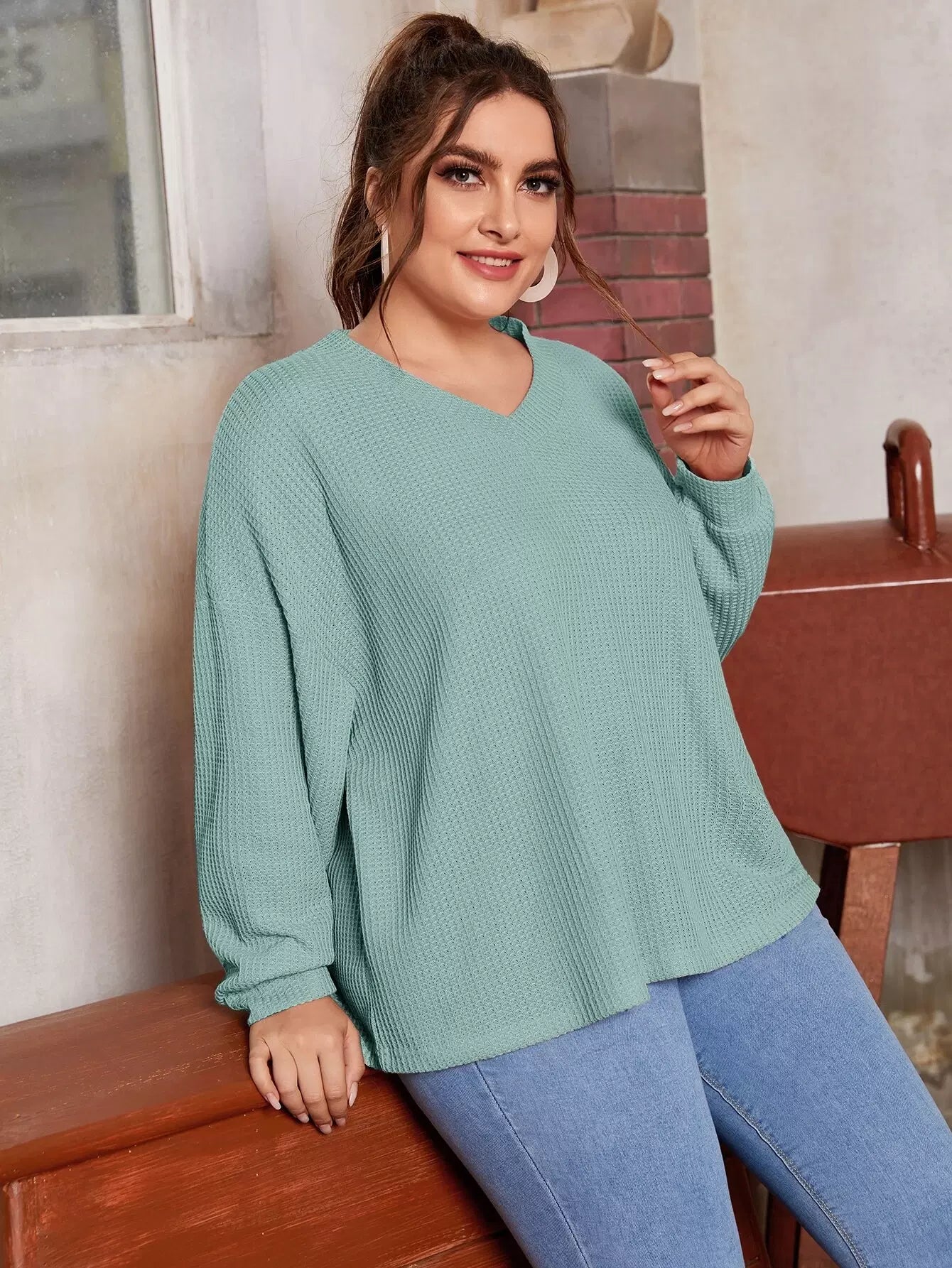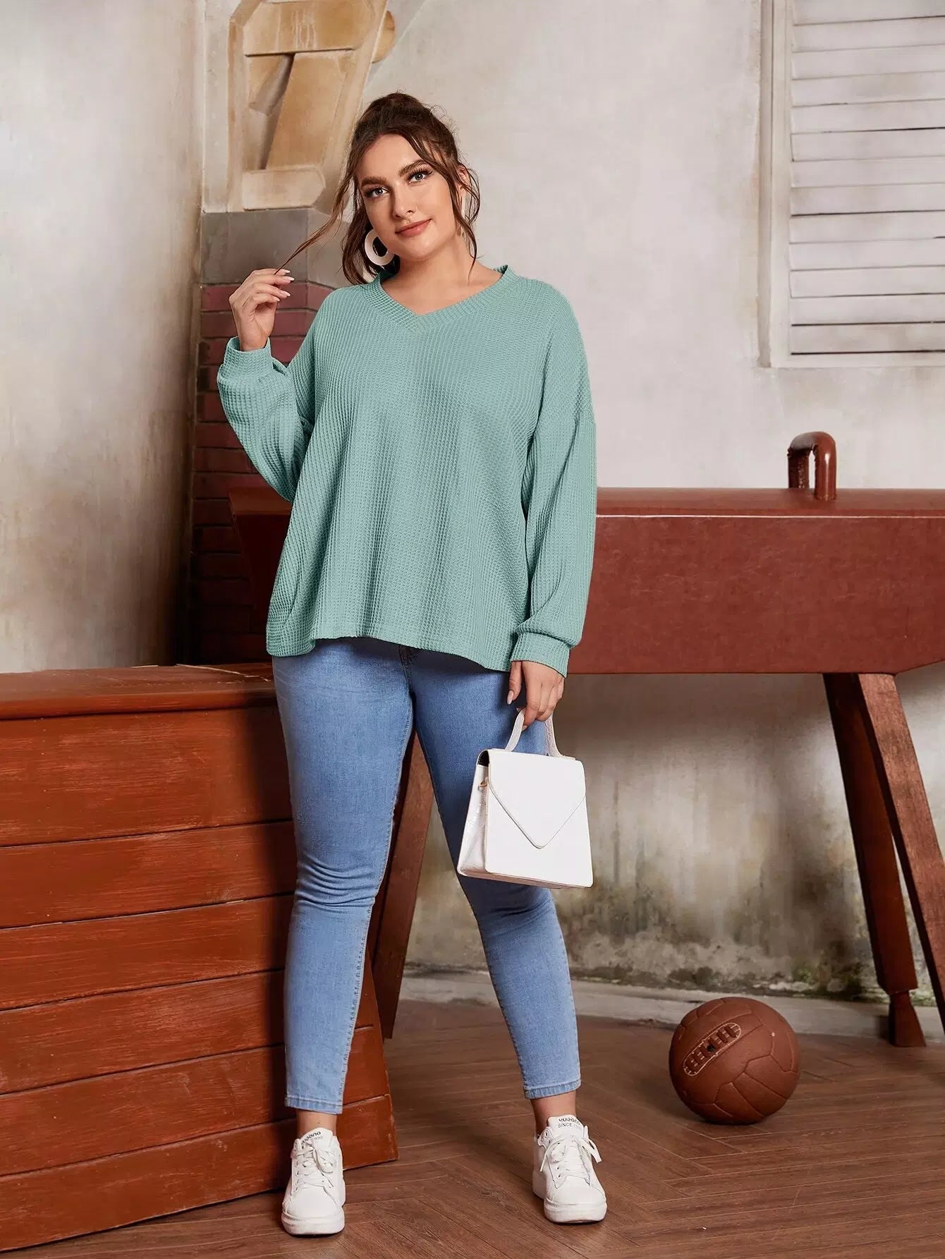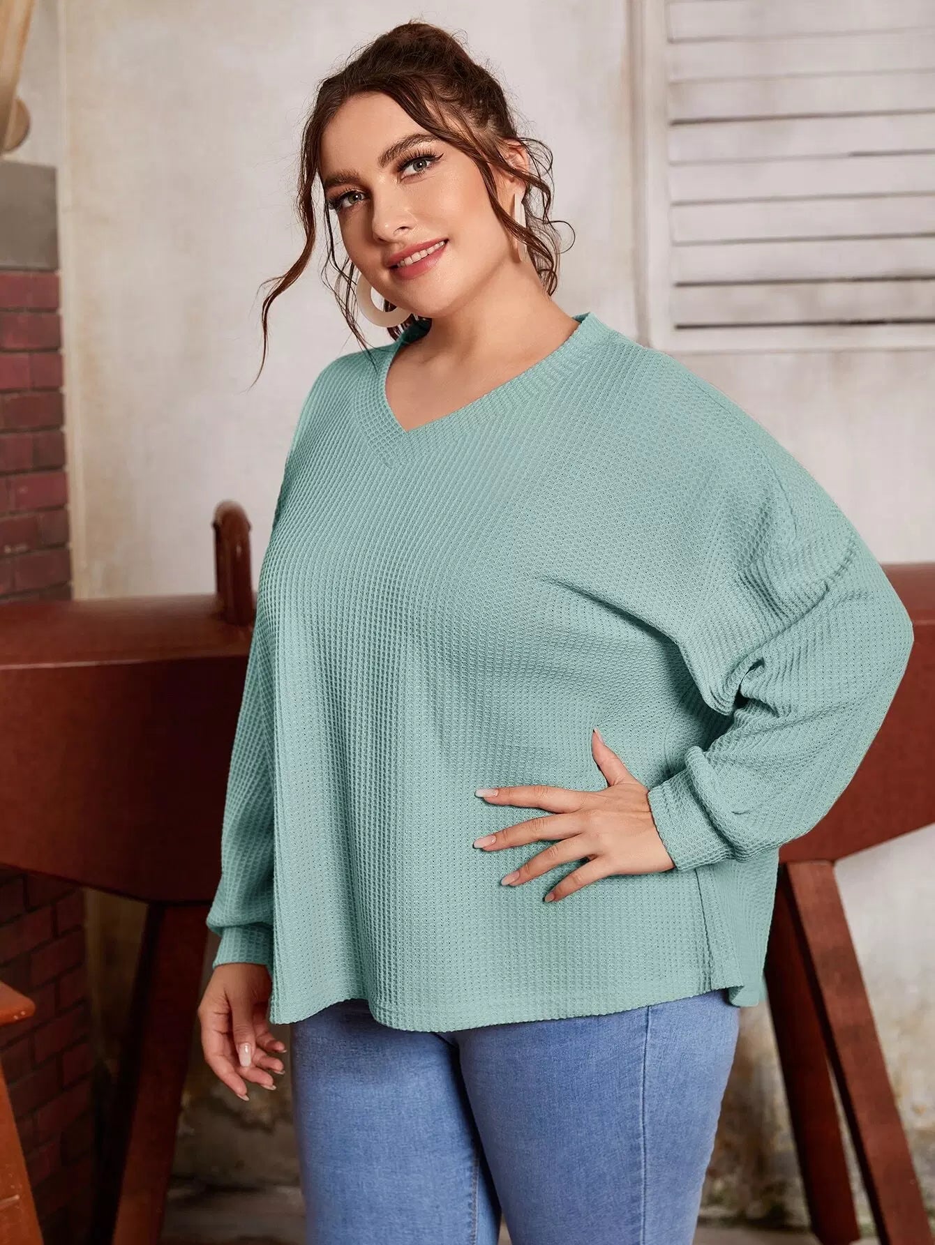 تي شيرت سادة منسدل الأكتاف متماسك منسدل بلاس