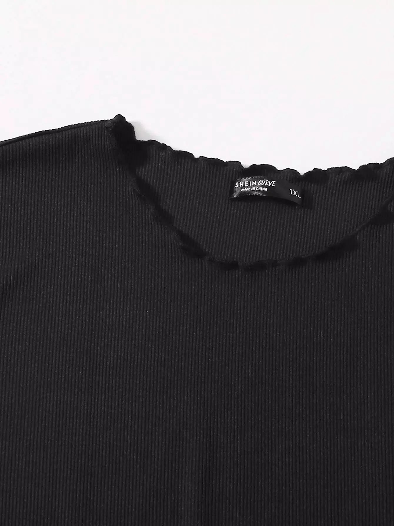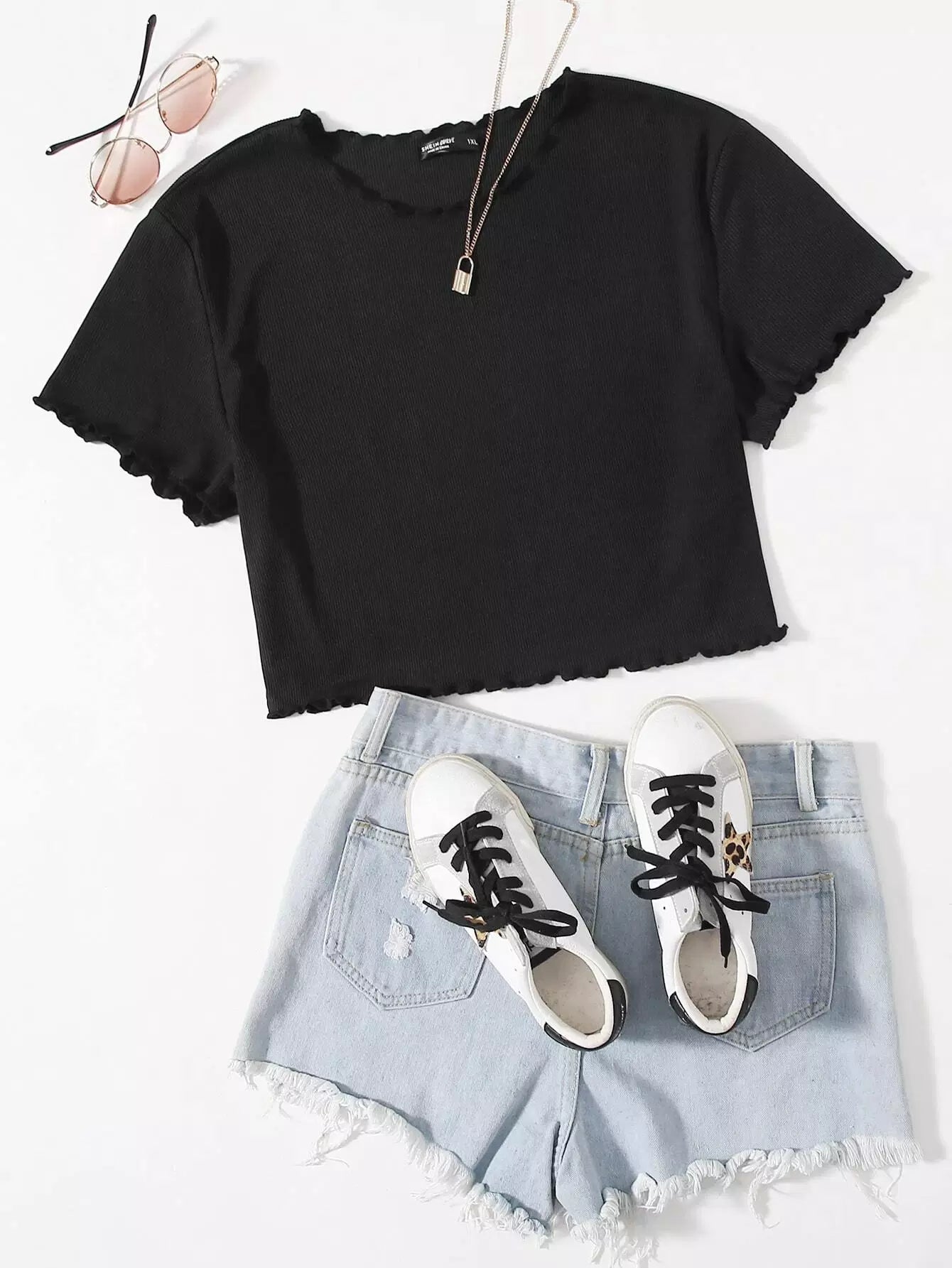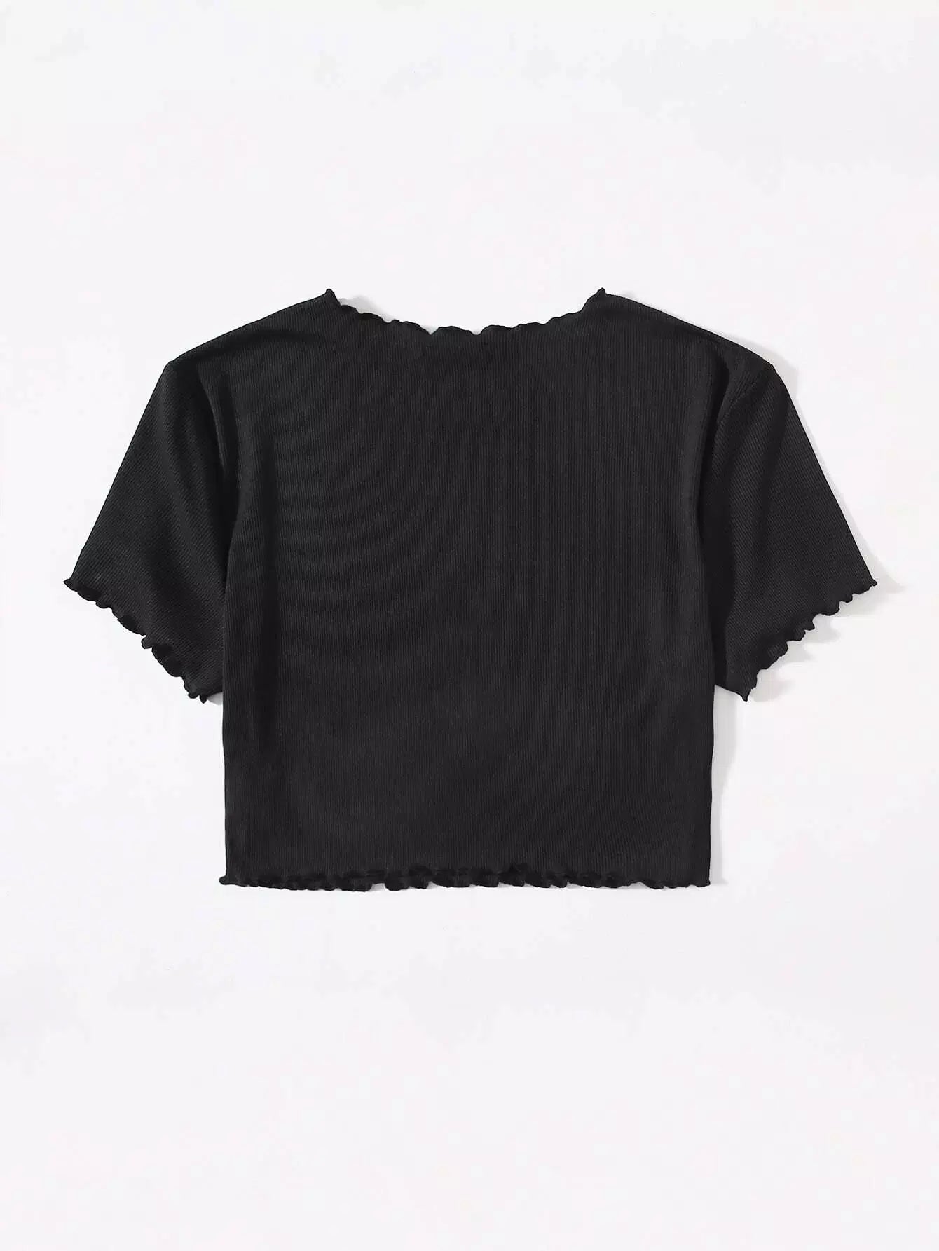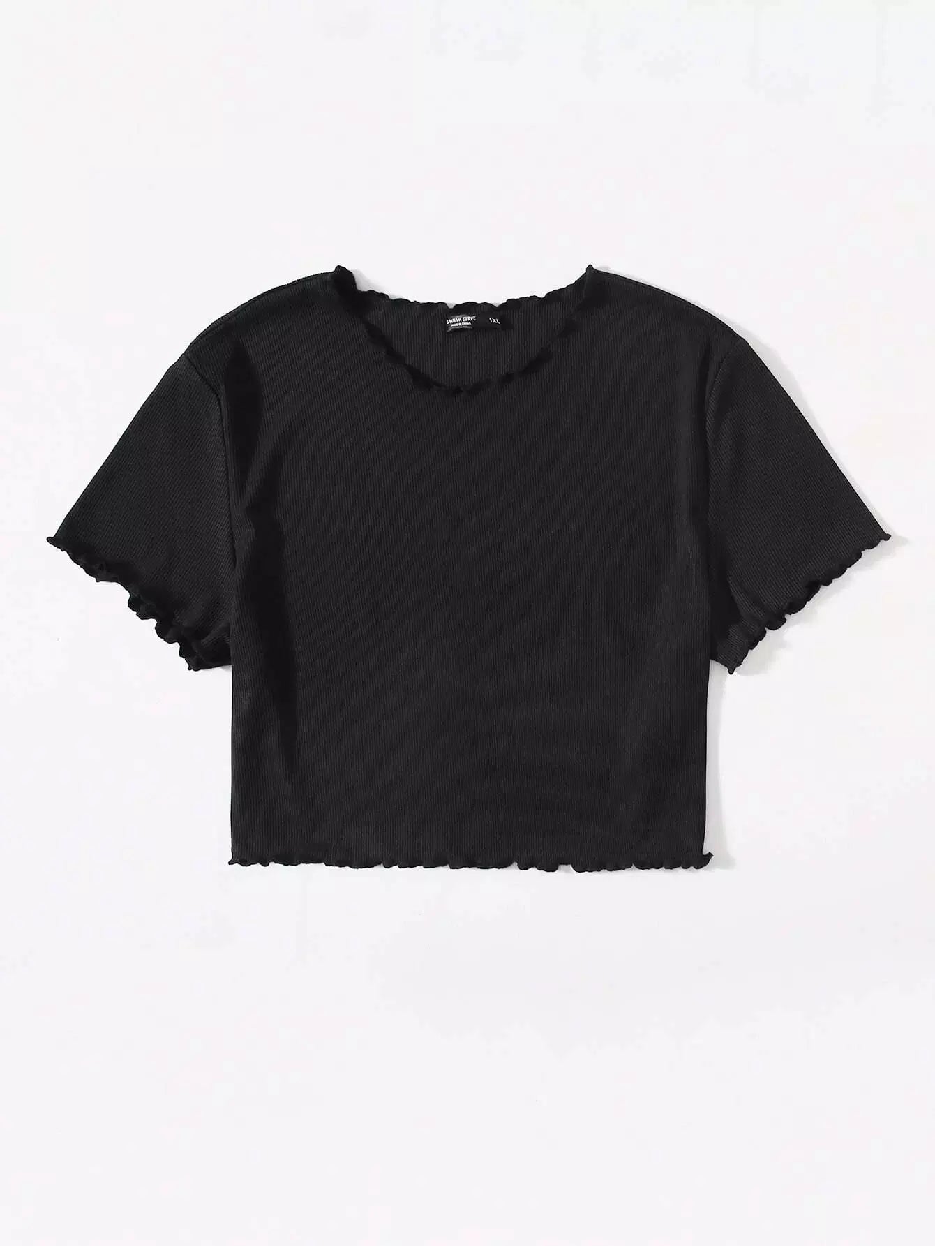 تي شيرت قصير بحافة خس سادة بلاس سادة