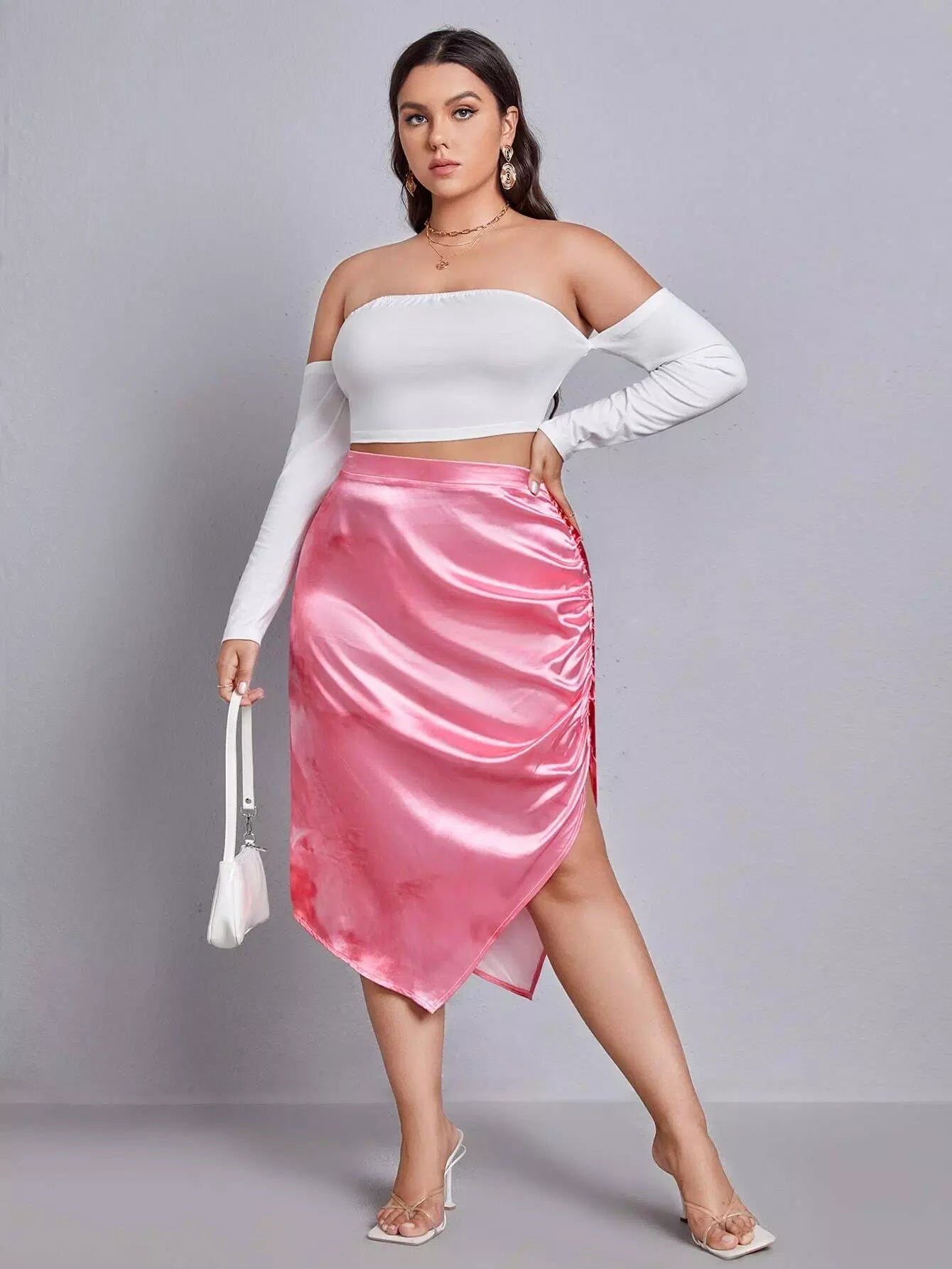 بلوزة قصيرة بدون أكتاف بلس سادة بدون أكتاف