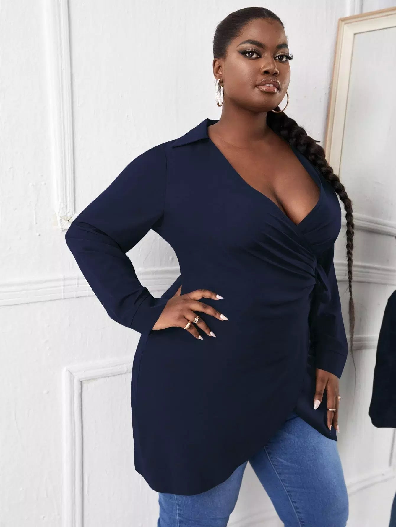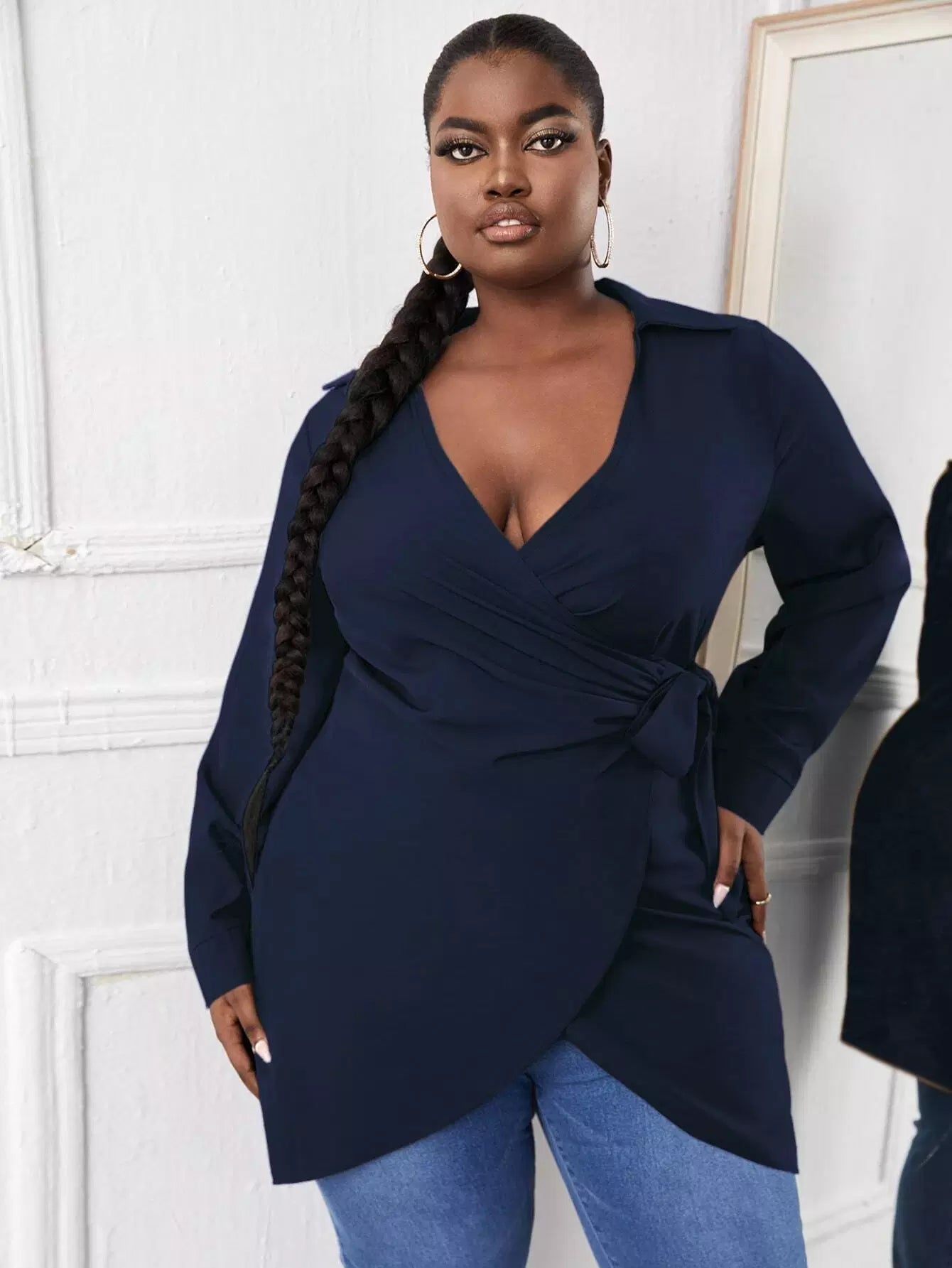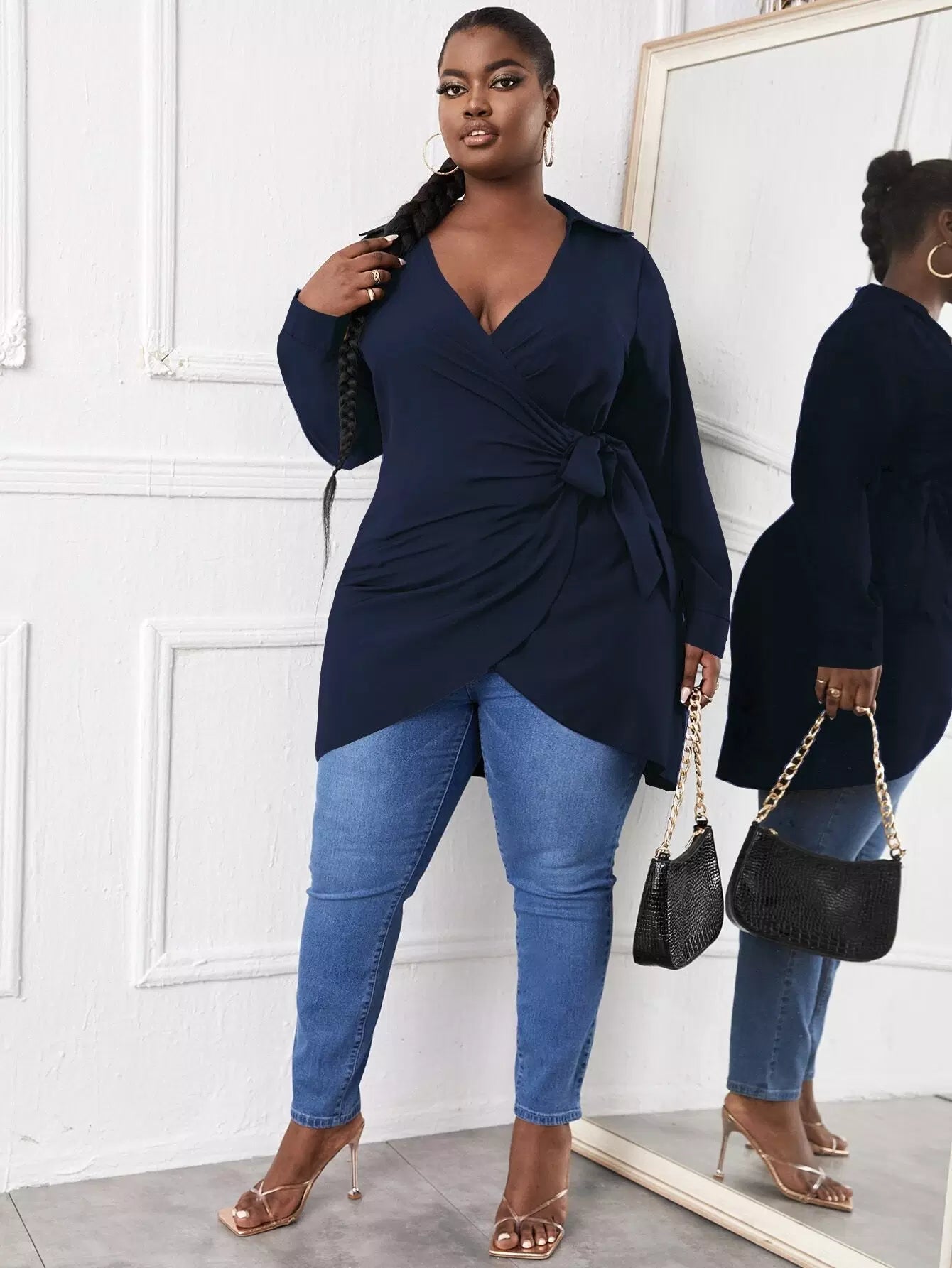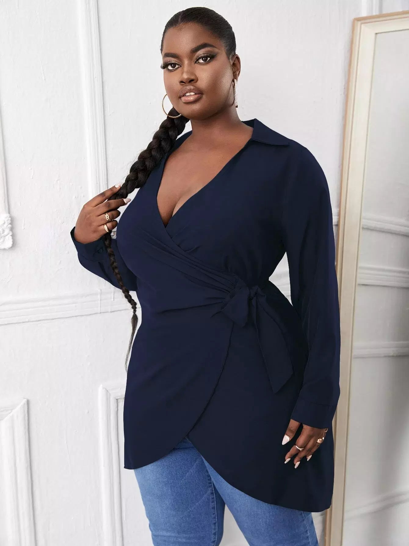 بلوزة بلاس سادة ملفوفة بربطة جانبية سادة