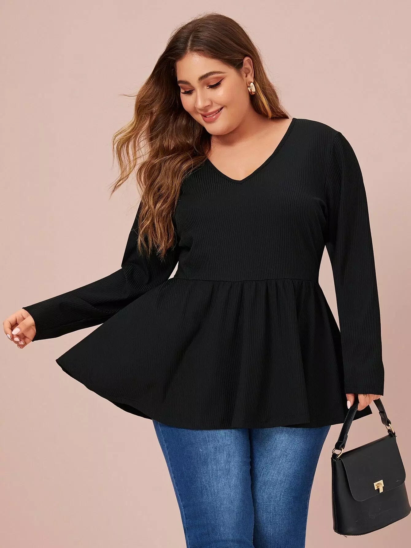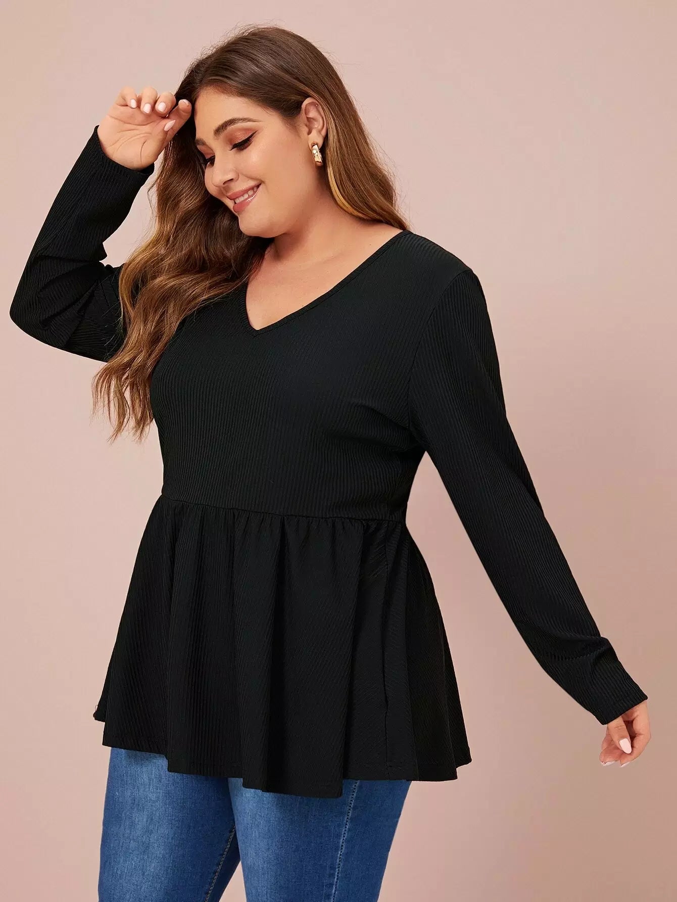 تي شيرت بياقة على شكل V برقبة على شكل حرف V سادة