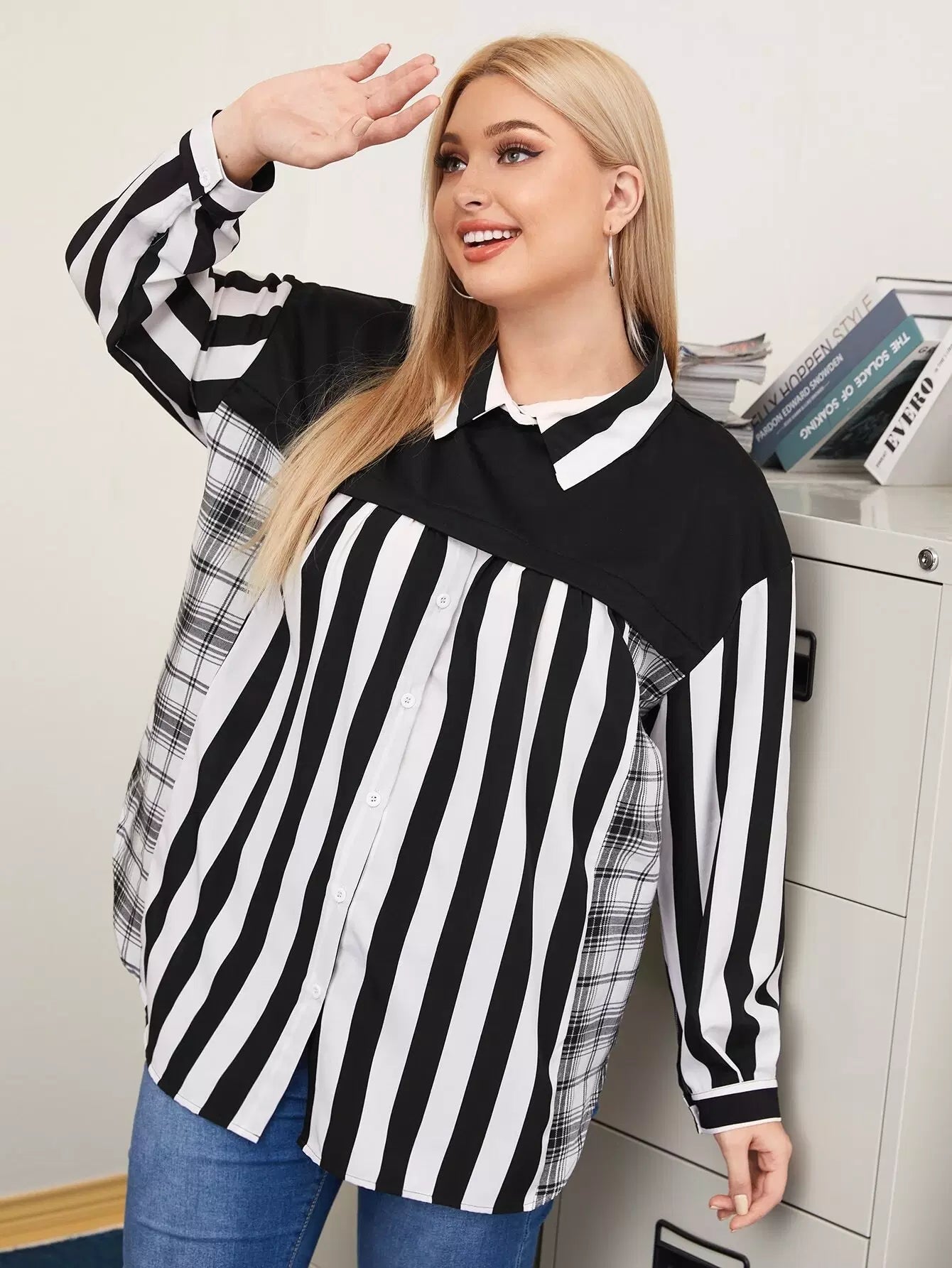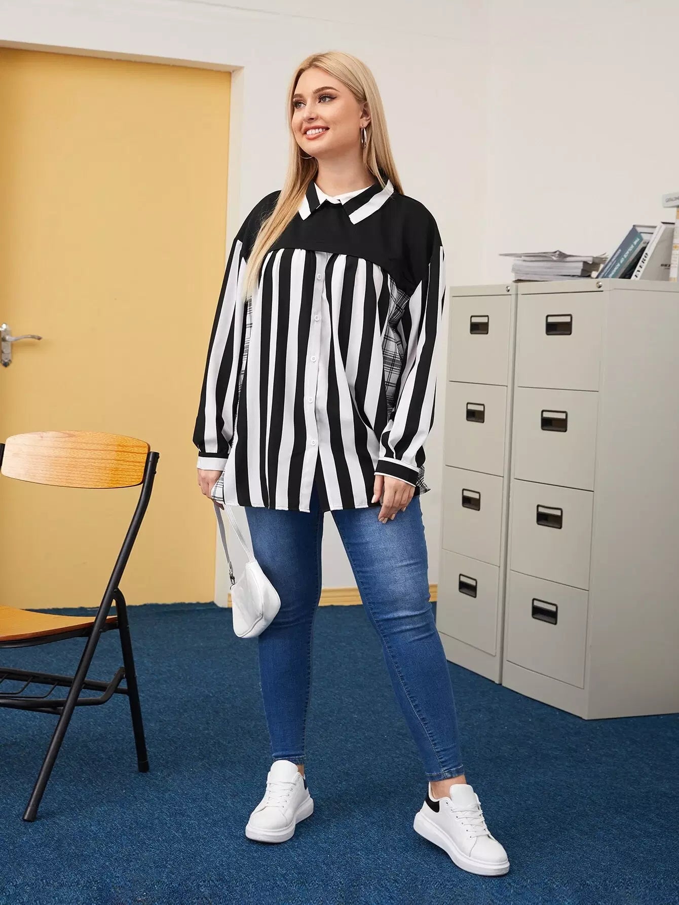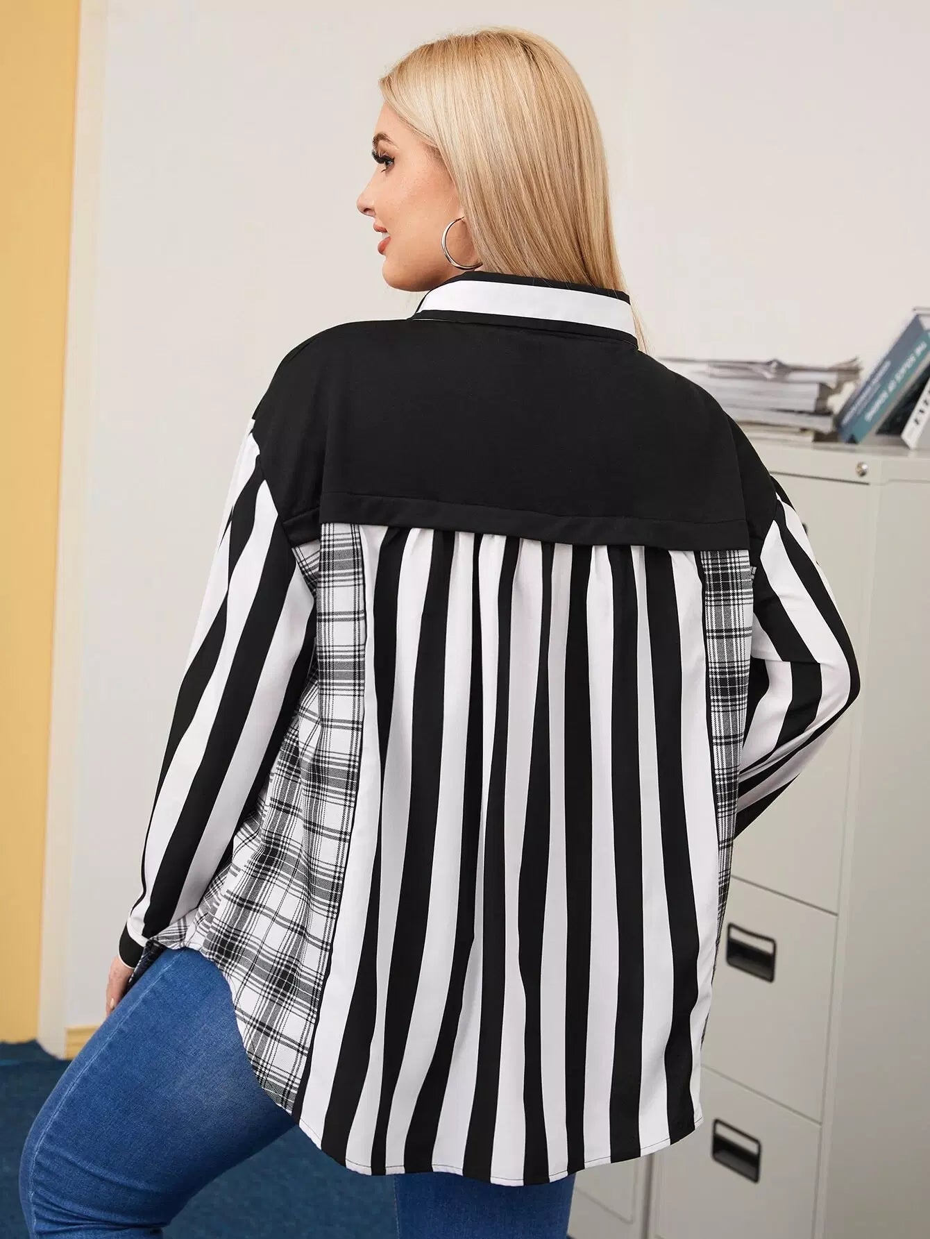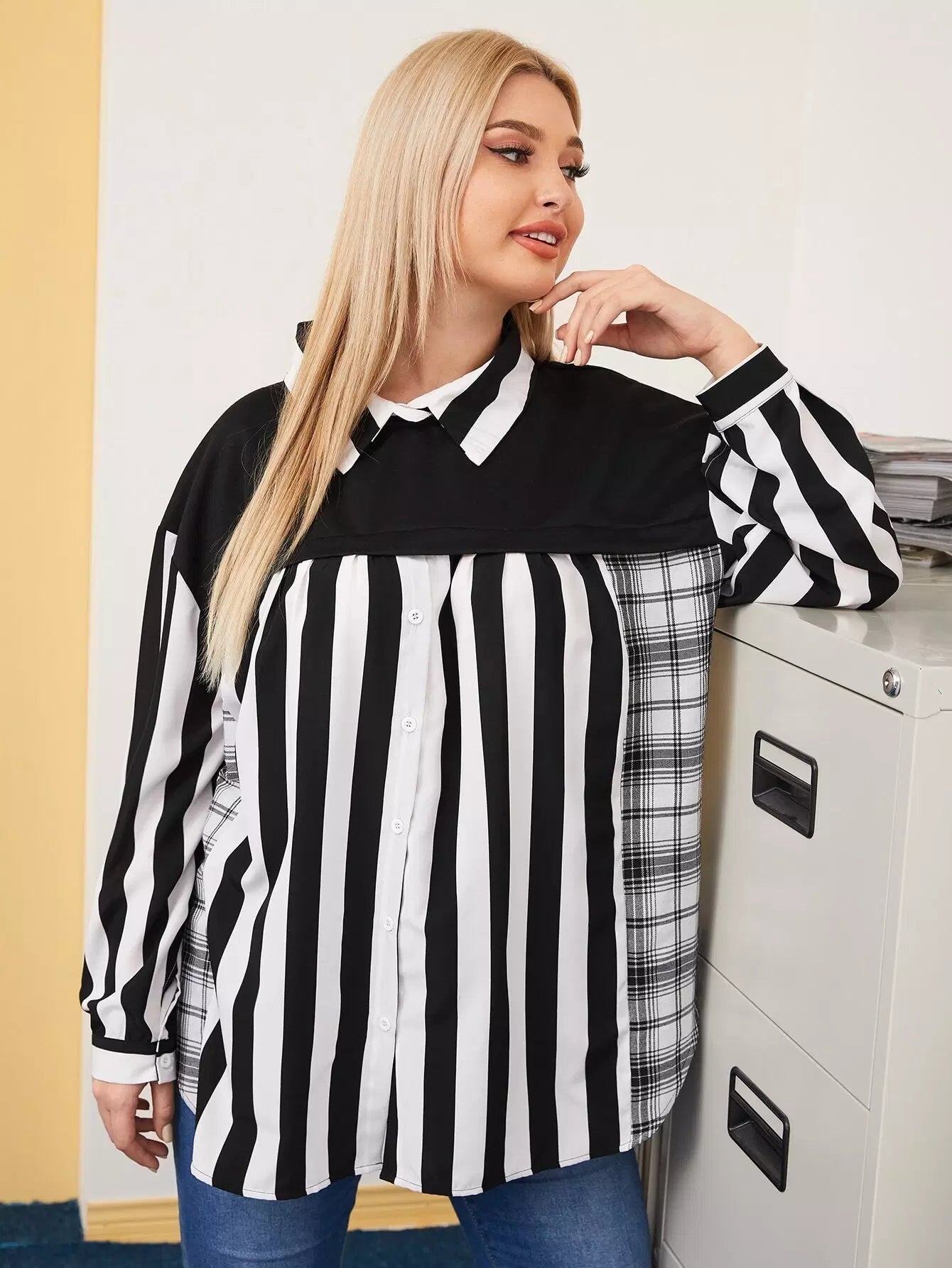 بلوزة بأزرار مخططة ومنقوشة بأزرار فوق بعضها البعض