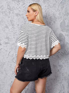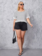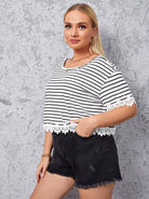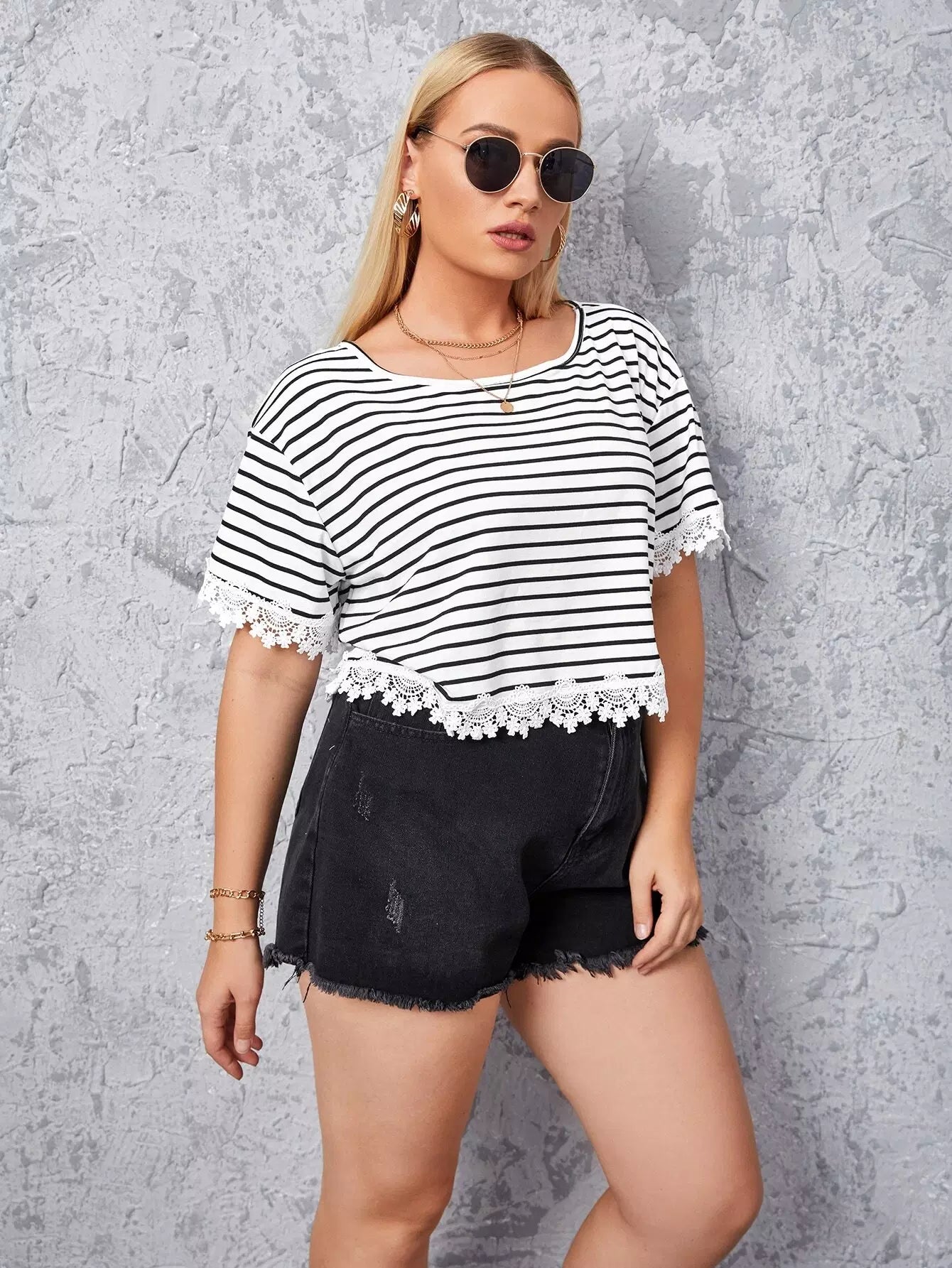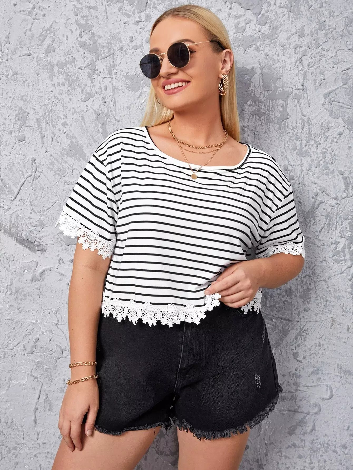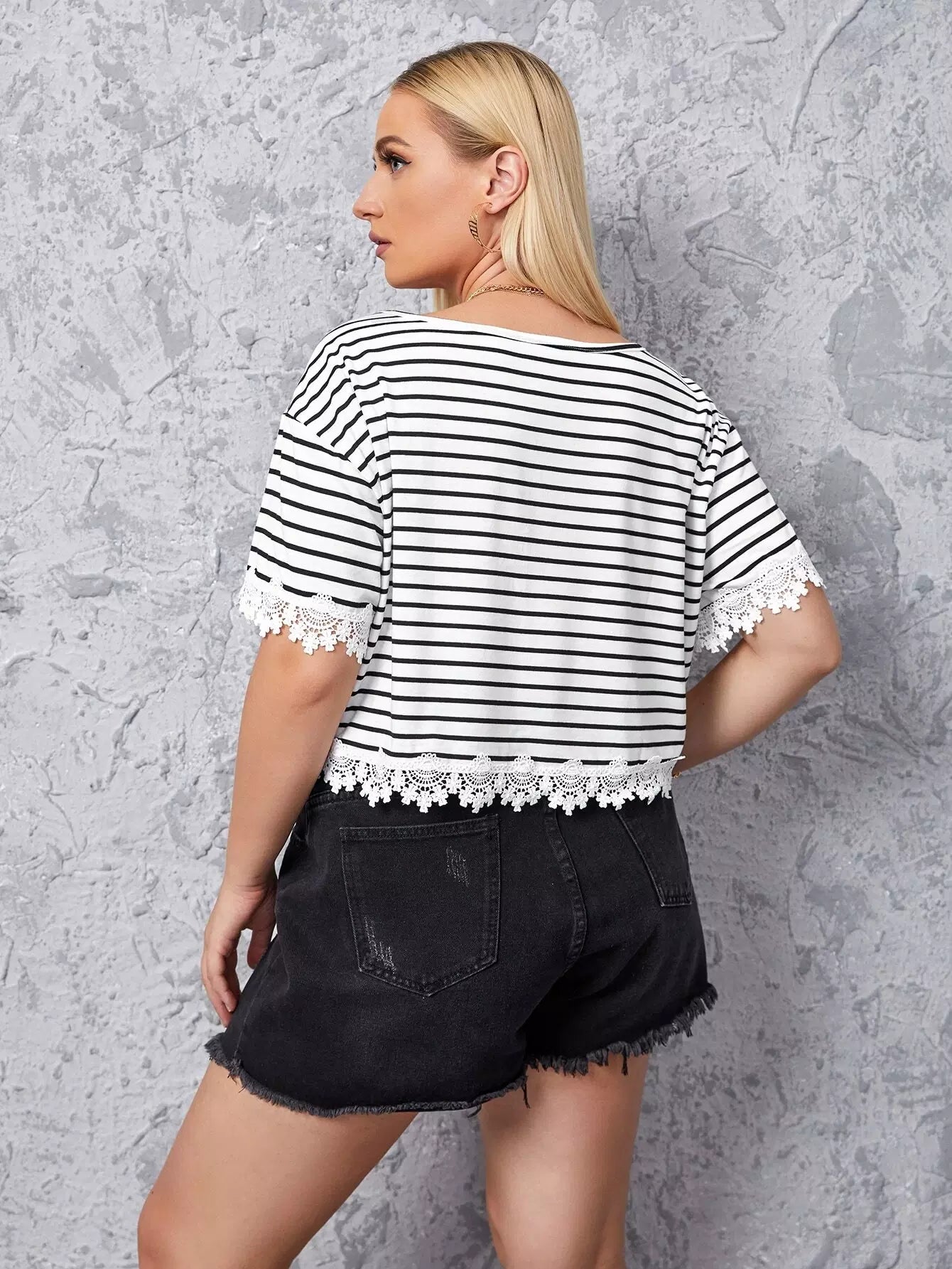 تي شيرت دانتيل مخطط بلون مغاير زائد