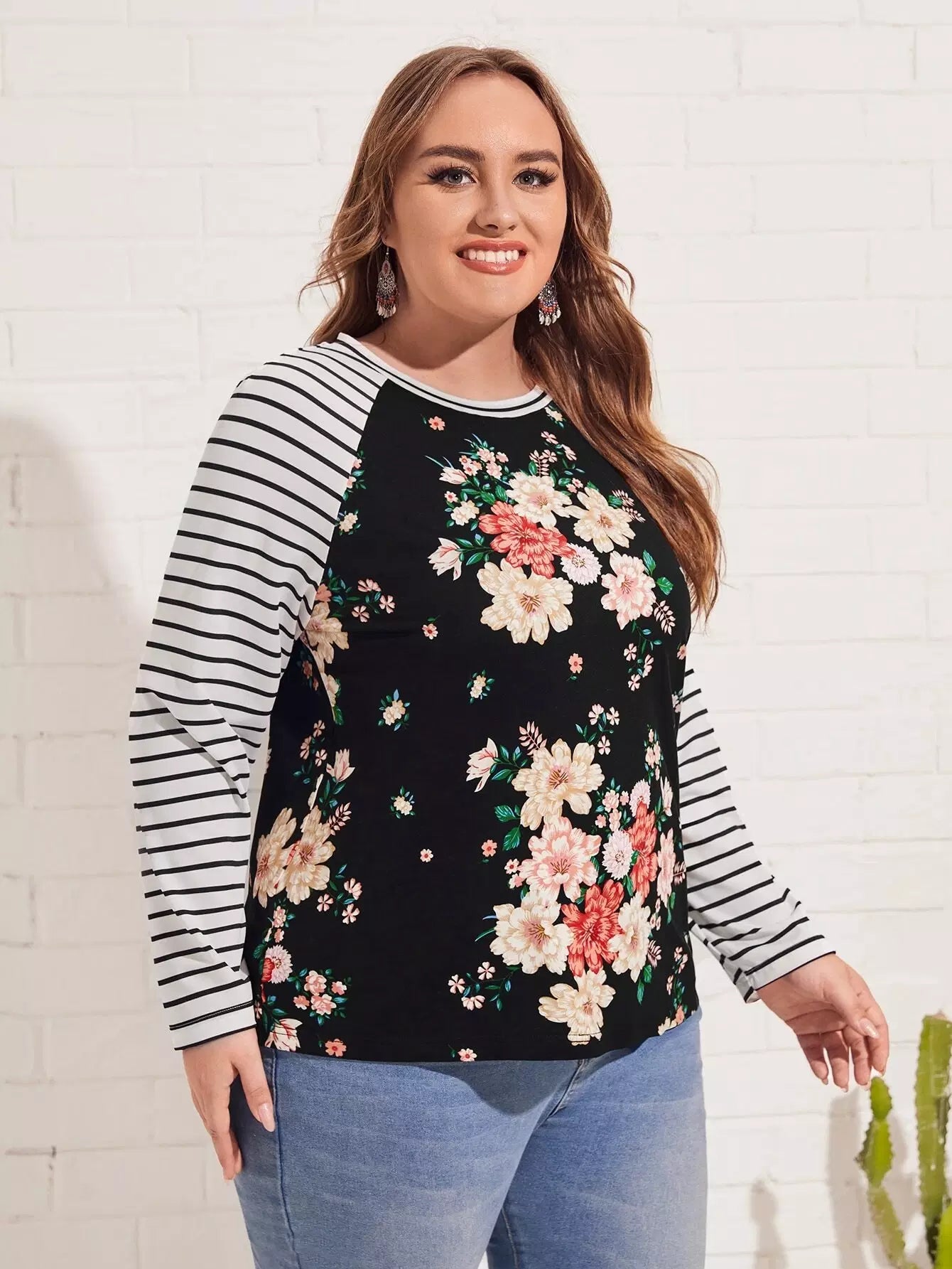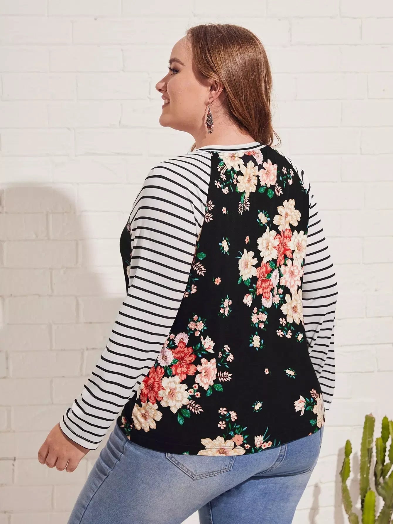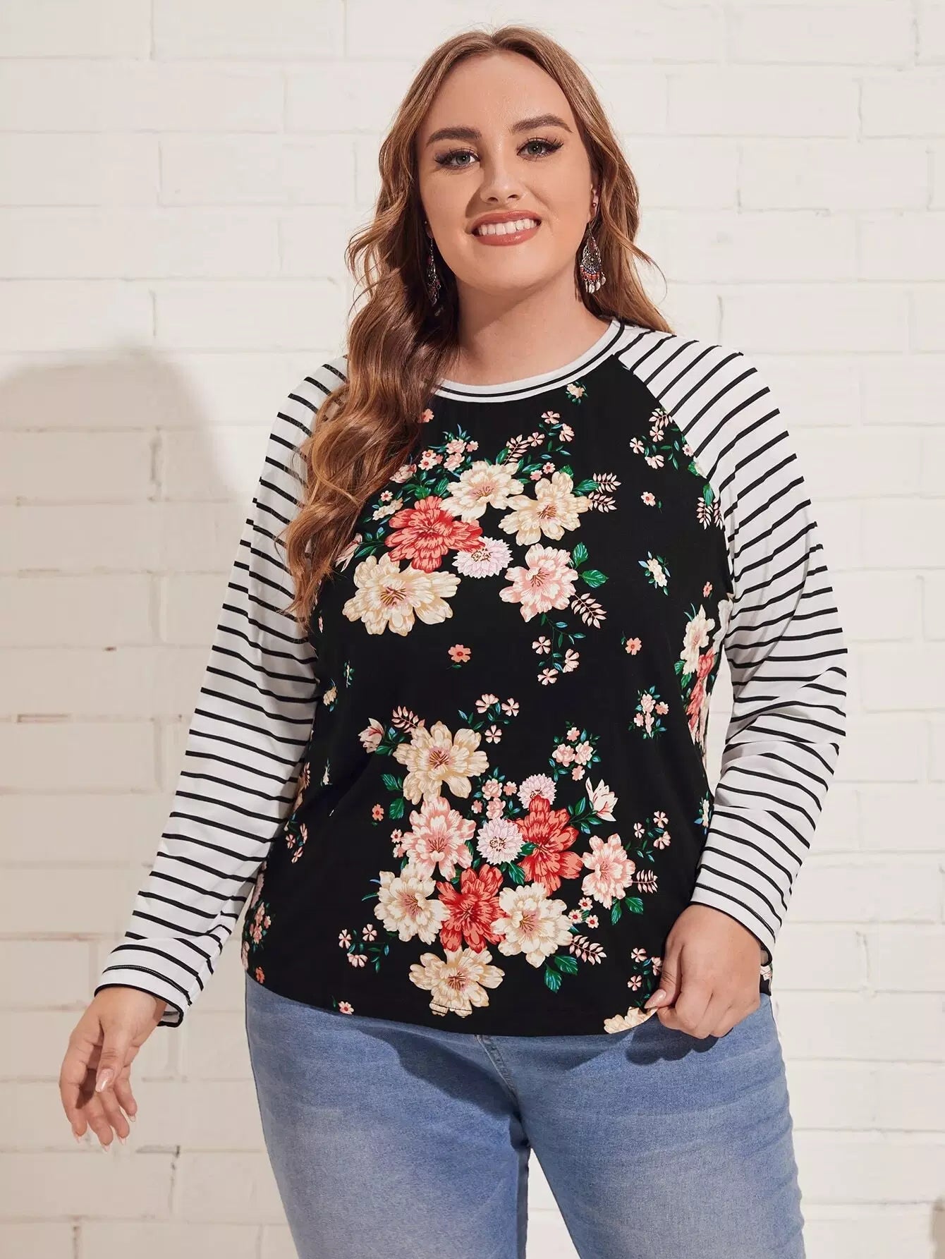 بلوزة مخططة ومزينة بطبعات زهور