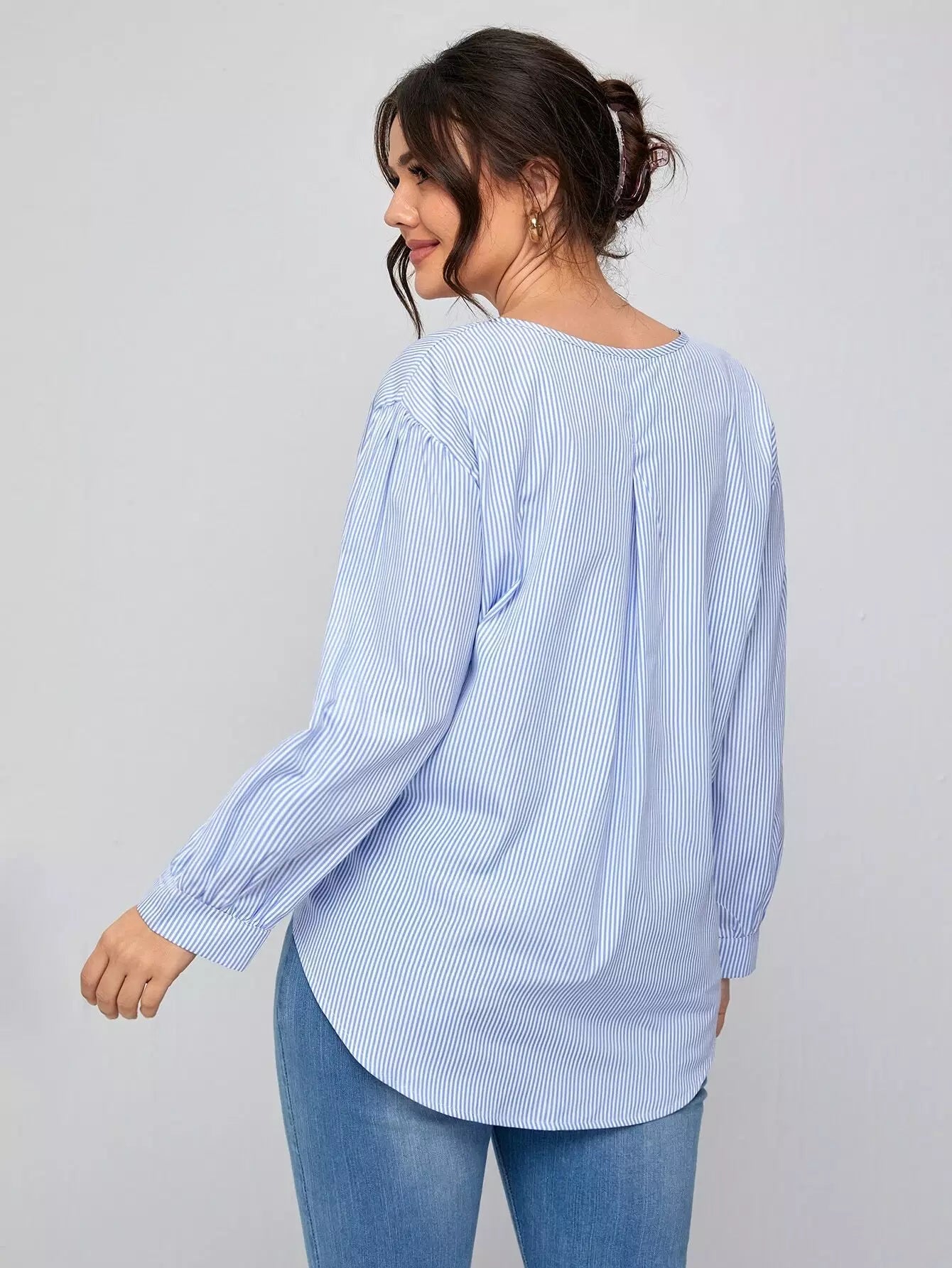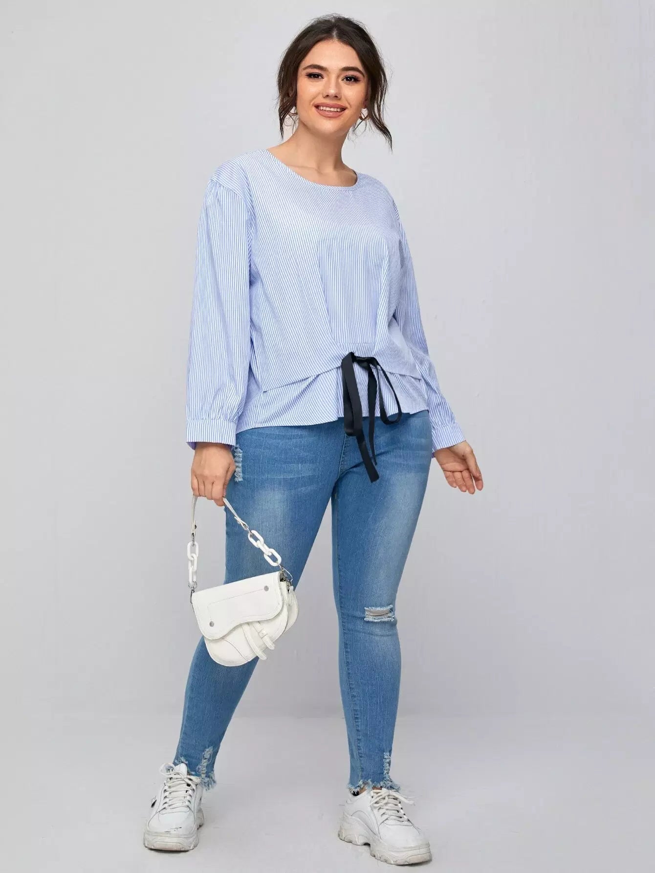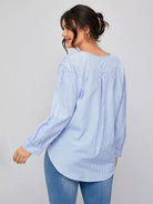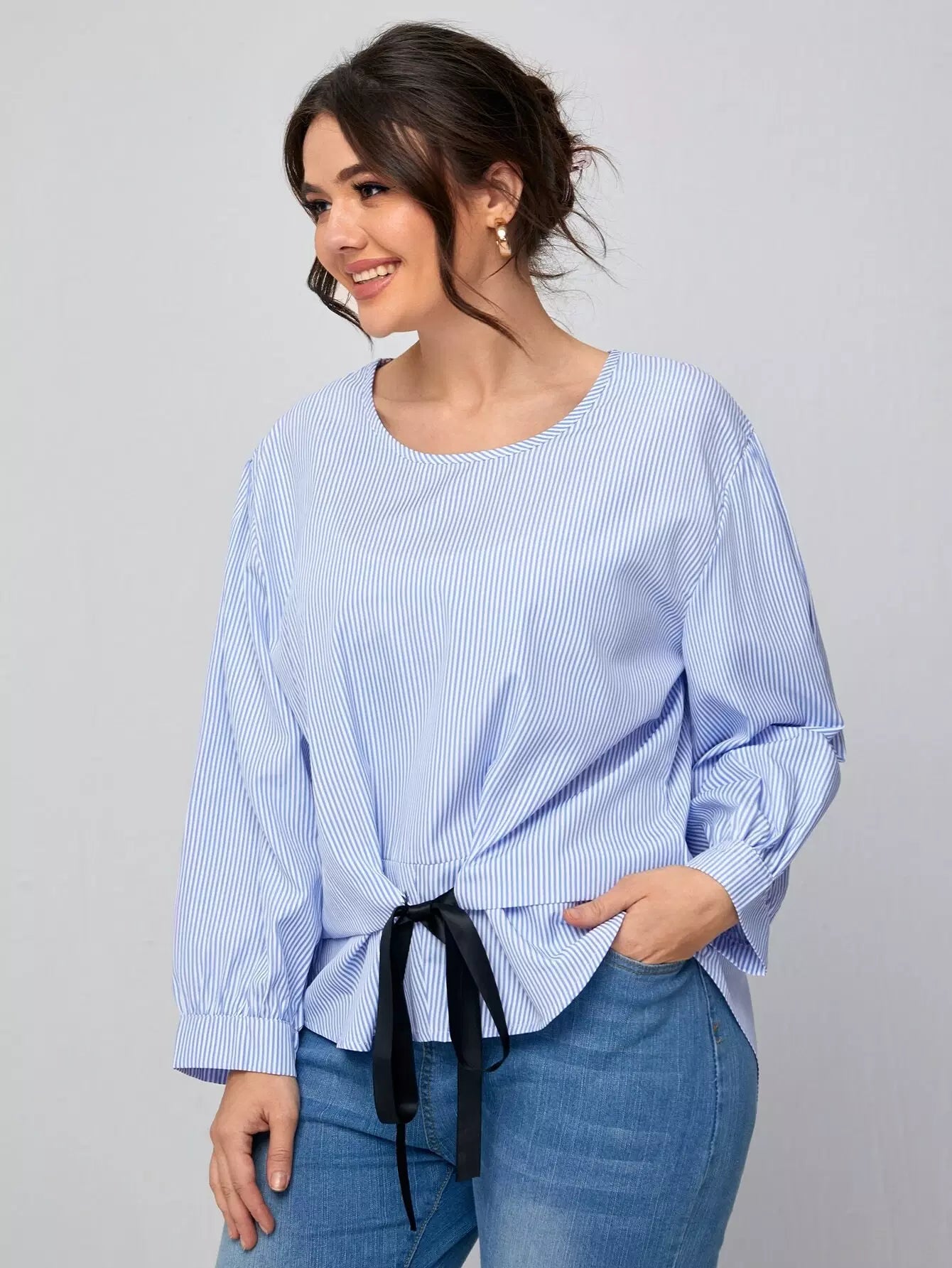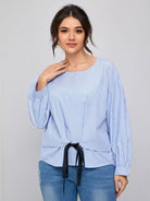 بلوزة مخططة بعقدة أمامية مخططة بلاس