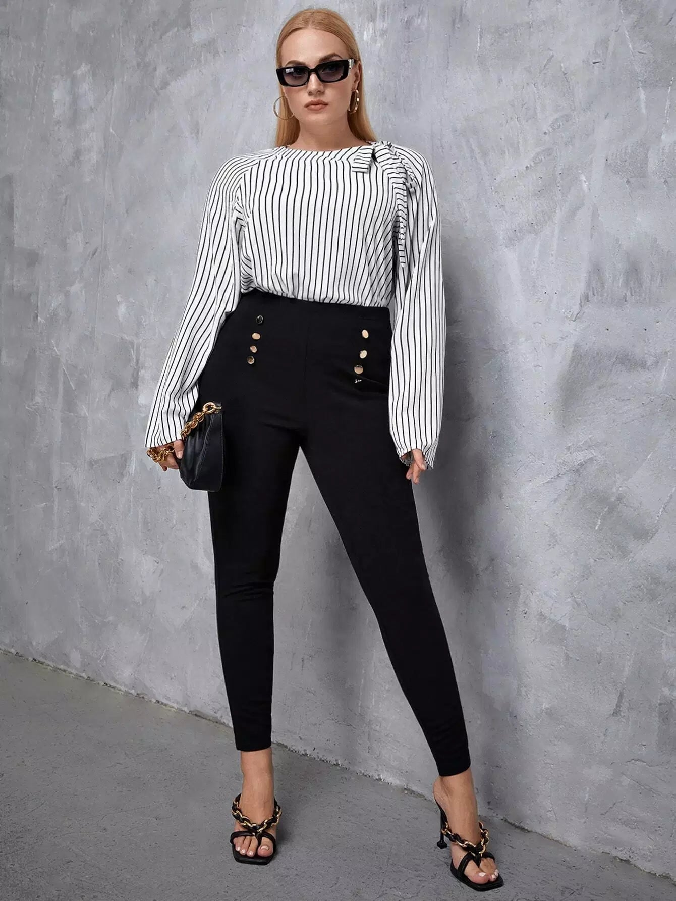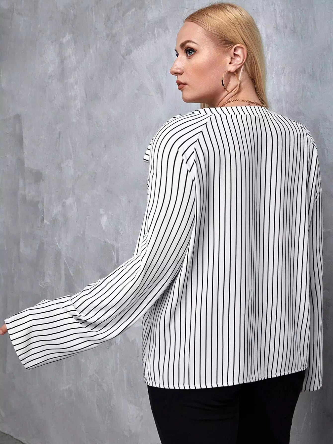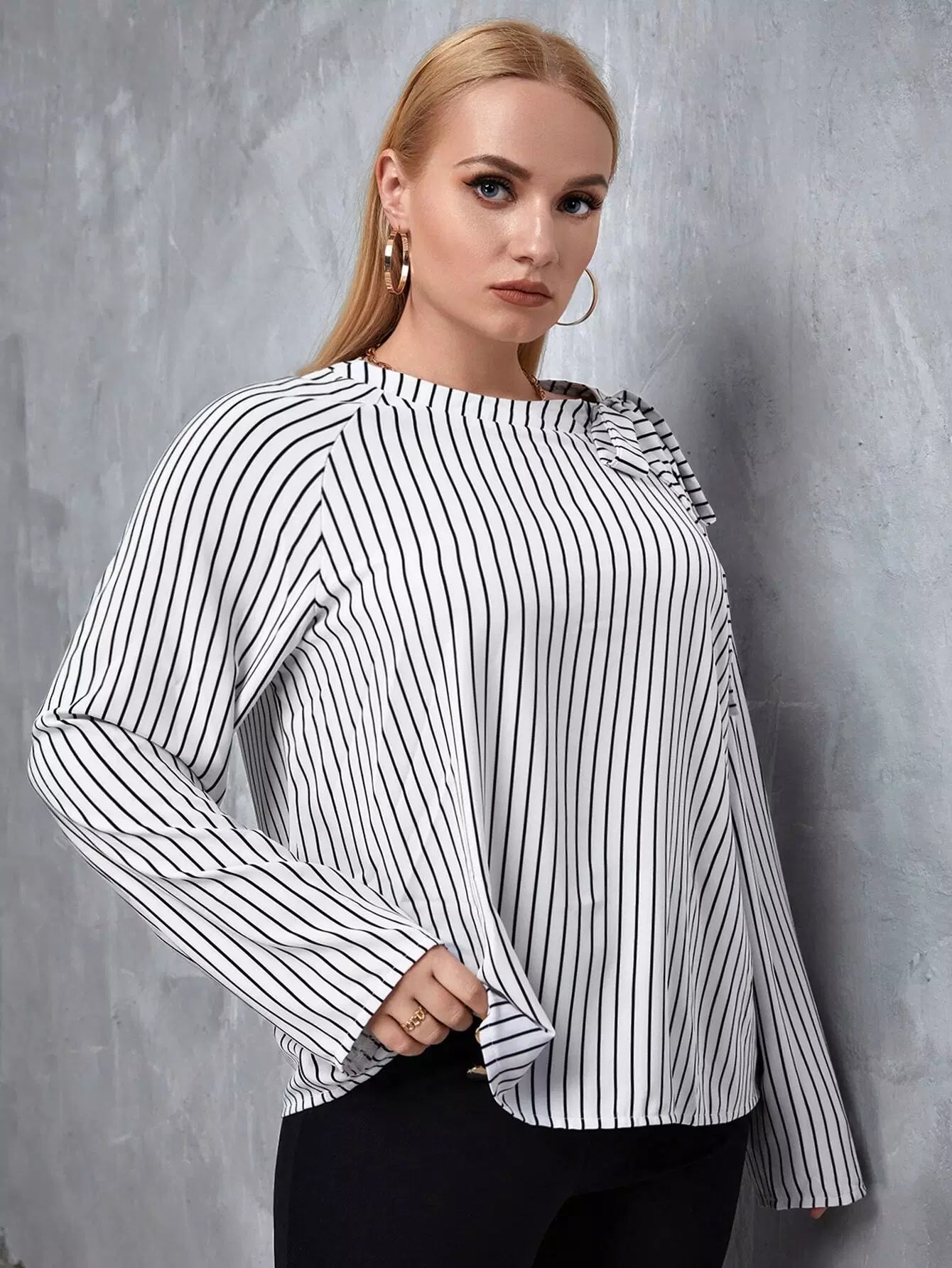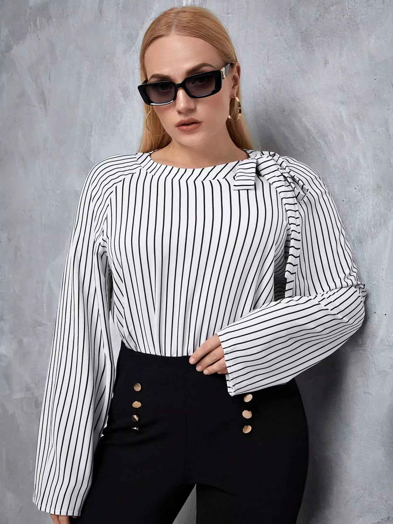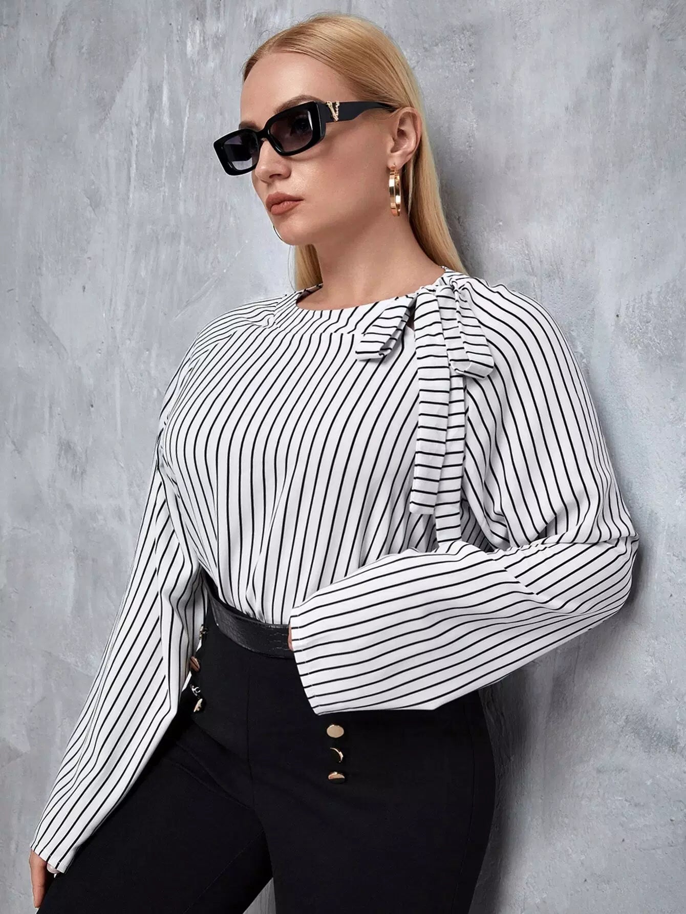 بلوزة مخططة معقودة زائد