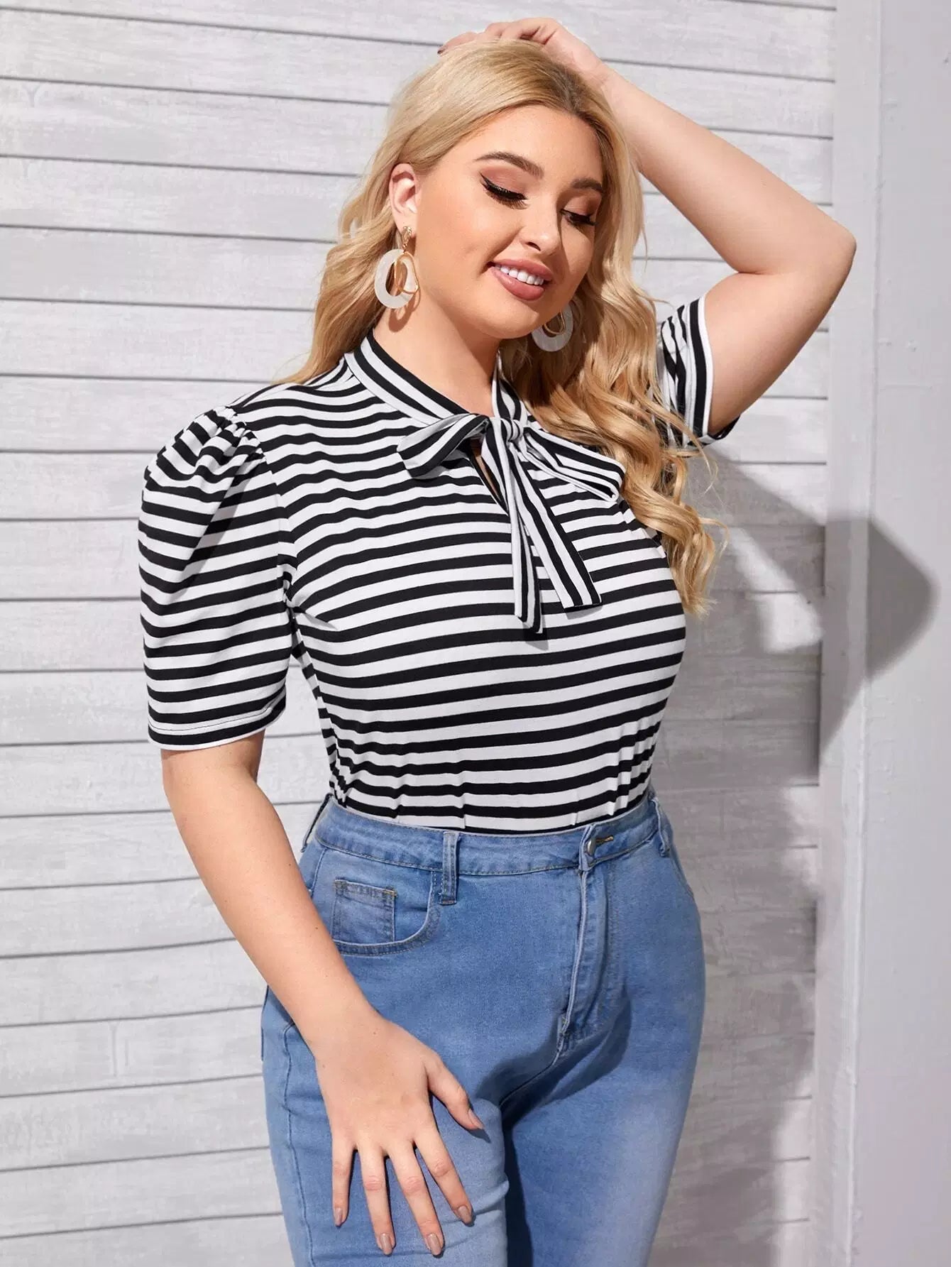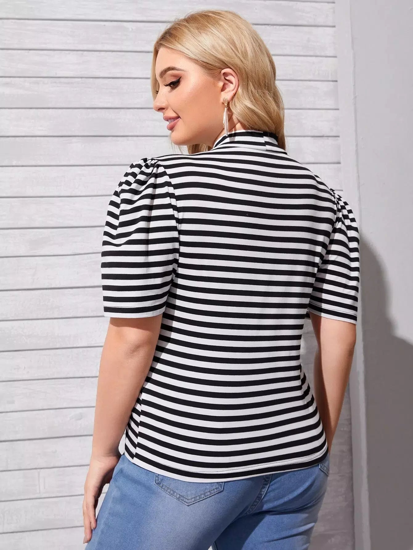 تي شيرت برقبة مخططة برقبة مخططة