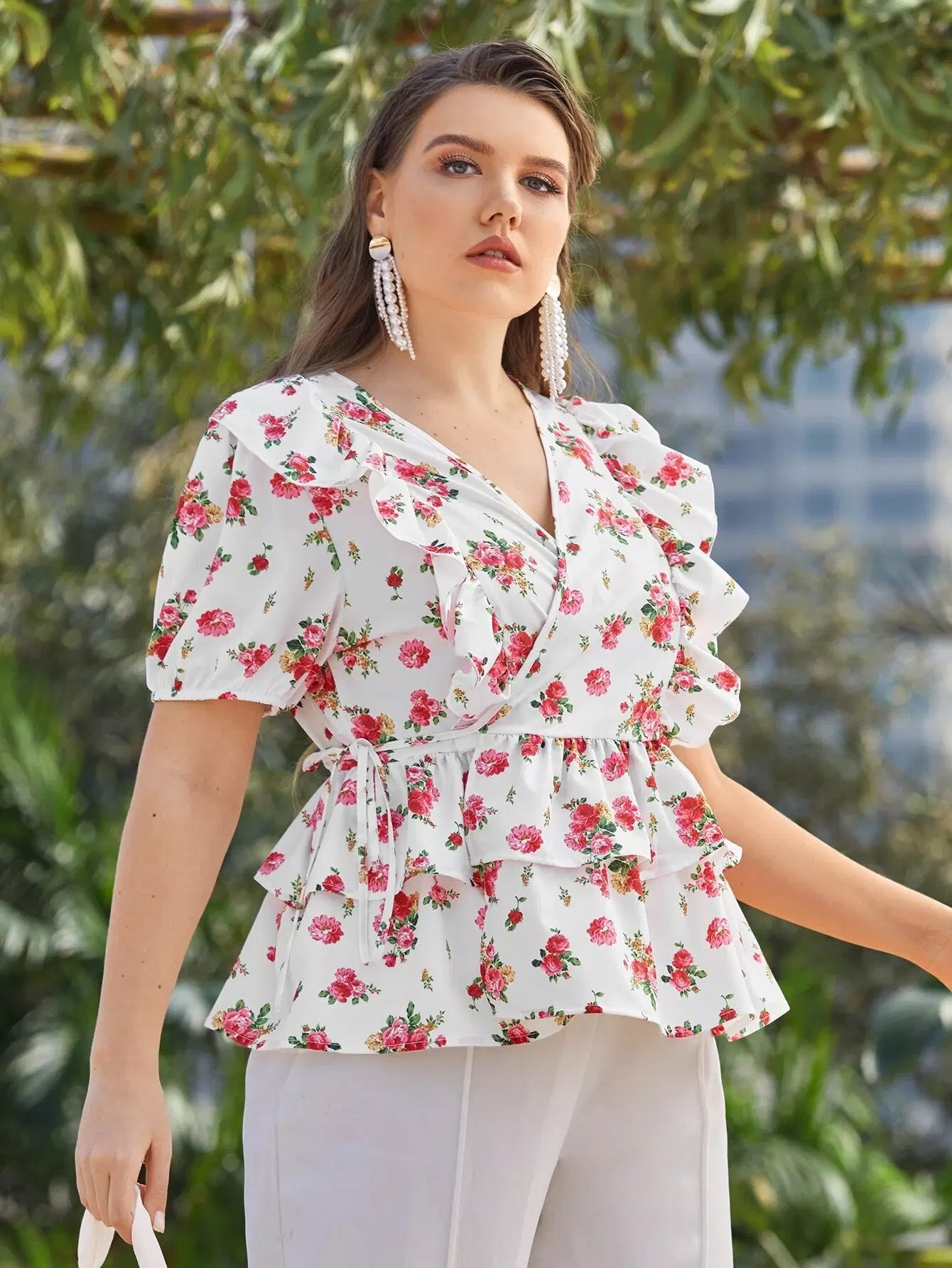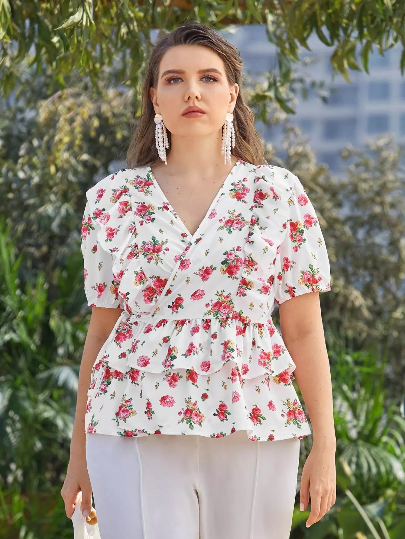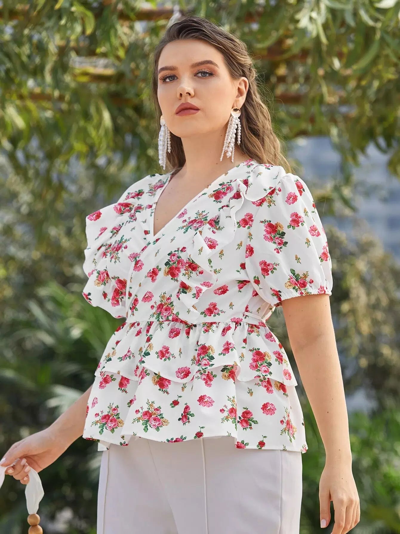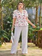 بلوزة برقبة أمامية زهرية من الأمام بلاس بلوزة زهرية من الأمام
