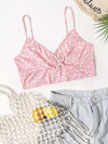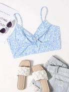 بلوزة قصيرة قصيرة برقبة زائدة برقبة ضيقة مزينة بالورود