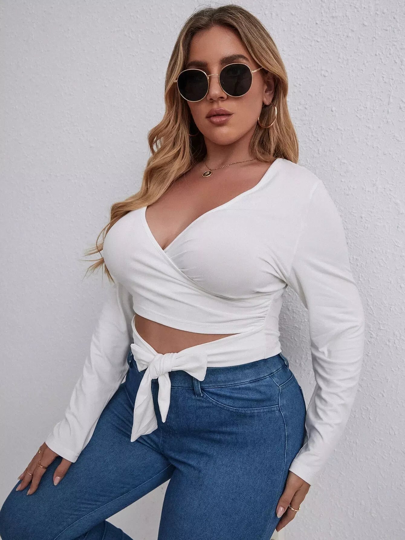 تي شيرت قصير بياقة برباط أمامي برقبة زائد