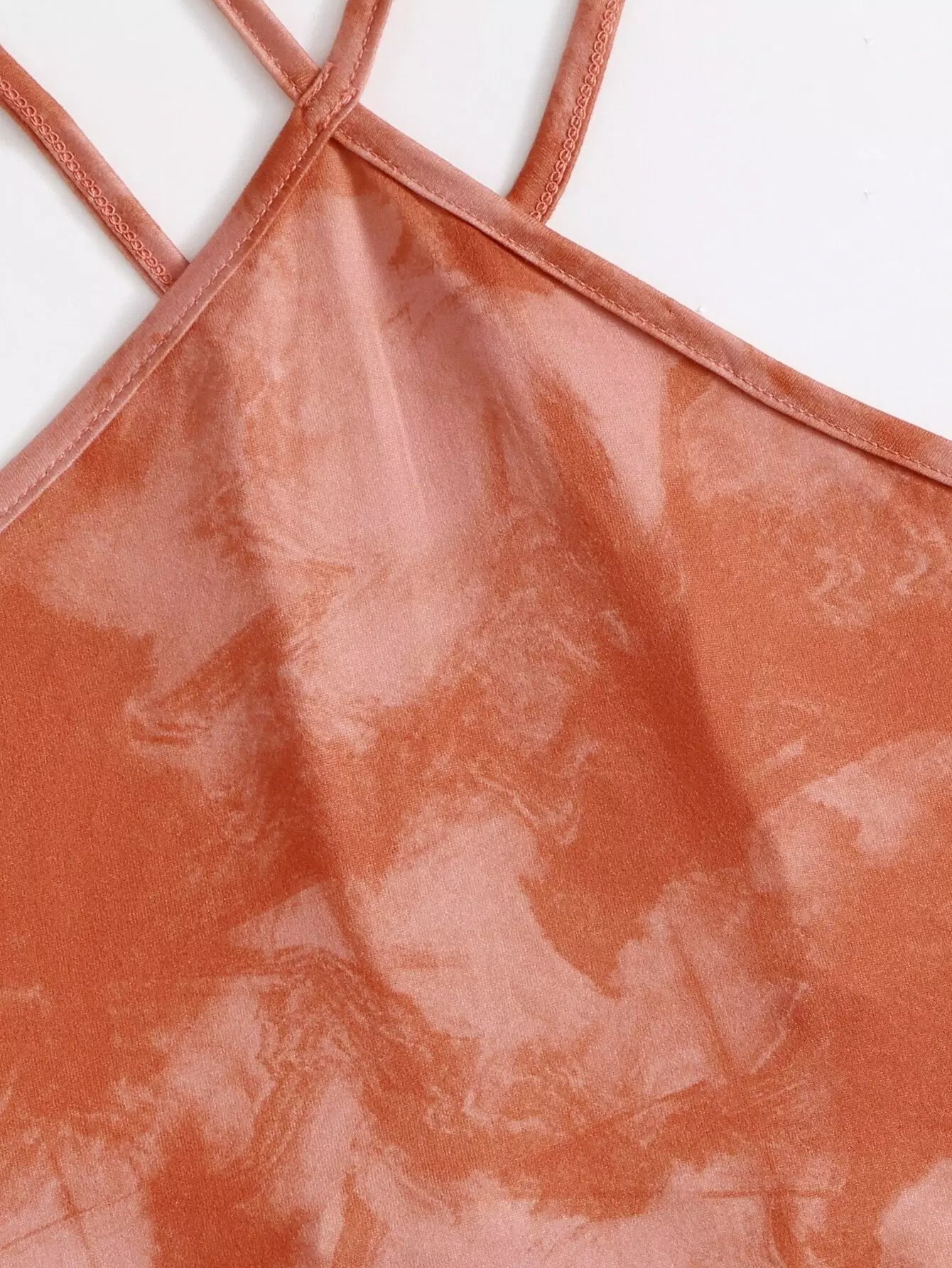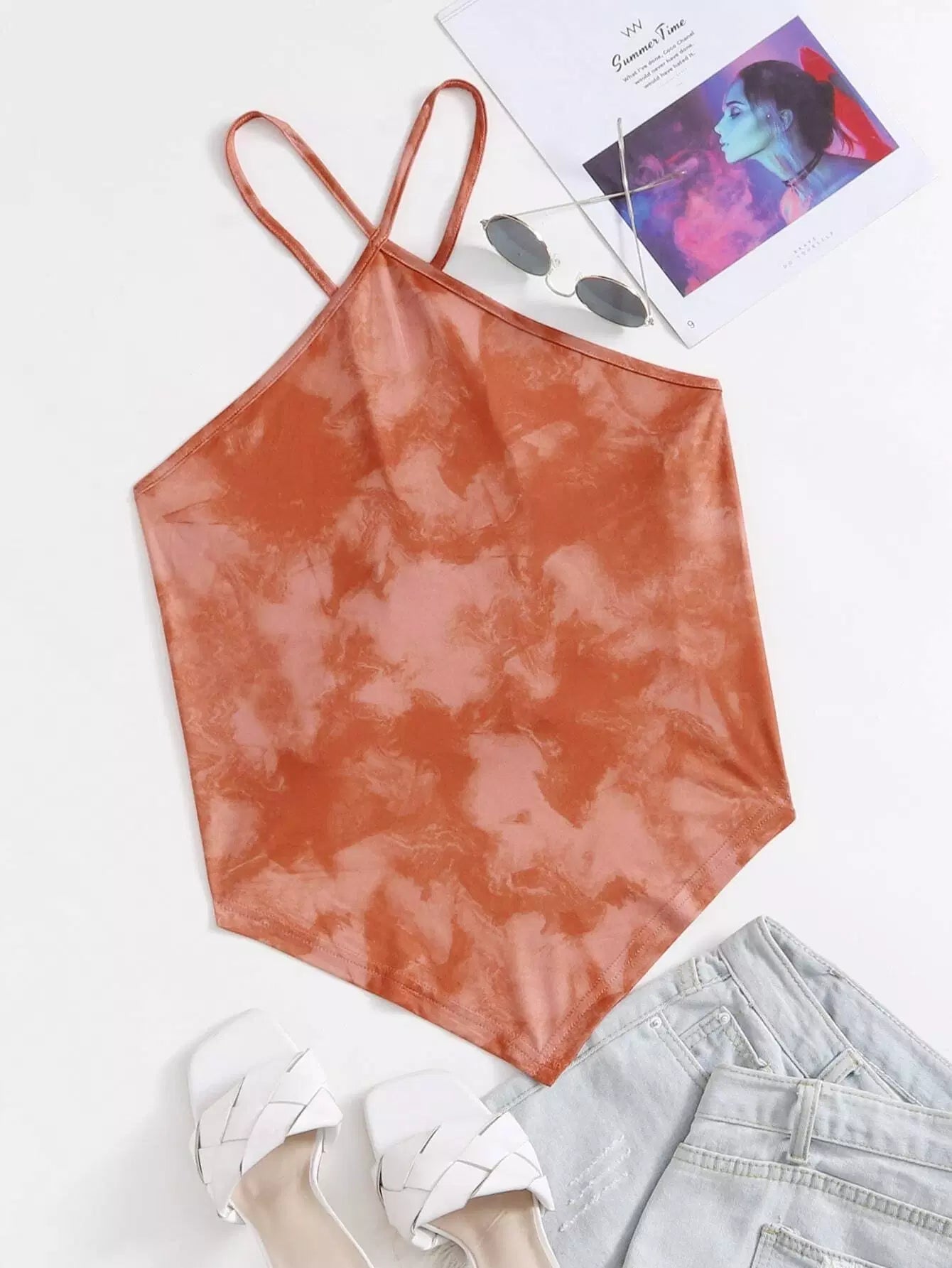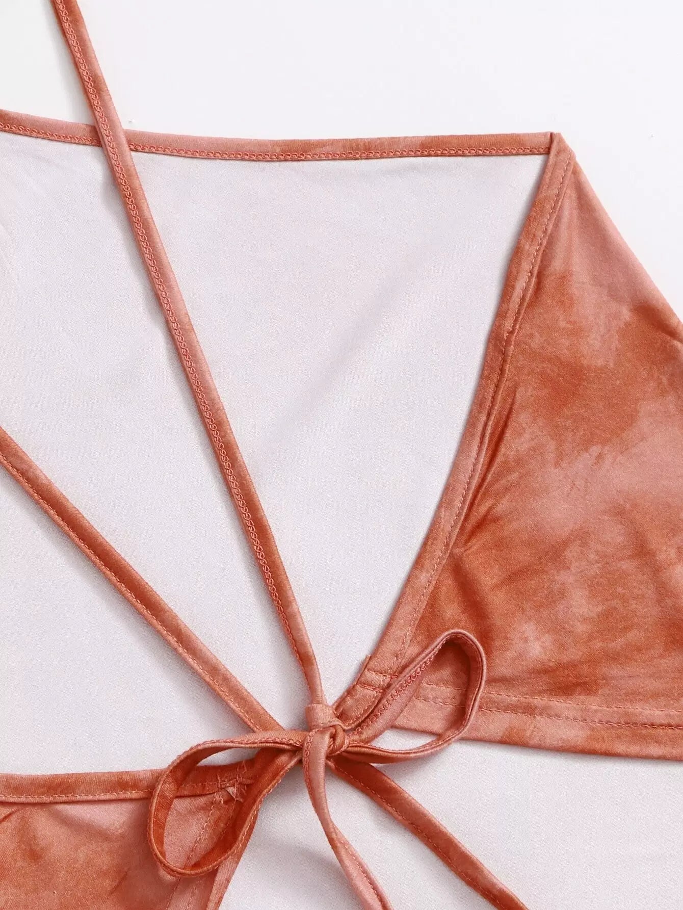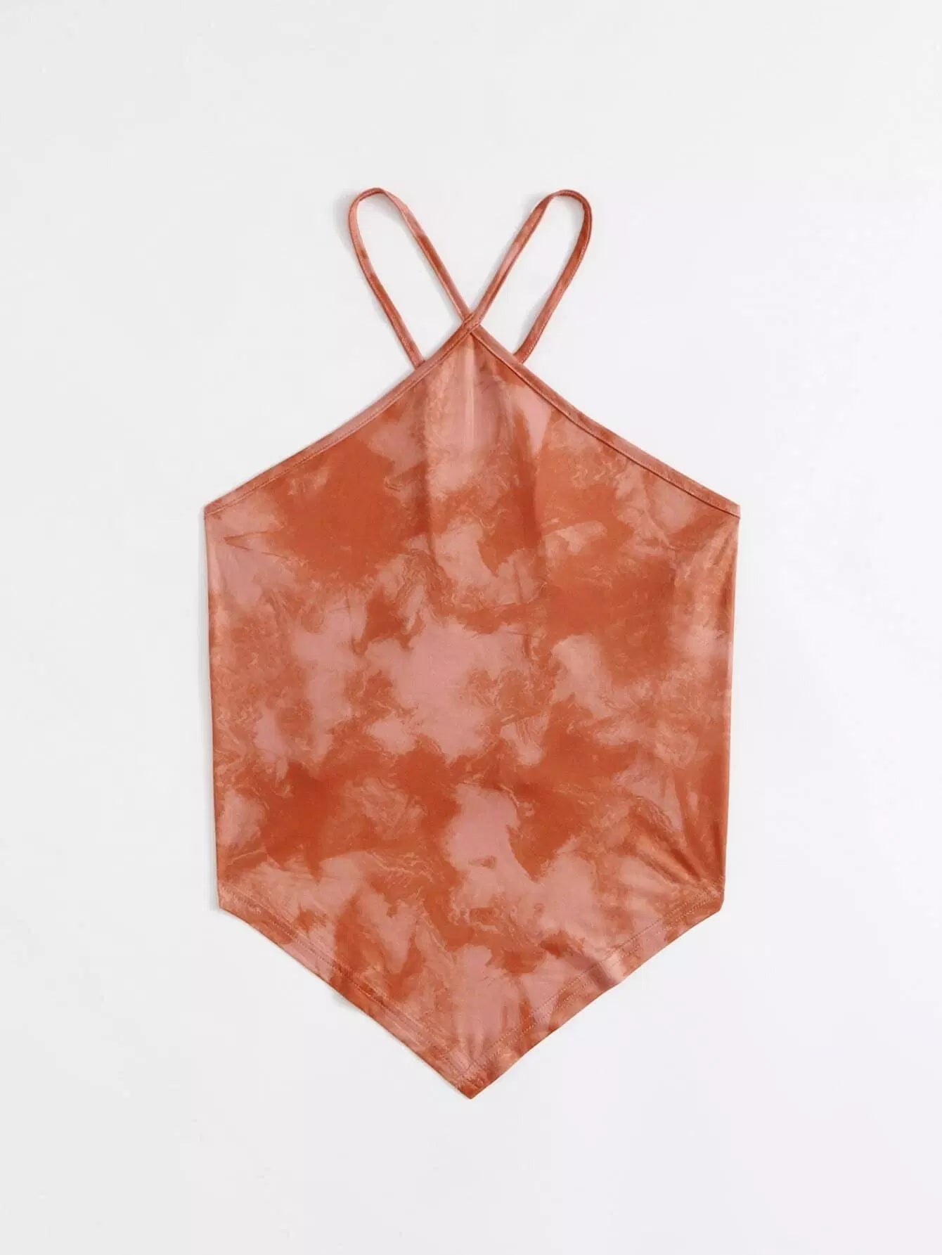 بلوزة بدون أكمام مصبوغة بربطة عنق على الظهر