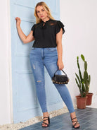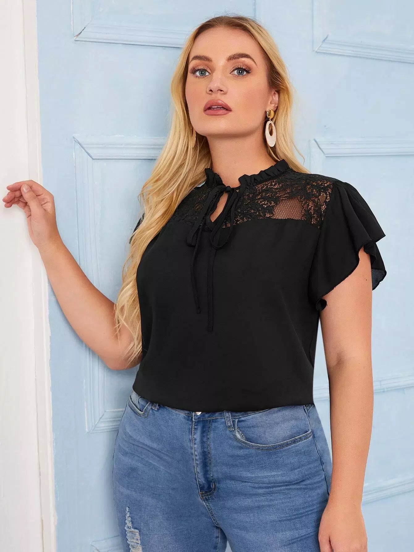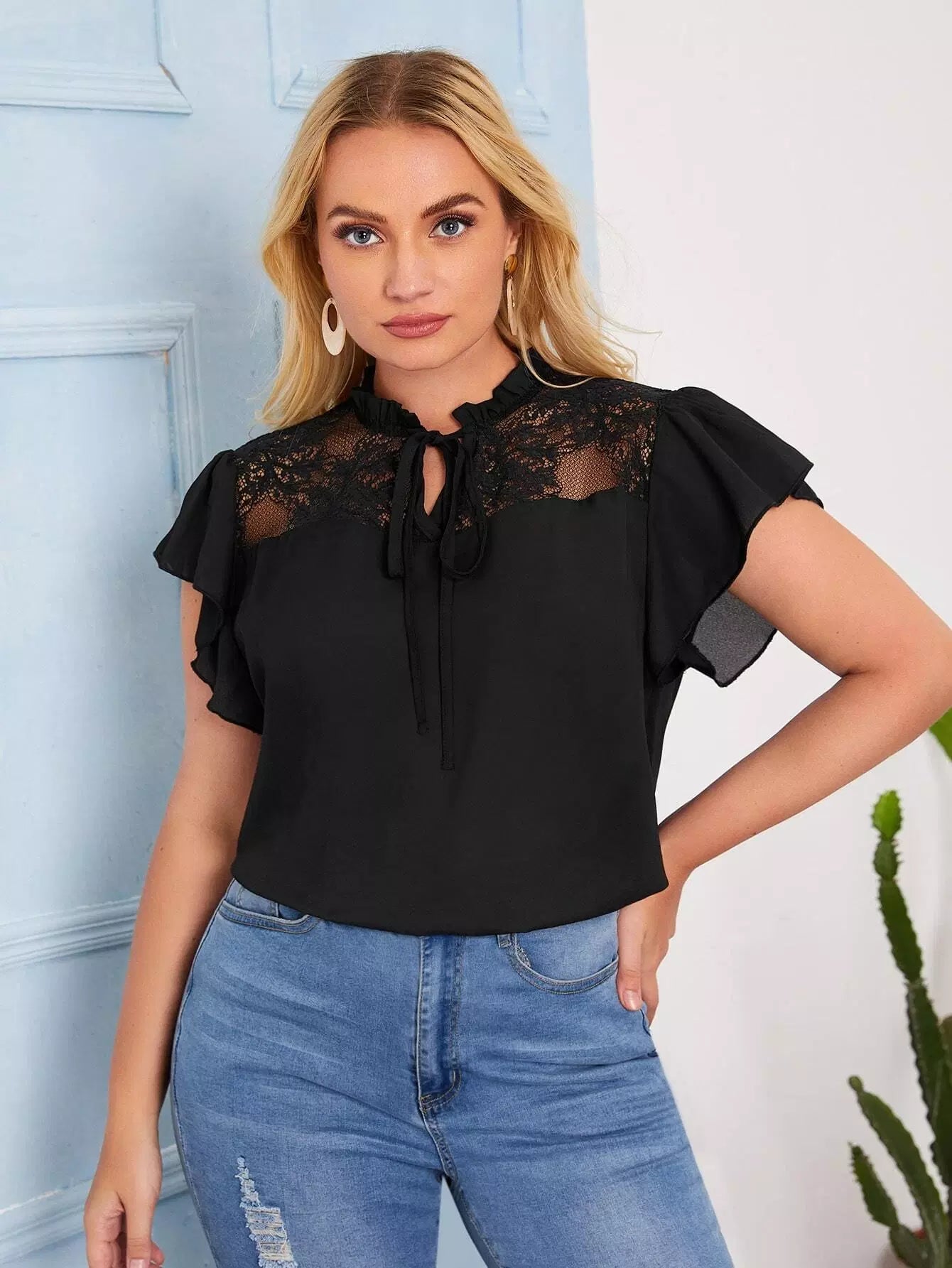 بلوزة بربطة عنق زائد دانتيل برقبة زائد