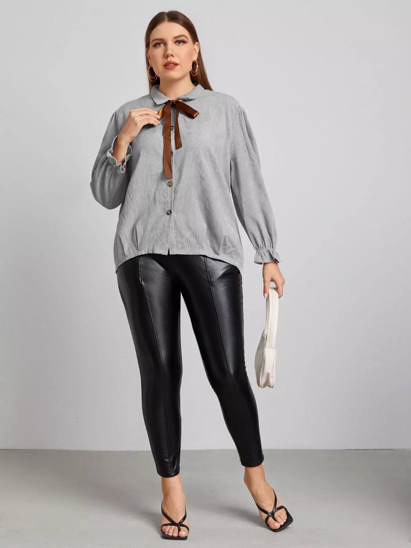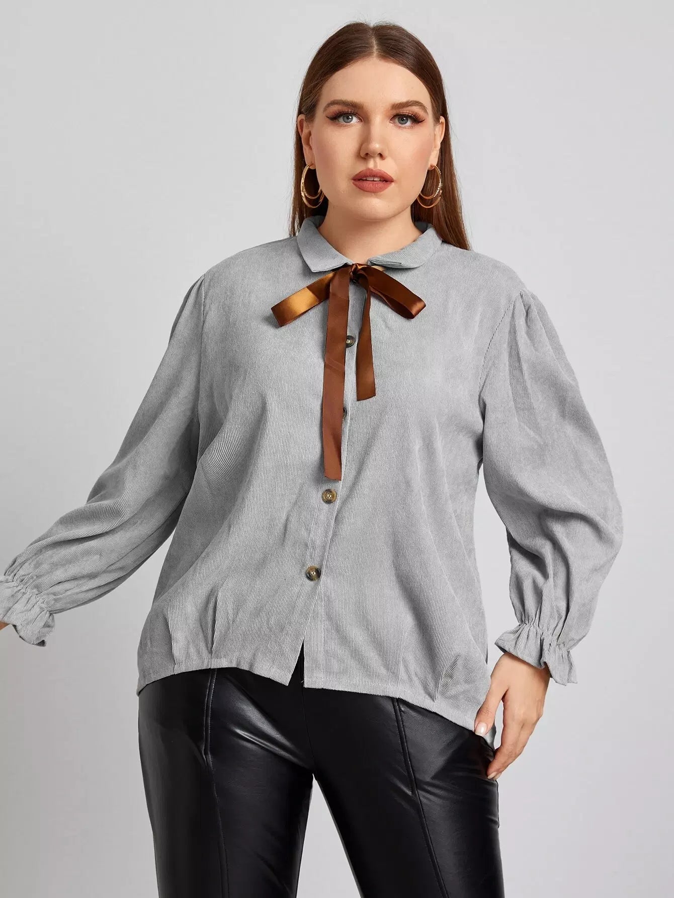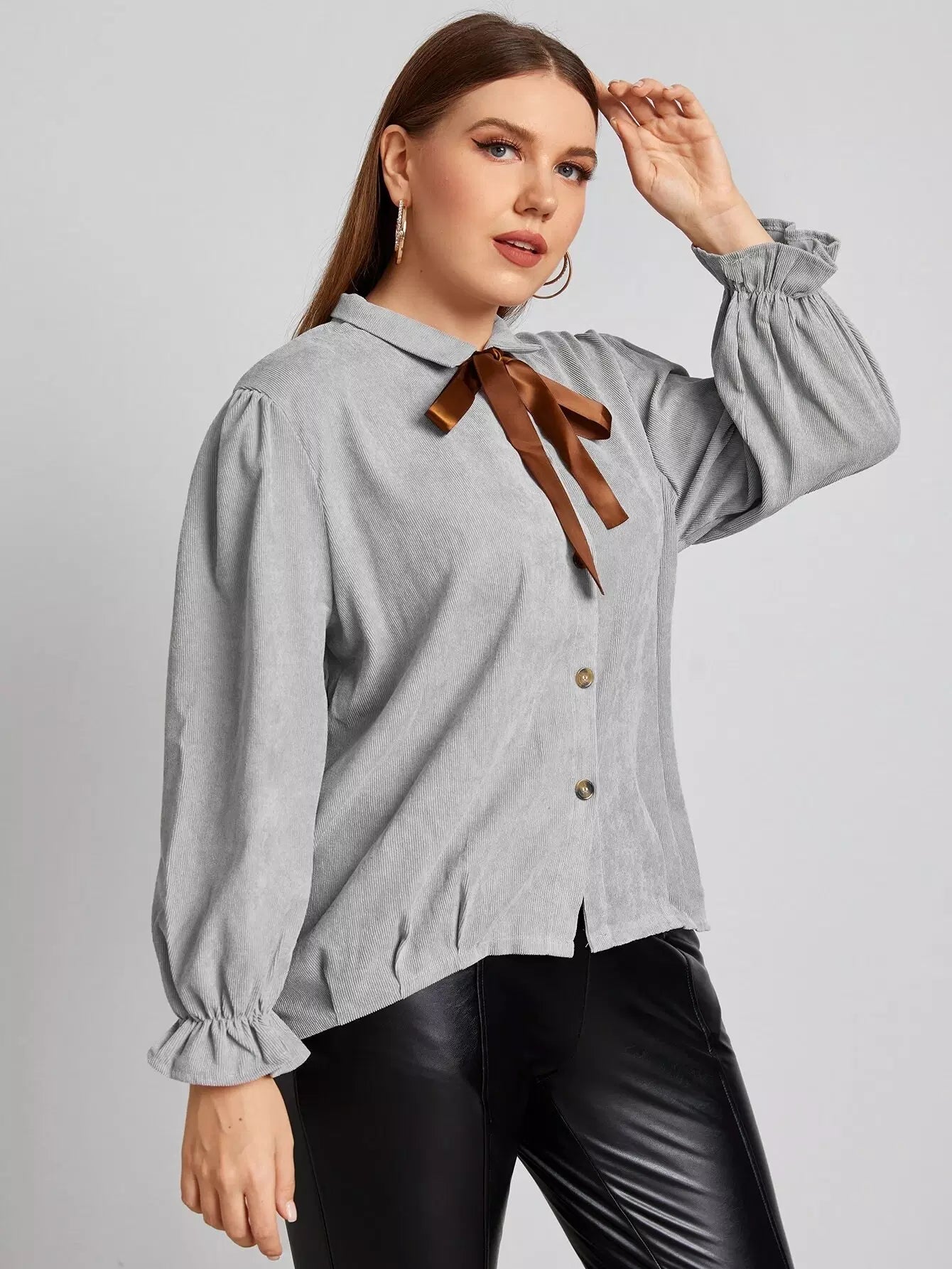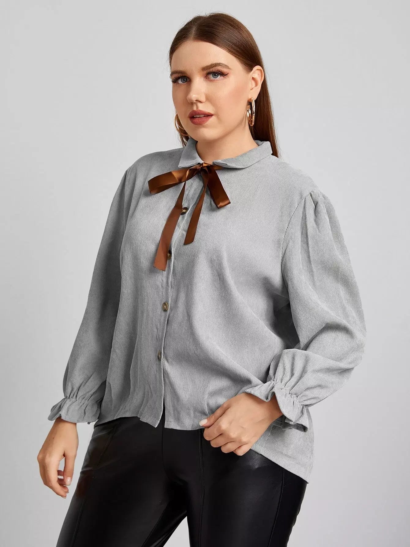 تي شيرت بياقة ربطة عنق مكشكشة زائد كشكش