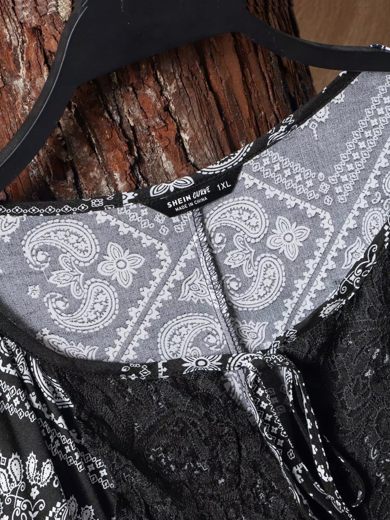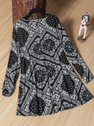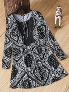 بلوزة طويلة مطبوع عليها وشاح بياقة عنق بربطة عنق زائد